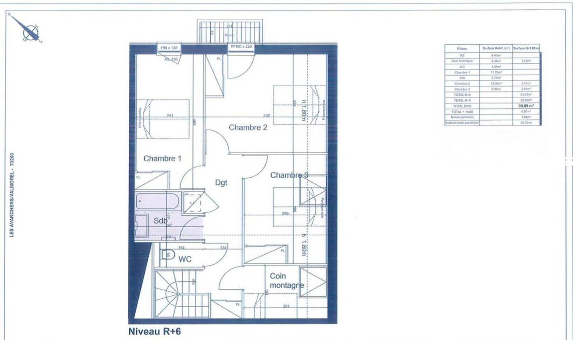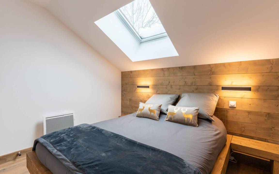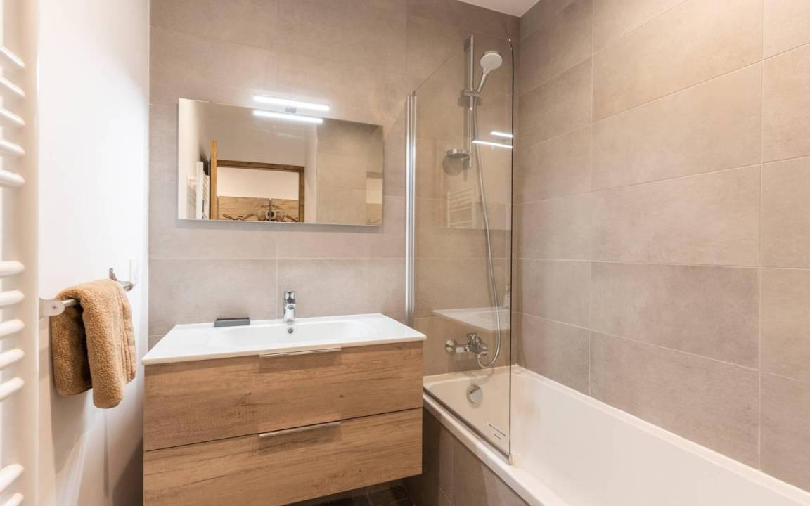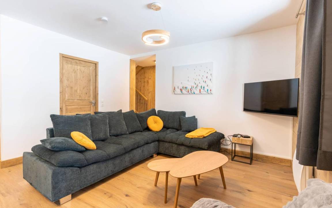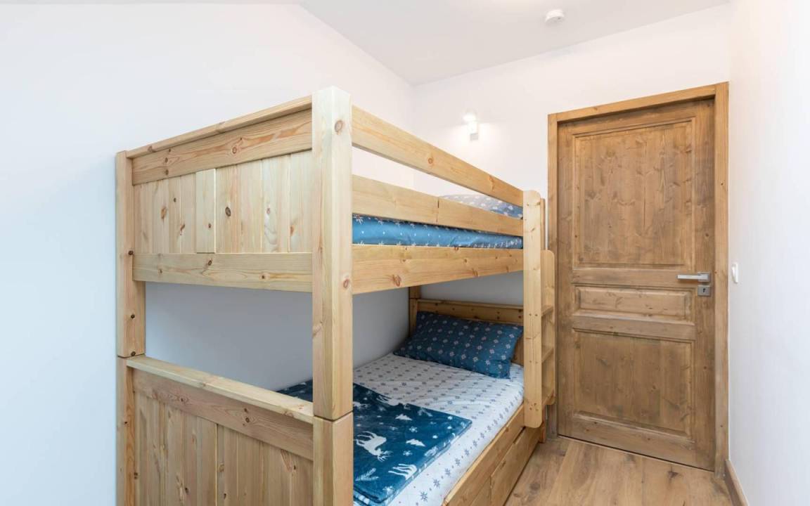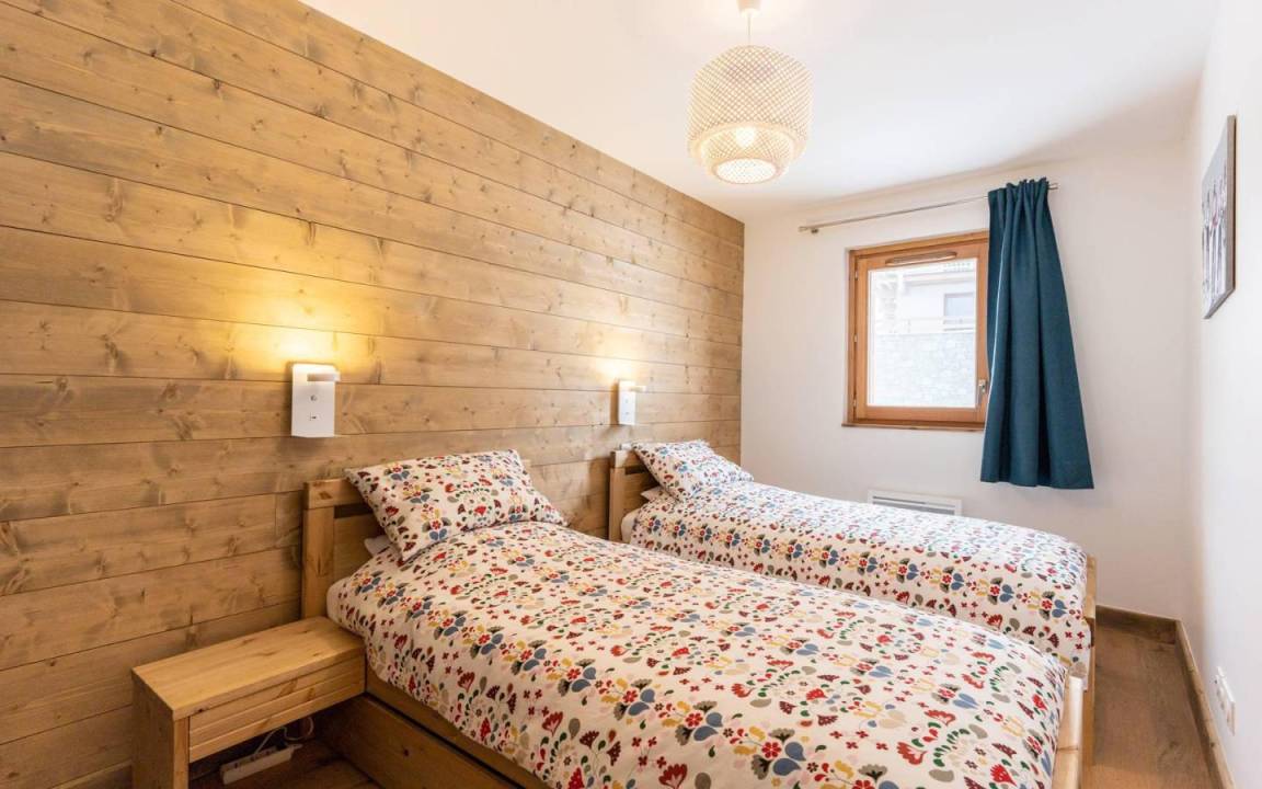 Fläche von ungefähr 90 m². 5te Etage. Orientierung : Süd. Niveau 0 : Wohnzimmer. Kochnische mit Fonduegerät, Raclettegerät, Wasserkocher, Kaffeemaschine, Backofen, Toaster, Küchenecke, Waschmaschine, Geschirrspülmaschine, Mikrowellenherd, Herdplatten, Kühlschrank, Wäschetrockner. Waschräume mit Dusche, WC. Balkon. Niveau 1 : offener Schlafbereich mit 2 Stockbetten (90x190). Schlafzimmer mit 2 Einzelbetten (90x200). 2 Schlafzimmer mit Doppelbett (160x200). separates WC. Badezimmer mit Badewanne. Die oberen Betten sind nicht für Kinder unter 6 Jahren geeignet.