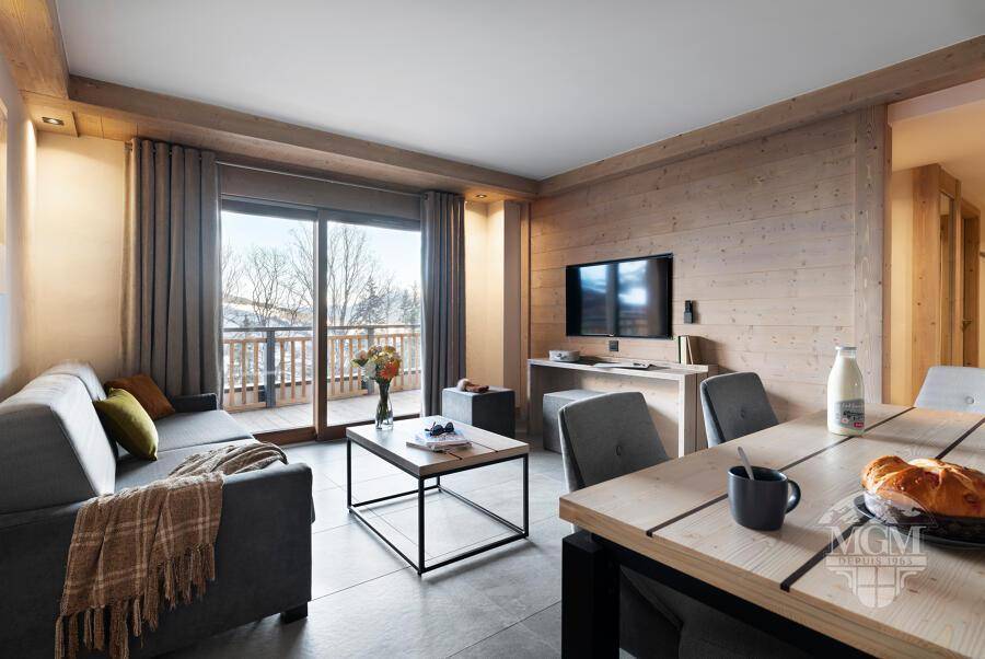Akoya liegt im Herzen des malerischen Dorfes Valmorel und ist die perfekte Wahl für einen unvergesslichen Urlaub. Nur wenige Schritte von der Rue du Bourg, dem lebhaften Zentrum von Valmorel, entfernt, haben Sie Zugang zu allen Geschäften und Dienstleistungen, die Sie für einen gelungenen Aufenthalt in den Bergen benötigen. Die wenige Meter entfernte Planchamp-Gondelbahn bringt Sie direkt zu den Pisten und bietet Ihnen einen bequemen und schnellen Zugang zum Skivergnügen. Die Residenz verkörpert zeitgenössischen Luxus und kombiniert umweltfreundliche Architektur und authentisches Design. Edle Materialien wie Stein, Holz und Kupfer verschmelzen harmonisch zu einem eleganten und warmen Wohnumfeld. Die Residenz bietet außerdem 800 m² Raum zur Entspannung: das Spa-Center Montagnes du Monde®. Genießen Sie Ihren Urlaub in dieser außergewöhnlichen Umgebung, um neue Energie zu tanken und außergewöhnliche Momente zu erleben. Fläche von ungefähr 60 m². Blick berg. Wohnzimmer mit Klappschlafcouch. Schlafzimmer mit Doppelbett, Waschraum, WC. Schlafzimmer mit 2 Einzelbetten. Küche mit Wasserkocher, Kaffeemaschine (à filtre et nespresso), kleiner Backofen mit Mikrowellenfunktion, Toaster, Geschirrspülmaschine, 2 Induktionsherdplatten. Badezimmer mit Haartrockner. WC. Balkon mit Gartentisch und -stühle.