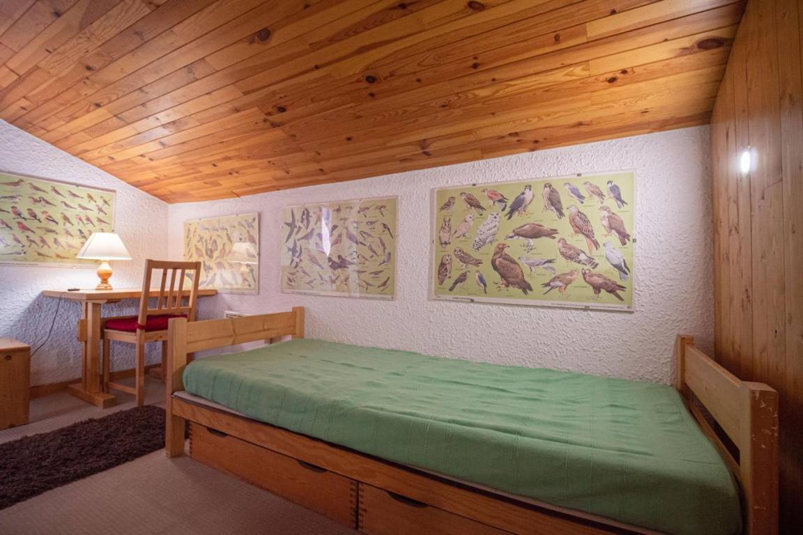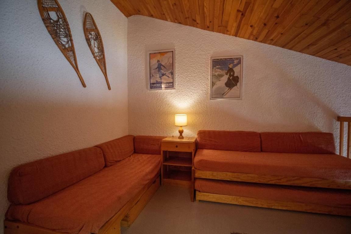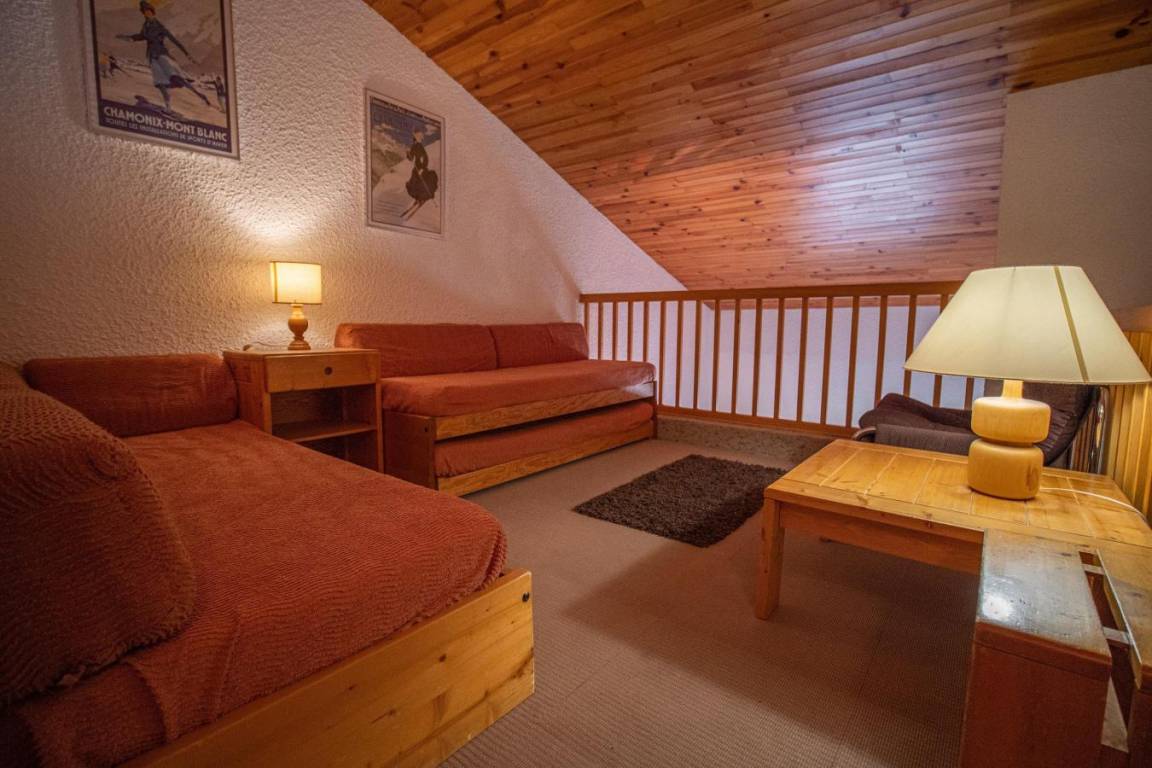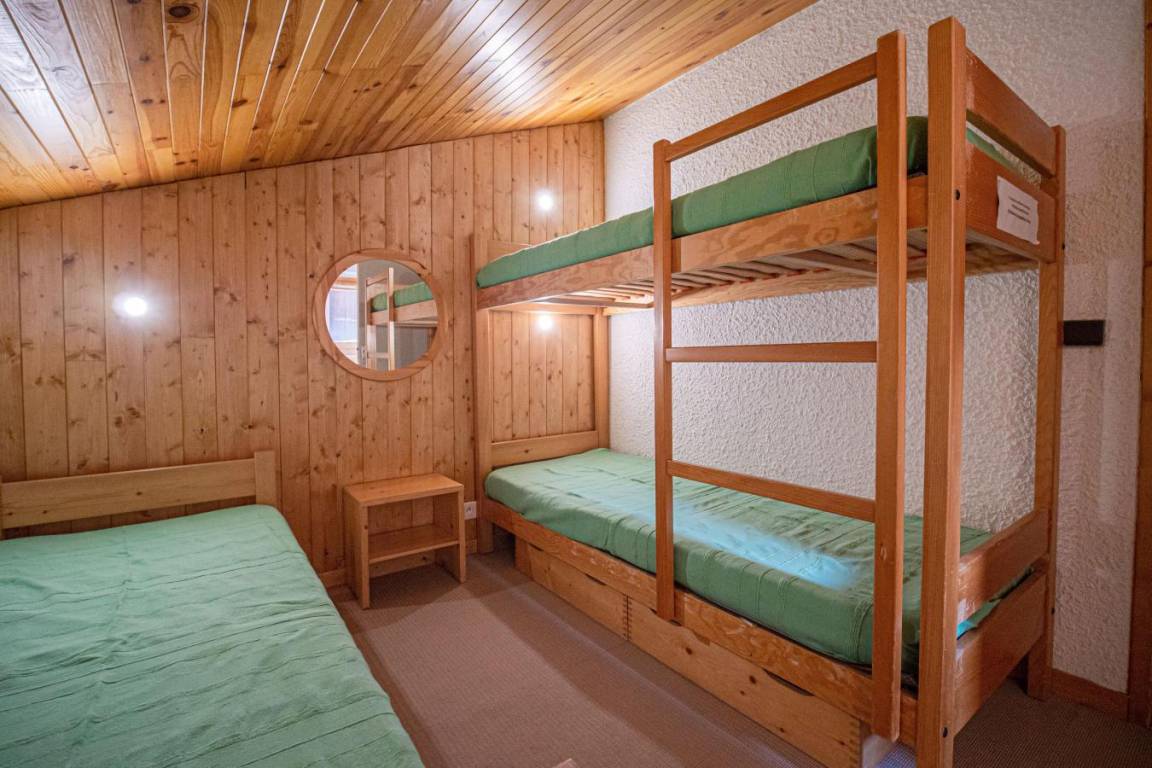 Fläche von ungefähr 57 m². 2te Etage. Orientierung : Ost. Wohnzimmer mit Sitzbank, TV. Schlafzimmer mit Doppelbett (140x190). Schlafzimmer mit Einzelbett (90x190), 2 Stockbetten (80x190). Zwischengeschoss mit 2 Einzelbetten (80x190), Ausziehbett (80x190). Küche mit Fonduegerät, Raclettegerät, Wasserkocher, Kaffeemaschine (filtre), Backofen, Toaster, Geschirrspülmaschine, Mikrowellenherd, Glaskeramikkochfelder, Kühlschrank. Badezimmer mit Badewanne, WC. Badezimmer mit Badewanne. separates WC. Balkon. Die oberen Betten sind nicht für Kinder unter 6 Jahren geeignet.