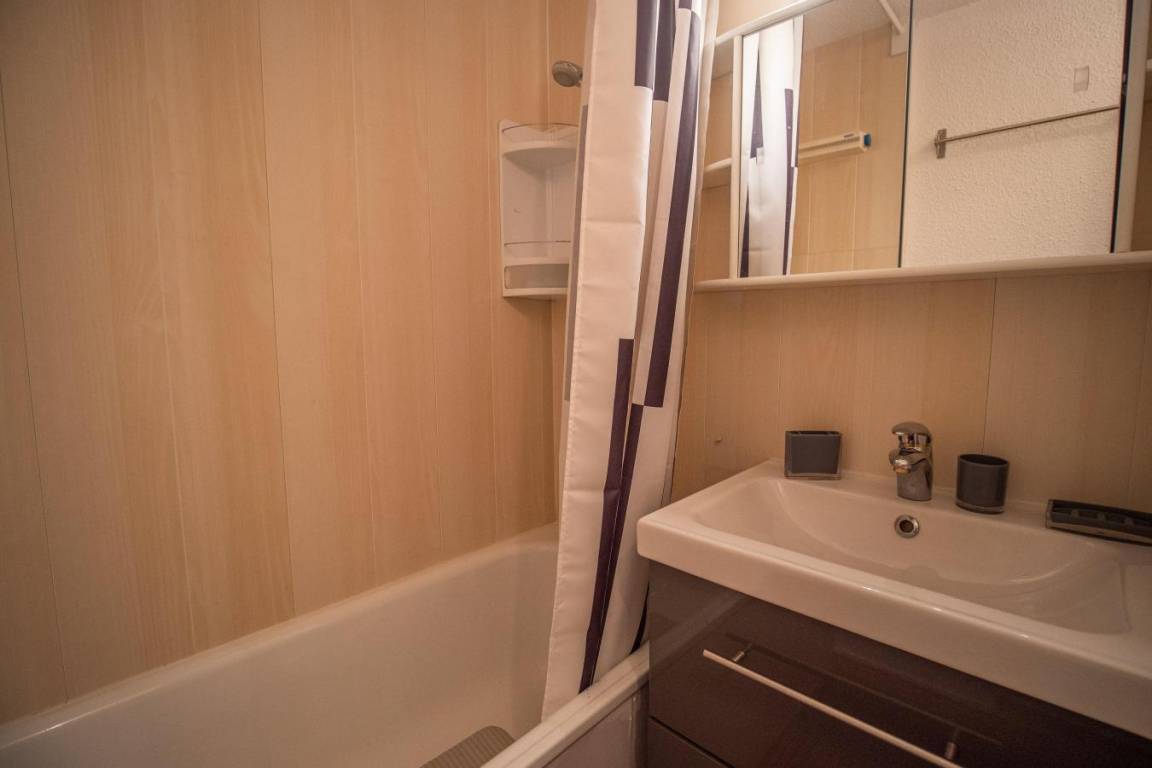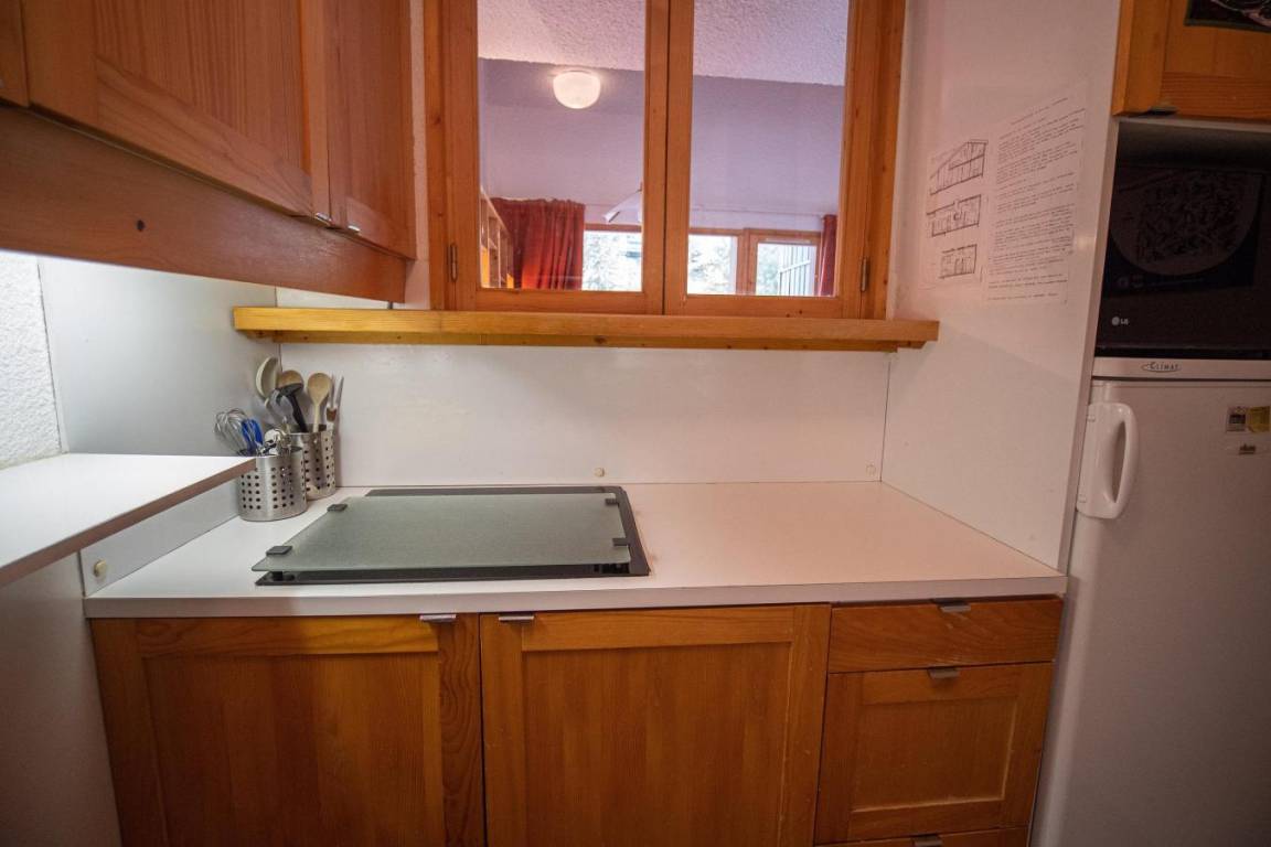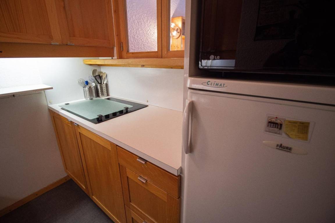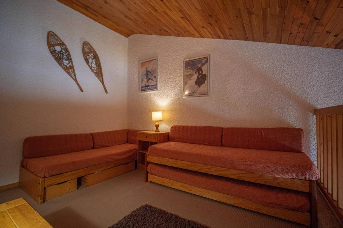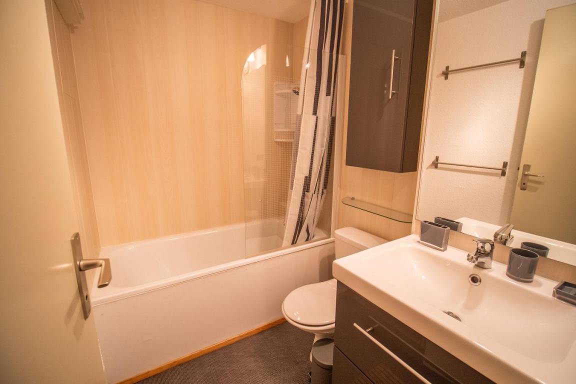 Fläche von ungefähr 57 m². 2te Etage. Orientierung : Ost. Wohnzimmer mit Sitzbank, TV. Schlafzimmer mit Doppelbett (140x190). Schlafzimmer mit Einzelbett (90x190), 2 Stockbetten (80x190). Zwischengeschoss mit 2 Einzelbetten (80x190), Ausziehbett (80x190). Küche mit Fonduegerät, Raclettegerät, Wasserkocher, Kaffeemaschine (filtre), Backofen, Toaster, Geschirrspülmaschine, Mikrowellenherd, Glaskeramikkochfelder, Kühlschrank. Badezimmer mit Badewanne, WC. Badezimmer mit Badewanne. separates WC. Balkon. Die oberen Betten sind nicht für Kinder unter 6 Jahren geeignet.
