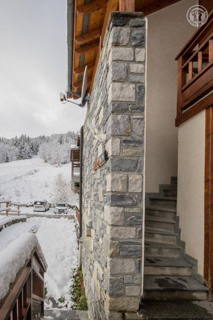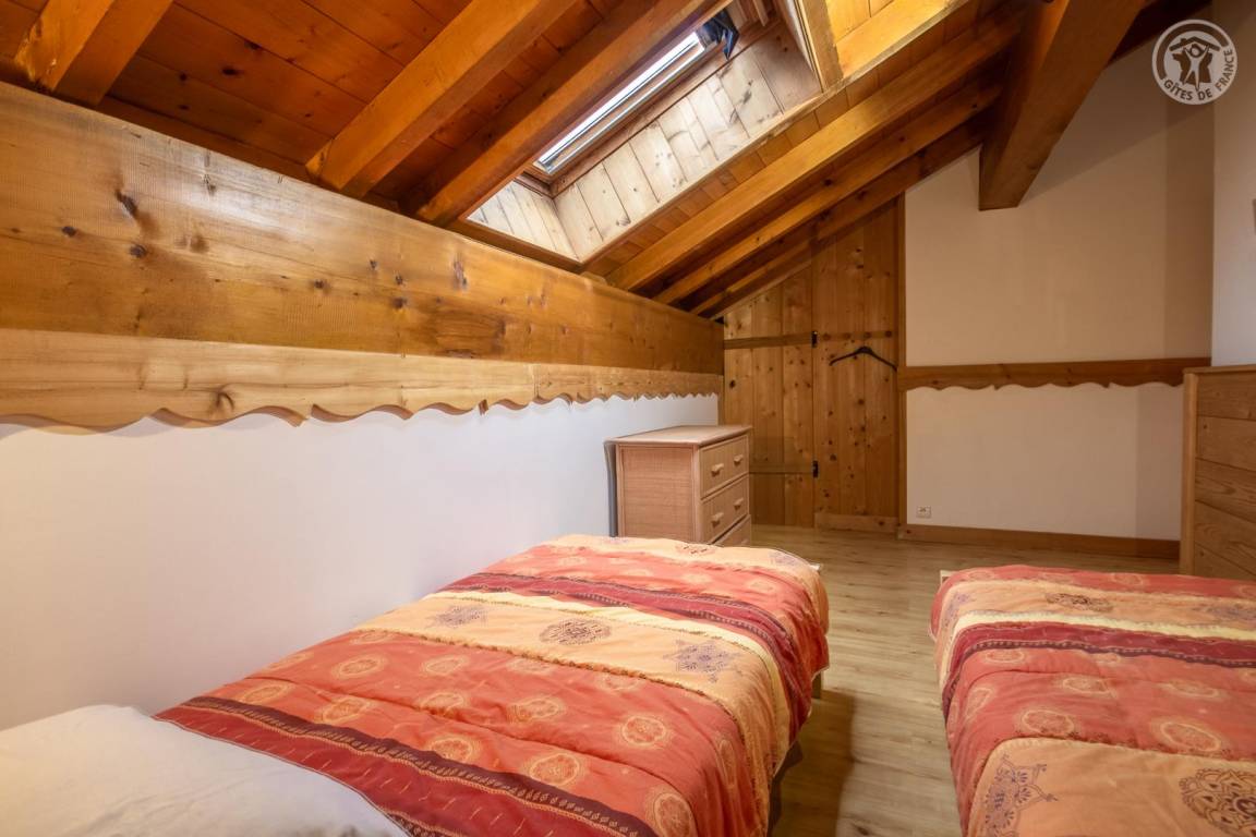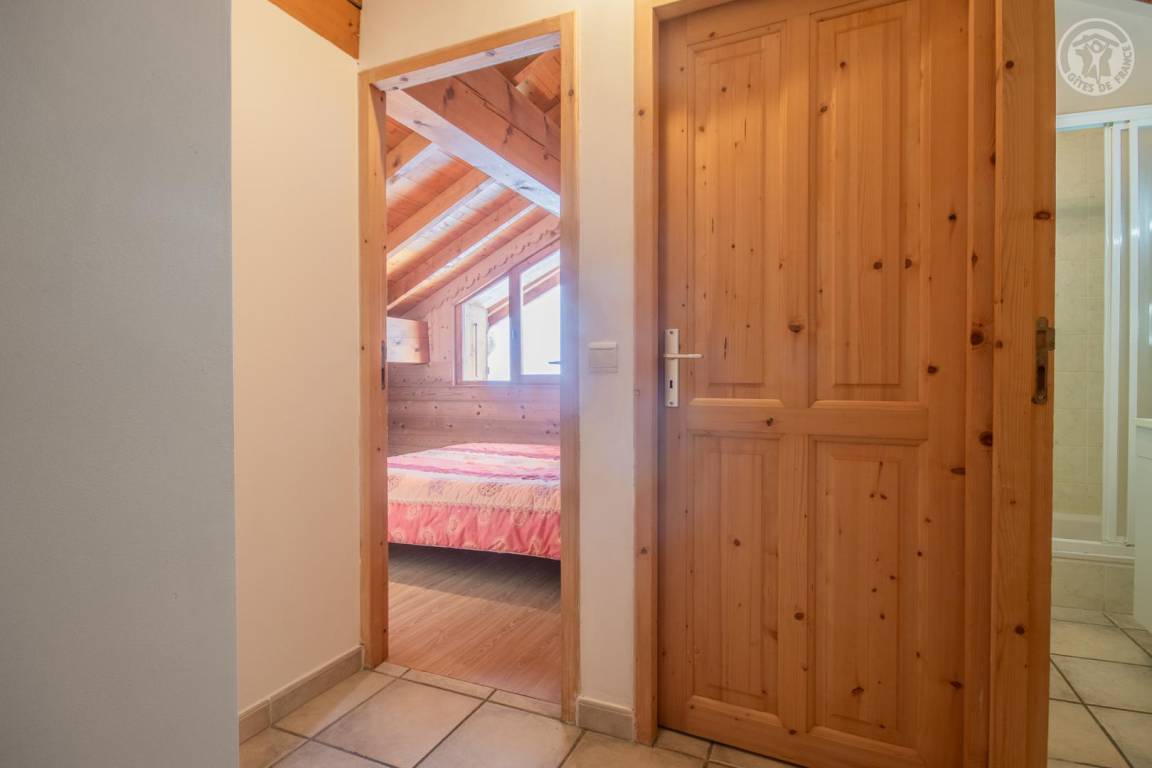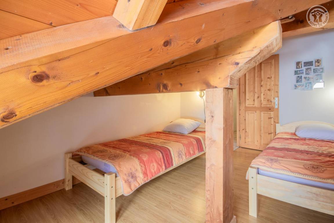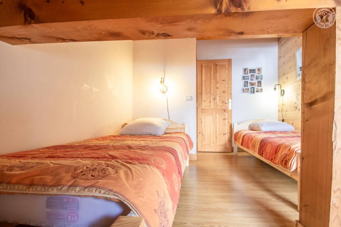 Haus mit zwei anderen Gîtes. Gîte im ersten Stock. Unabhängiger Eingang. Wohnküche mit Balkon, Badezimmer mit WC, 1 Schlafzimmer (1 Doppelbett 140x190cm). 1. Stock: 3 Schlafzimmer (1 Doppelbett 140x190 cm, 2 Einzelbetten 90x190 cm, 2 Einzelbetten 90x190 cm), WC, 2 Duschbäder. Gemeinsamer Skiraum im Keller. Privatparkplatz (1 Platz) im Untergeschoss geschlossen.