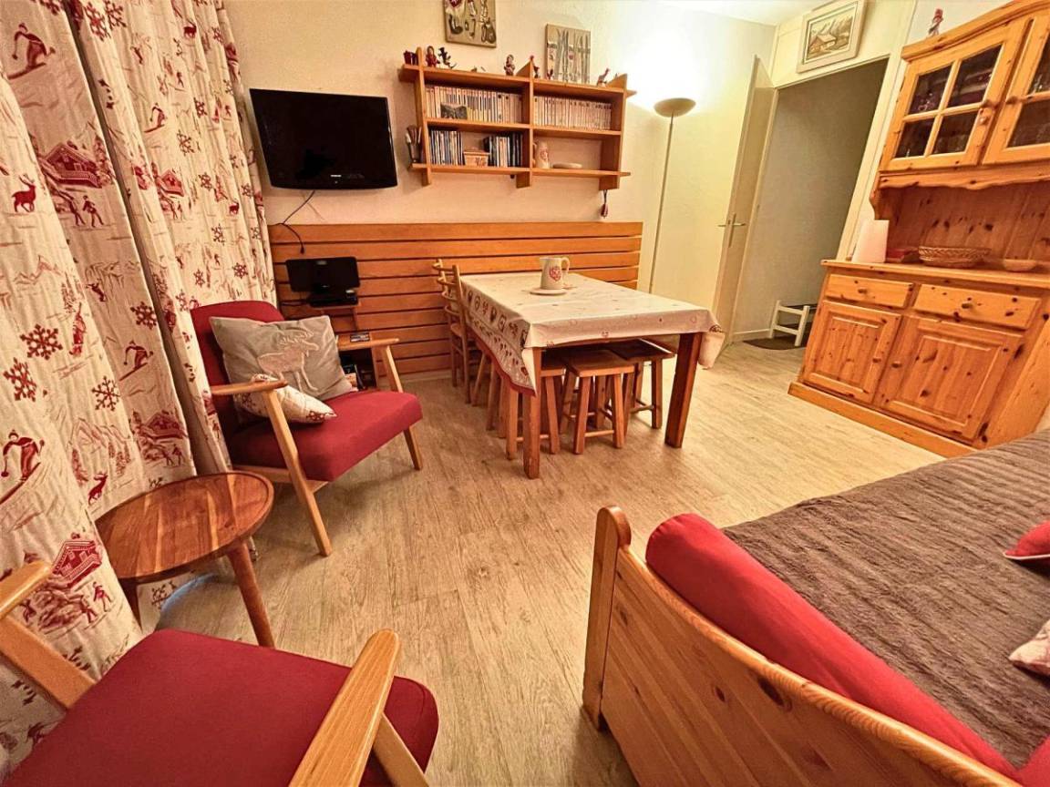 Die Résidence Oisans mit Aufzug befindet sich im Herzen der Croisette, im Zentrum des Resorts, und in der Nähe des Sportzentrums und vieler in der „Multi-Activities Card" inbegriffener Aktivitäten. Fläche von ungefähr 49 m². 4te Etage. Orientierung : Nord, West. Blick berg und Straße. Wohnzimmer mit einfache Klappschlafcouch (90), DVD-Spieler, Ausziehbett (80), TV. Schlafbereich mit Doppelbett. Schlafzimmer mit 2 Stockbetten (2*80). Kochnische mit Fonduegerät, Wasserkocher, Kaffeemaschine, Toaster, Geschirrspülmaschine, Mikrowellenherd, kleiner Backofen, 4 Glaskeramikkochfelder, Kühl-Gefrier-Kombination. Badezimmer mit Badewanne, Waschmaschine. separates WC. Balkon. Die oberen Betten sind nicht für Kinder unter 6 Jahren geeignet.