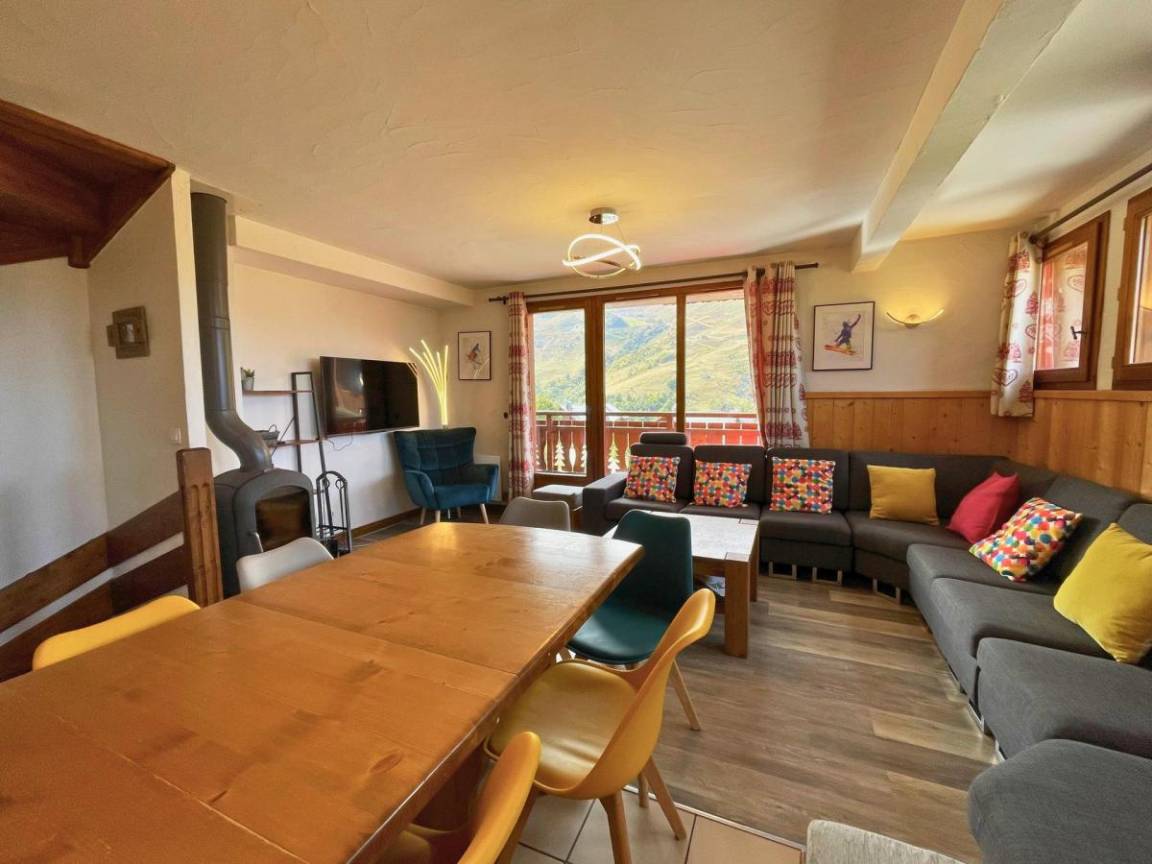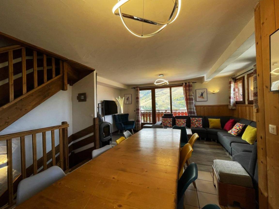 Die Residenz Les Chalets de Geffriand in Les Menuires ist ideal im Viertel Preyerand gelegen. In der Nähe befindet sich eine kostenlose Bushaltestelle, von der aus Sie bequem ins Zentrum des Resorts gelangen, wo es Geschäfte und ein Sportzentrum mit Schwimmbad gibt. Das Restaurant La Vallée Gourmande befindet sich im Erdgeschoss. Baguettes und Gebäck können vorbestellt und jeden Morgen abgeholt werden. Supermarkt 5 Minuten zu Fuß. Fläche von ungefähr 116 m². 1te Etage. Orientierung : West. Blick tal. Niveau 0 : Schlafzimmer mit Balkon, Dusche, Waschbecken, 2 Einzelbetten (80*190). Schlafzimmer mit Waschbecken, 2 Einzelbetten (80*190), Waschraum, WC. Niveau 1 : Wohnzimmer mit Schwedenofen. Schlafzimmer mit Dusche, Waschbecken, 2 Einzelbetten (80*190), WC. Kochnische mit Wasserkocher, Kaffeemaschine, Backofen, Toaster, Geschirrspülmaschine, Mikrowellenherd, 4 Herdplatten, Kühlschrank. Balkon. Niveau 2 : Schlafzimmer mit 2 Einzelbetten (80*190). Schlafzimmer mit Balkon, Dusche, Waschbecken, 2 Einzelbetten (80*190). Badezimmer mit Waschbecken, Haartrockner, Handtuchtrockner. separates WC.