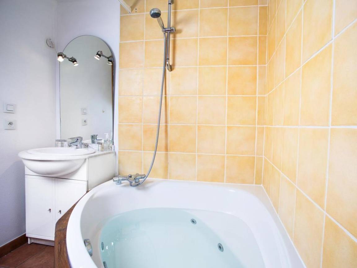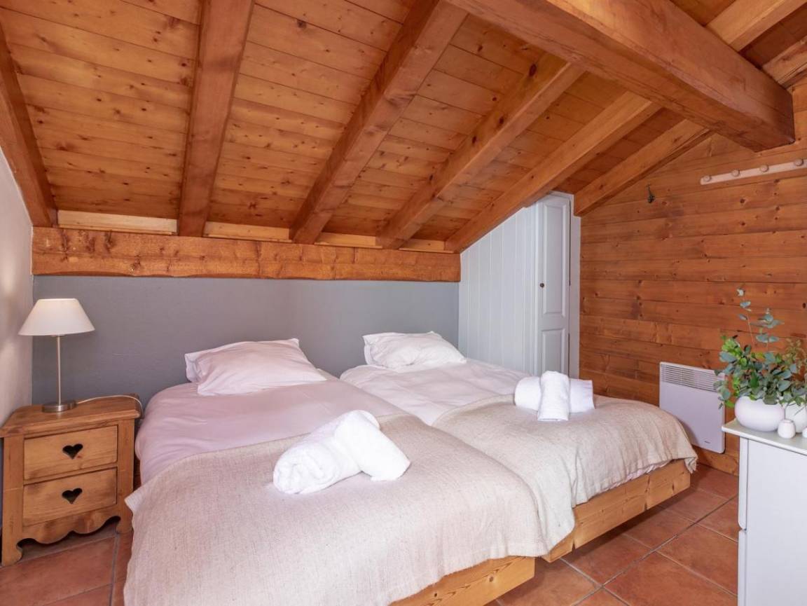 Dieses traditionelle Chalet verfügt über 8 Schlafzimmer auf 3 Ebenen, jedes mit eigenem Bad. Es bietet erstklassige Dienstleistungen wie einen Whirlpool im Freien und eine Saunakabine zum Entspannen nach einem langen Skitag! Fläche von ungefähr 200 m². Orientierung : West. Niveau 0 : Diele. 3 Schlafzimmer mit Dusche, Doppelbett, Waschraum, WC. Schlafzimmer mit Dusche, 2 Einzelbetten, Waschraum, WC. Waschküche mit Waschmaschine, Wäschetrockner. Waschräume mit Dusche, WC. Niveau 1 : Wohnzimmer mit Kamin. Schlafzimmer mit Badewanne, Doppelbett, Badezimmer, WC. offene Küche mit Raclettegerät, Kaffeemaschine, Backofen, Toaster, Geschirrspülmaschine, Mikrowellenherd, 5 Gasherdplatten, Kühl-Gefrier-Kombination. separates WC. Terrasse. Niveau 2 : 3 Mansardenschlafzimmer mit Dusche, 2 Einzelbetten, Waschraum, WC.