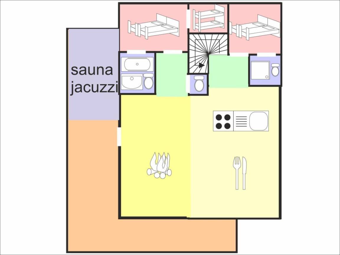 Fläche von ungefähr 150 m². Orientierung : West. Niveau 0 : Diele. Schlafzimmer mit Dusche, Doppelbett, Waschraum, WC. Niveau 1 : Wohnzimmer mit Kamin. Schlafzimmer mit Dusche, 2 zwei Einzelbetten, Waschraum, WC. Schlafzimmer mit Badewanne, Doppelbett, 2 Stockbetten (70), Badezimmer, WC. offene Küche mit Raclettegerät, Wasserkocher, Kaffeemaschine (filtres), Backofen, Toaster, Geschirrspülmaschine, Mikrowellenherd, 5 Gasherdplatten, Kühl-Gefrier-Kombination. separates WC. Terrasse. Niveau 2 : Mansardenzimmer mit Dusche, 2 zwei Einzelbetten, Waschraum, WC. 2 Mansardenschlafzimmer mit 2 zwei Einzelbetten. Mansardenzimmer mit Dusche, 2 Einzelbetten, Waschraum, WC. Waschräume mit Dusche, Waschmaschine, WC. Die oberen Betten sind nicht für Kinder unter 6 Jahren geeignet.