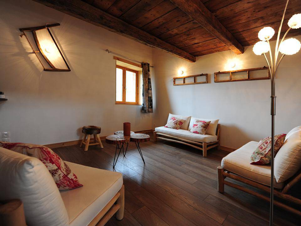 Fläche von ungefähr 90 m². Wohnzimmer mit Sofa, Kamin. Schlafzimmer mit Doppelbett. Schlafzimmer mit 2 Einzelbetten. Zwischengeschoss mit 3 Einzelbetten. Küche mit Wasserkocher, Kaffeemaschine, Küchenherd, kleiner Backofen mit Mikrowellenfunktion, Toaster, Geschirrspülmaschine, Mikrowellenherd, Kühl-Gefrier-Kombination. separates WC. 2 Waschräume mit Dusche, Waschbecken. Badezimmer mit Badewanne, Dusche, Waschbecken, Waschmaschine. Balkon. Sauna.