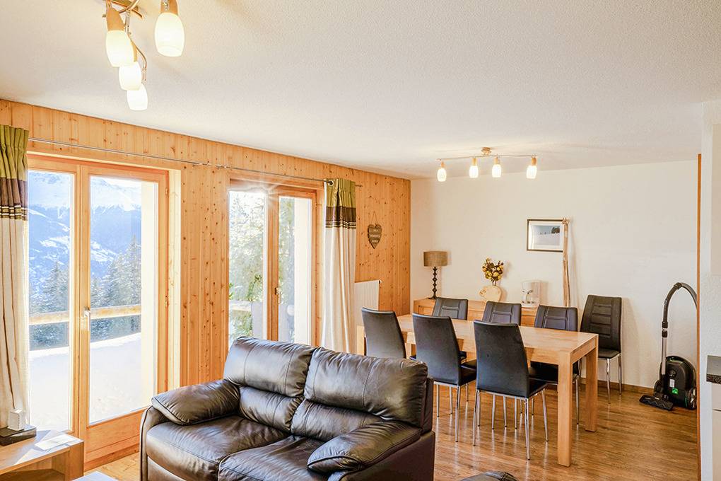 Ort: Les Collons Absolute Top-Lage auf 1800 m Höhe direkt an der Skipiste! Skiabfahrt vom und bis zum Haus. Schöner Panoramablick bis zum Matterhorn. Sessellift 200 m. Ortsmitte mit Supermarkt, Geschäften, Restaurants 300 m. Eislaufbahn 600 m. Pkw-Stellplatz 200 m, danach zu Fuß zum Chalet (Schlitten fürs Gepäck vorhanden). Weitere Pkw-Stellplätze 250 m (je nach Verfügbarkeit, Gebühr), Gratis-Parkplätze am Ortseingang (ca. 700 m).