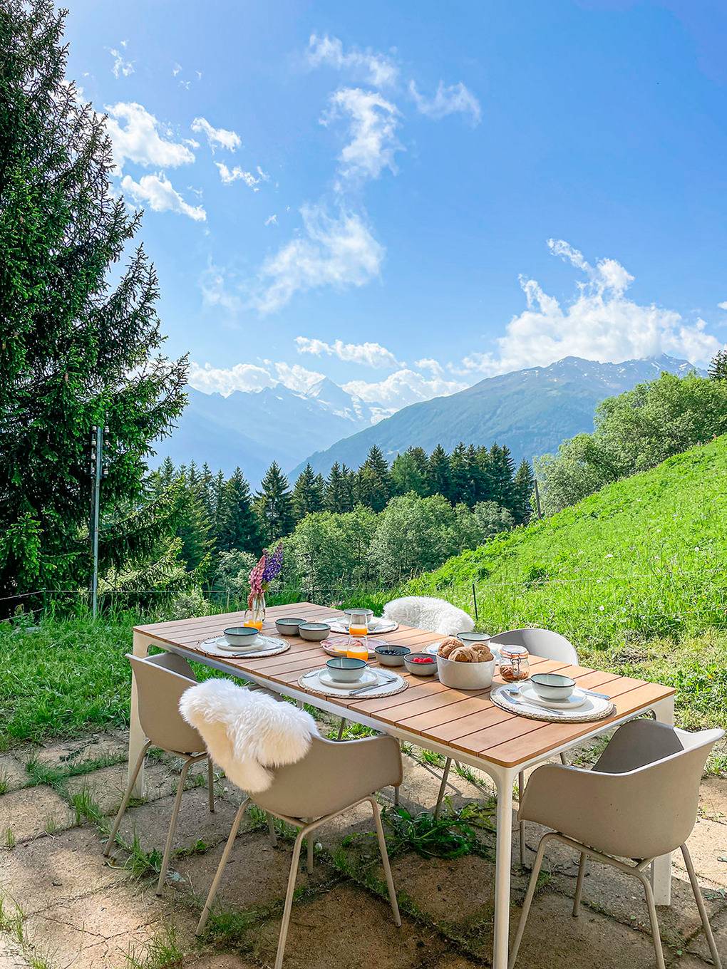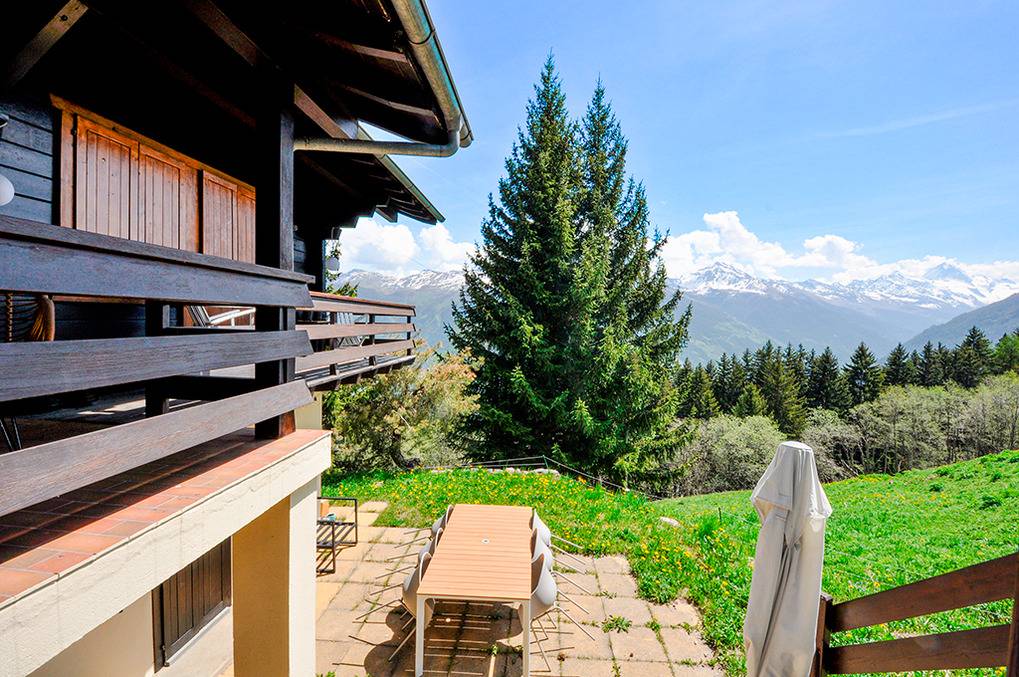 Ort: Les Collons. Ruhige Lage auf 1800 m Höhe inmitten des kleinen Chaletdorfs. Schöner Bergblick bis zum Matterhorn. Ortsmitte mit Geschäften, vielfältigen Wanderwegen nur 100 m. Stausee Grand Dixence 15 km. Ausflugsziele Zermatt, Chamonix, Montreux am Genfer See und Bettmeralp mit Aletschgletscher jeweils nur 90 km. Pkw-Zufahrt bis auf ca. 50 m, danach kurzer Fußweg zum Chalet.