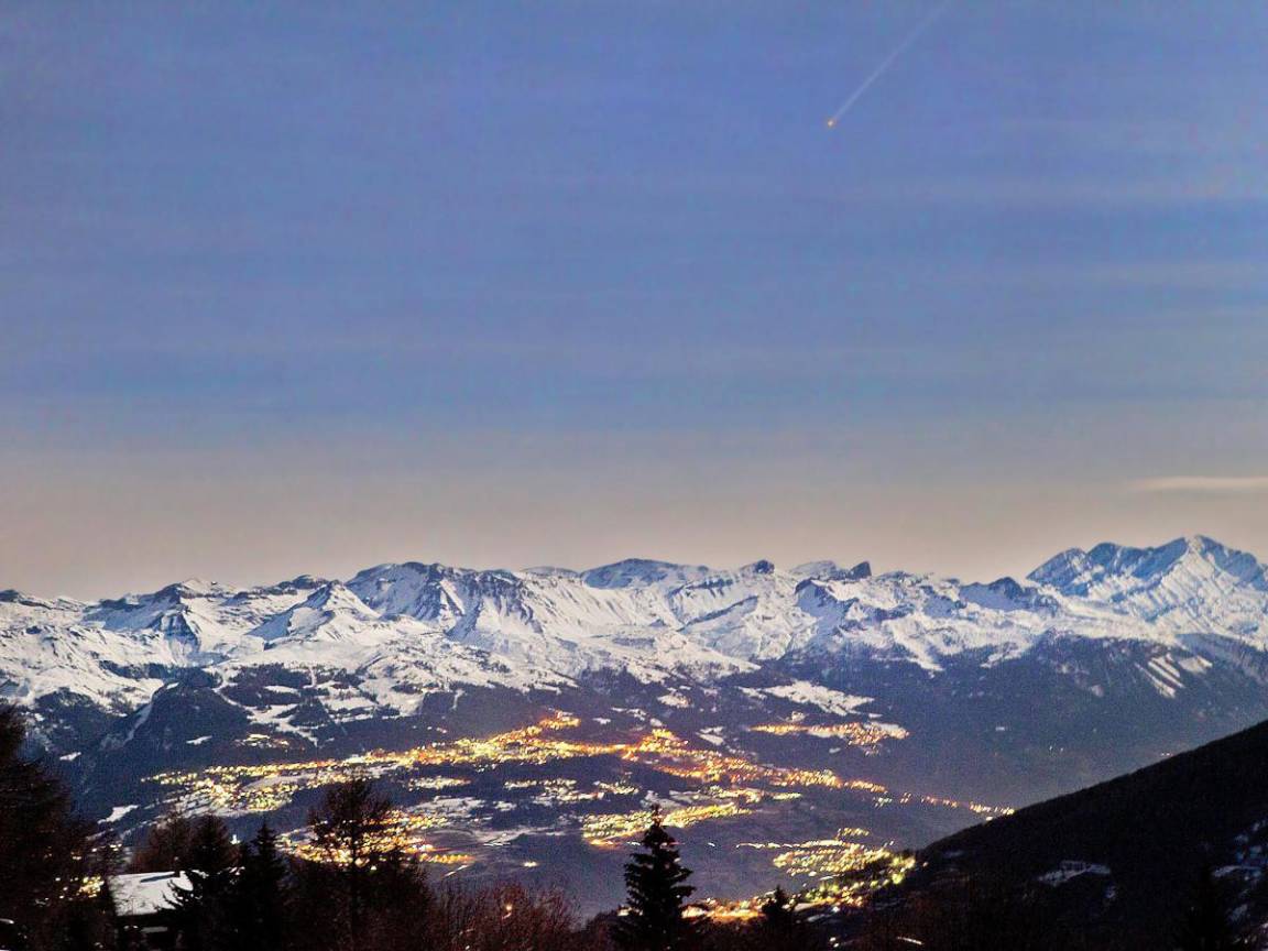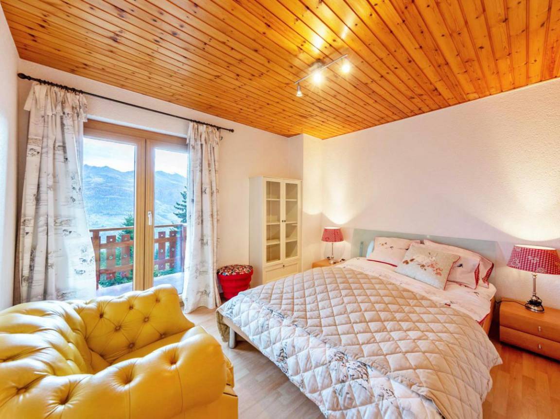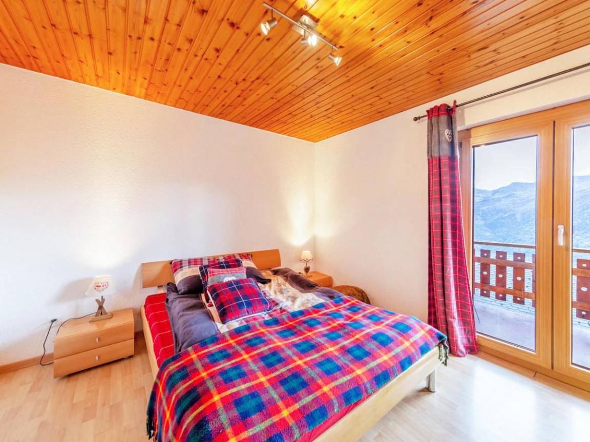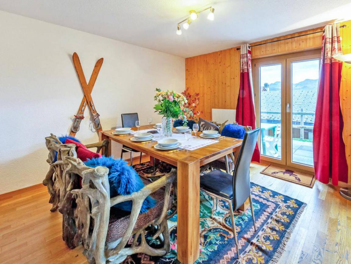 Fläche von ungefähr 90 m². Blick berg. Niveau 0 : Wohnzimmer mit Schwedenofen. Schlafzimmer mit 2 Stockbetten. Küche mit Fonduegerät, Raclettegerät, Wasserkocher, Kaffeemaschine (Nespresso/Magimix), Backofen, Geschirrspülmaschine, Mikrowellenherd, 4 Glaskeramikkochfelder, Kühl-Gefrier-Kombination. Waschräume mit Dusche, Waschbecken, WC. Balkon mit Grillrost, Gartentisch und -stühle, Liege. Niveau 1 : 3 Schlafzimmer mit Doppelbett. Badezimmer mit Badewanne, Waschbecken, Waschmaschine, WC. Die oberen Betten sind nicht für Kinder unter 6 Jahren geeignet.