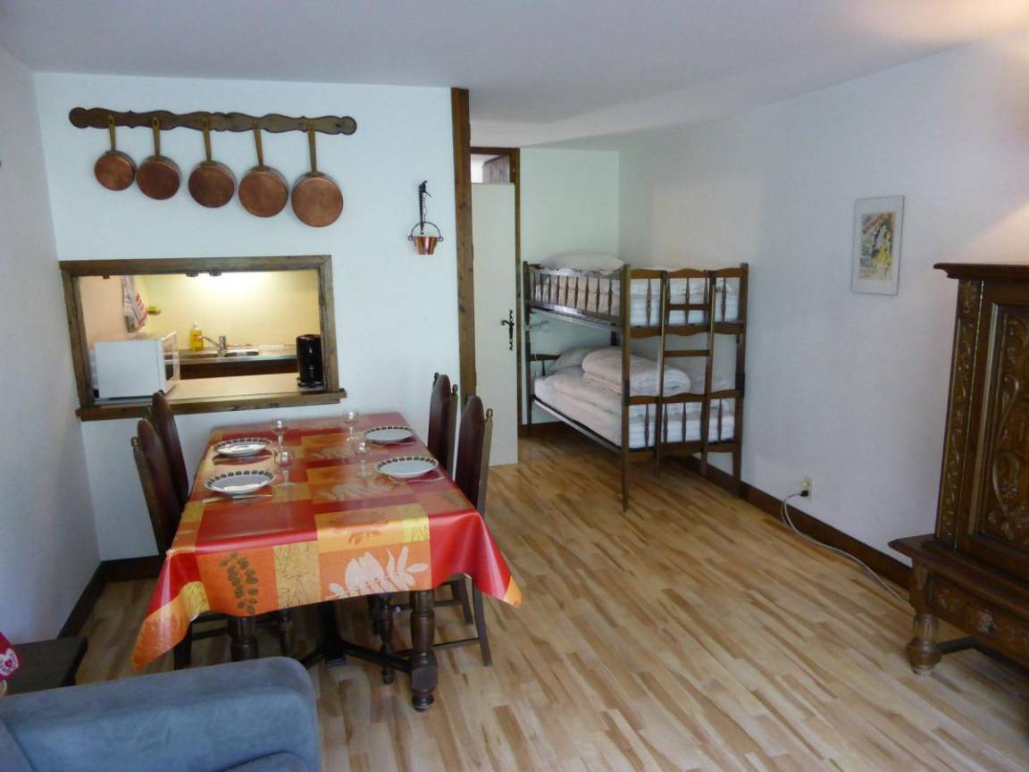 Die Residenz Le Bionnassay befindet sich am Eingang des Dorfes Contamines. Sie steht 50 Meter vom Zentrum der Station Les Contamines-Montjoie, 1,2 km von den Seilbagnen und 50 Meter von der Haltestelle für den Pendelbus entfernt. Das Gebäude besteht aus 2 oberen Etagen und 3 unteren Etagen mit Aufzug. Fläche von ungefähr 30 m². Erdgeschoss. Orientierung : West. Wohnzimmer mit Klappschlafcouch. Essbereich. Schlafbereich mit 2 Stockbetten. Küche mit Küchenherd, Backofen, Mikrowellenherd, Kühlschrank. Waschräume mit Dusche, Waschbecken. WC. Terrasse. Die oberen Betten sind nicht für Kinder unter 6 Jahren geeignet.