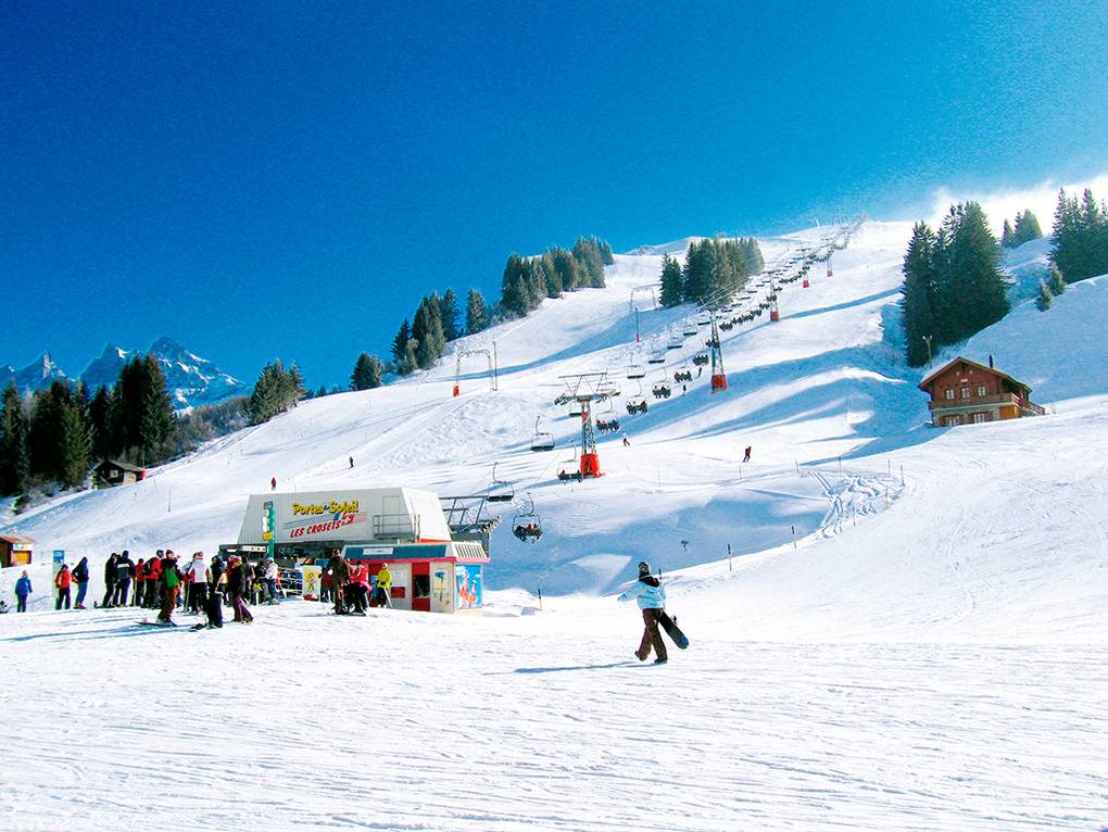 Ort: Les Crosets. Top Lage direkt an der Skipiste! Alleinstehende Skihütte auf 1700 m Höhe im Skigebiet oberhalb des Ortes. Skiabfahrt vom und bis zum Haus! Herrlicher Blick auf die Berggruppe "Dents du Midi". Pkw-Zufahrt auf 300 m. Ortsmitte Les Crosets 600 m. Sessellift 200 m. Sportzentrum Champéry mit Eislaufhalle, Hallenbad, Kletterwand 8,9 km.