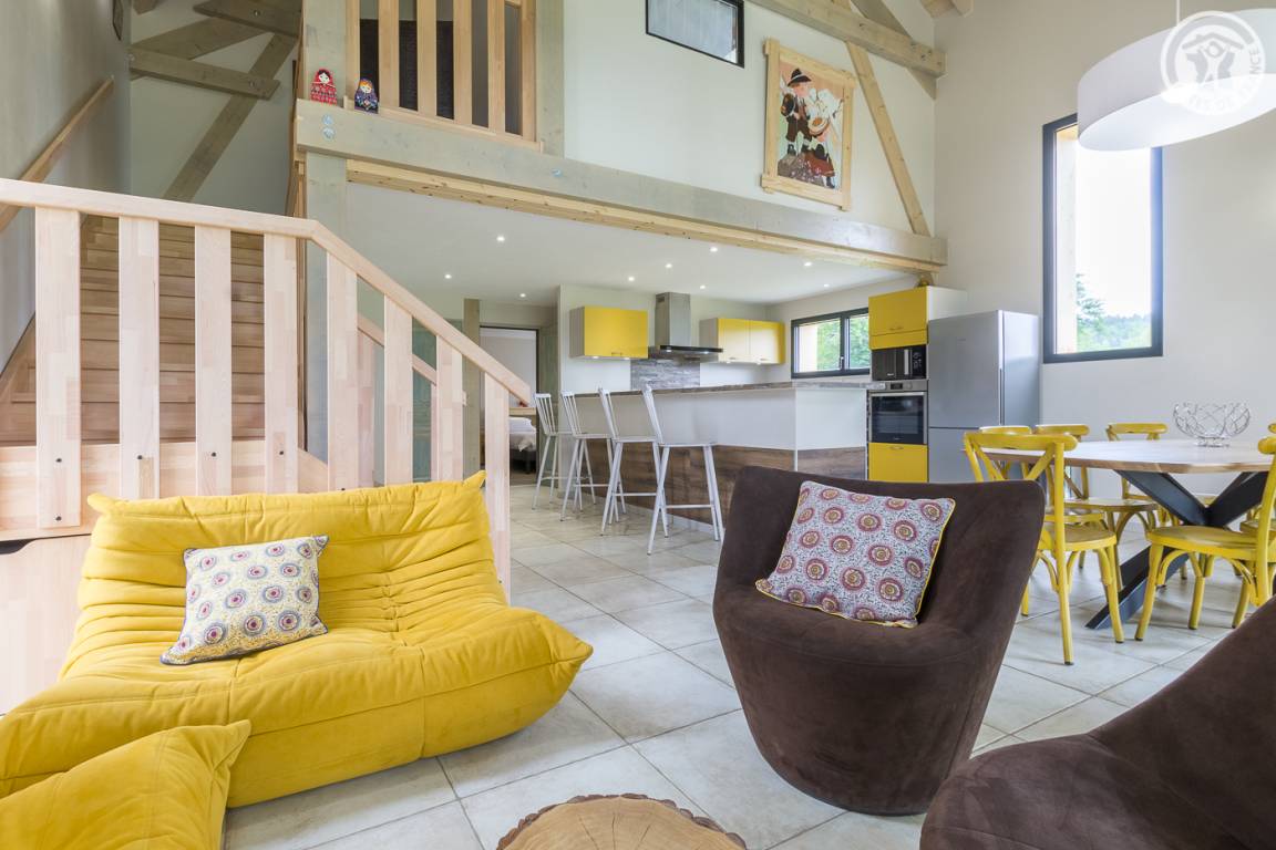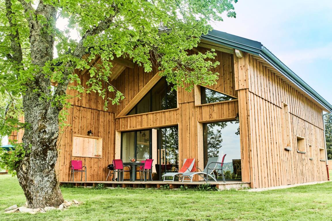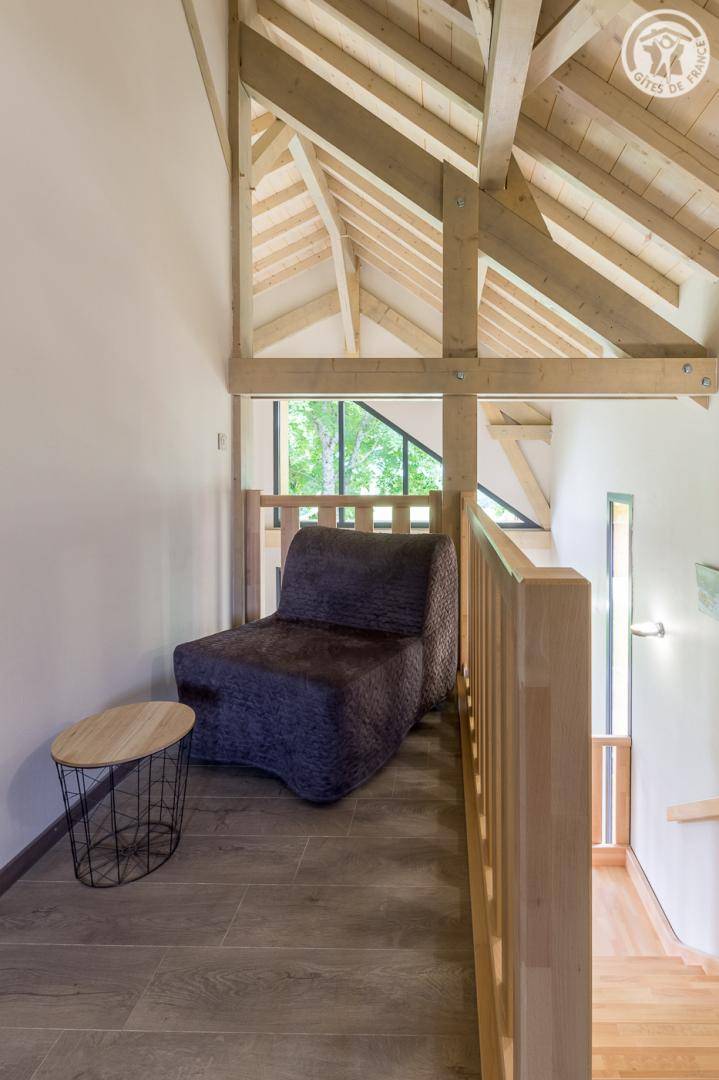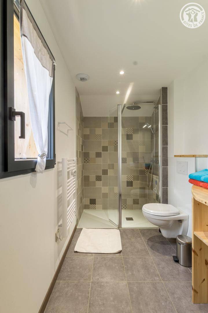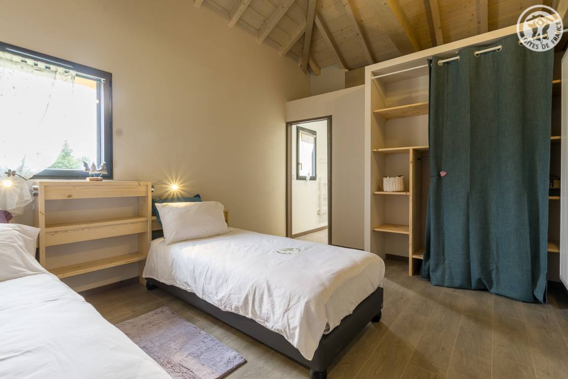 Unabhängiges Chalet, umgeben von 3 anderen Chalets. Zufahrt über eine 250 m lange Straße (im Winter obligatorische Ausrüstung), privater Parkplatz. Im Erdgeschoss. Wohnzimmer-Küche-Wohnbereich mit Herd, 1 Schlafzimmer mit eigenem Bad (Dusche) ((2 Einzelbetten 90x200 cm können), Terrasse, separates WC verzwillingt werden auf der 1. Etage: 2 Schlafzimmer mit eigenem Bad (Dusche und WC / Dusche) (2 Betten 90x200 cm können in jedem Raum verzwillingten werden), Ski- und Fahrradraum. Gemeinschafts - Waschmaschine und Trockner im Gebäude geteilt mit den 4 Unterkünften Schwimmspa (nach Plan) Schwimmspa ( dem Zeitplan zufolge).