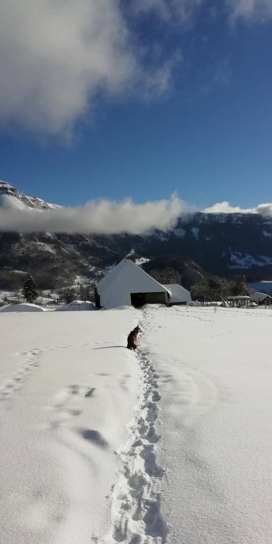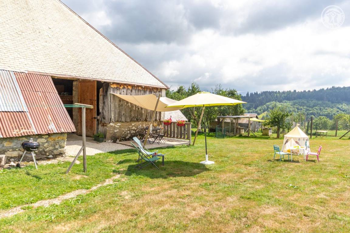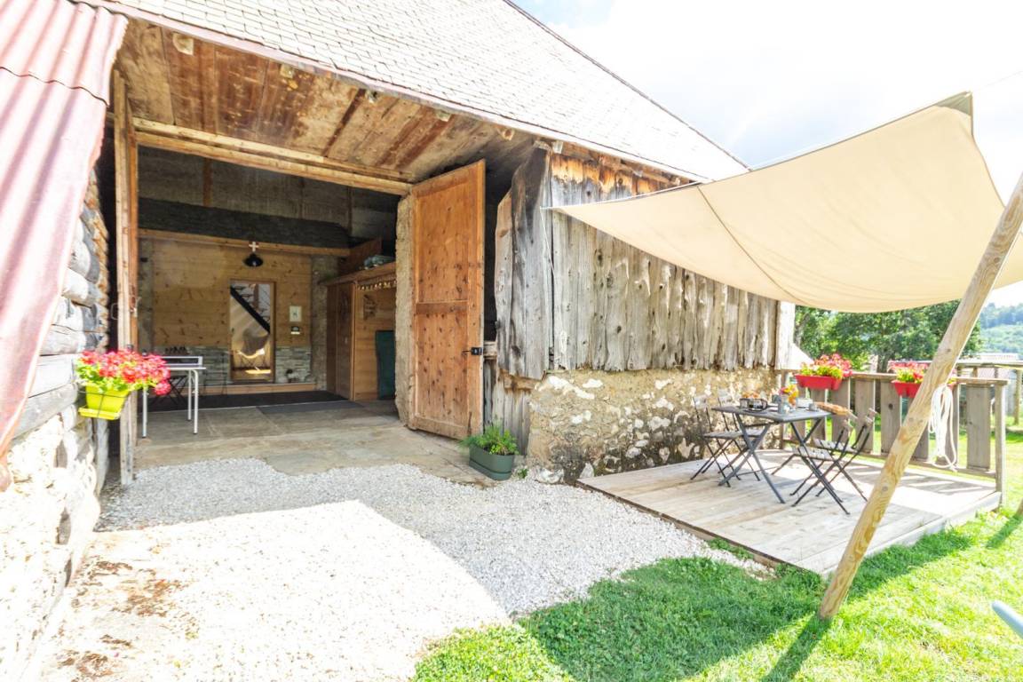 Dieser authentische Bauernhof grenzt an den Bauernhof der Eigentümer und ist über einen ebenen, gepflasterten und barrierefreien 200 Meter langen Weg erreichbar. Er öffnet sich zu einem weitläufigen, nicht eingezäunten Grundstück von 3000 m², ideal, um die Ruhe und Schönheit der Landschaft in vollen Zügen zu genießen. Das außergewöhnliche Bergpanorama und die umgebende Ruhe machen ihn zu einer wahren Oase der Ruhe. Die nächsten Geschäfte befinden sich während der Touristensaison in La Féclaz oder 13 km entfernt in einem Supermarkt für den täglichen Bedarf.