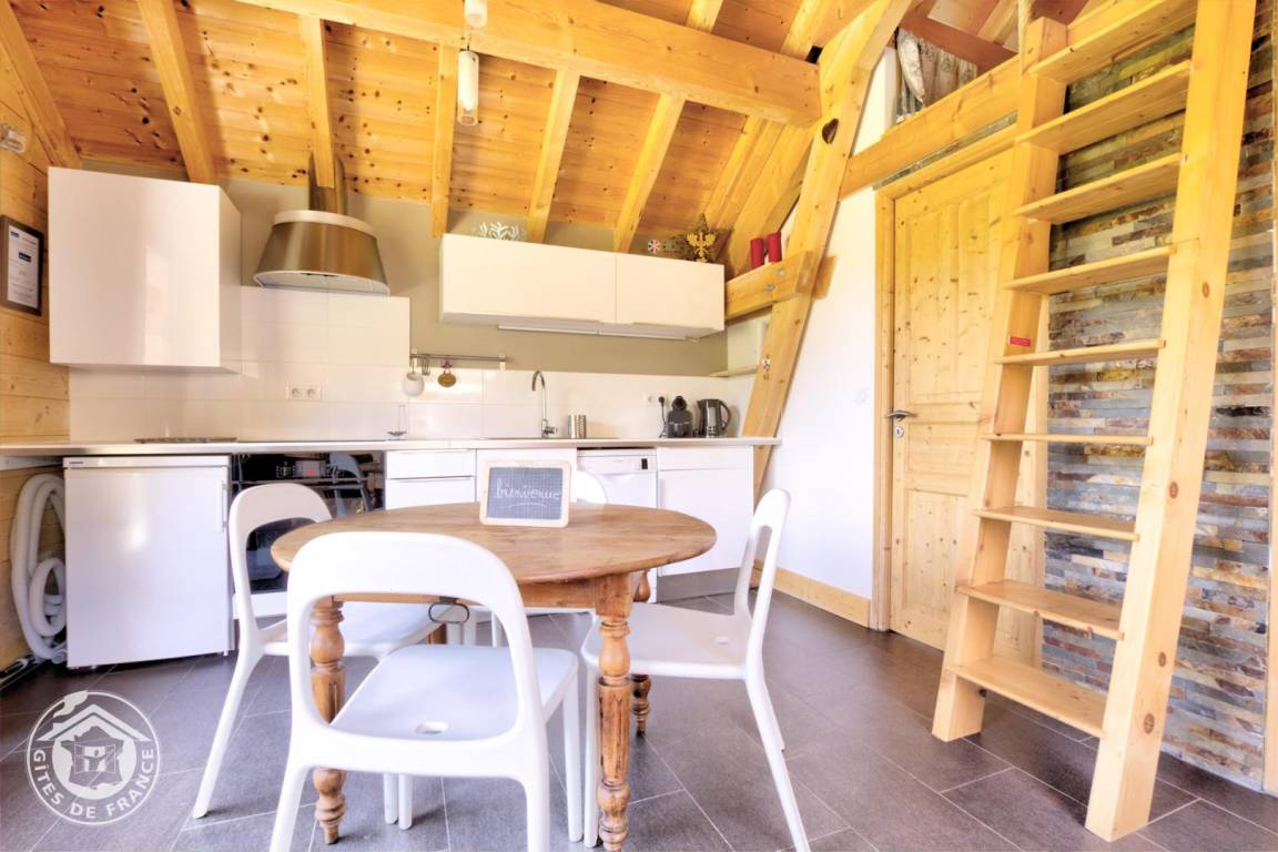 Gîte in einem Chalet einschließlich anderer Touristenunterkünfte. Unabhängiger Eingang, Zugang über Außentreppe. Wohnzimmer (Wohnküche-Sitzecke) mit Schlafsofa für 2 Personen. 1 Schlafzimmer (1 Doppelbett 140x190cm). Duschraum (ebenerdige Dusche mit WC). Zwischengeschoss mit Schlafbereich für 2 Personen. Parkplätze stehen vor Ort zur Verfügung (1 Platz). WLAN-Internetverbindung. Terrasse mit Gartenmöbeln. Skischrank.