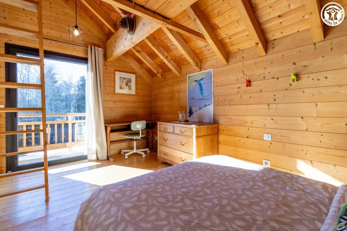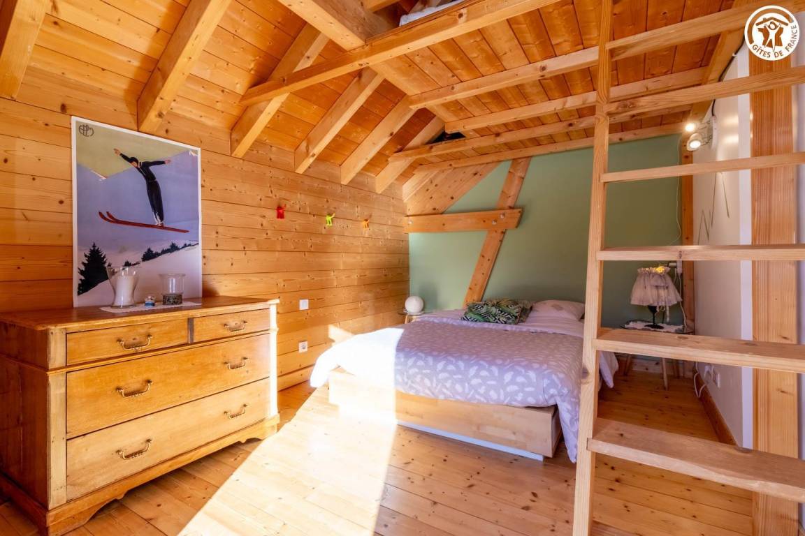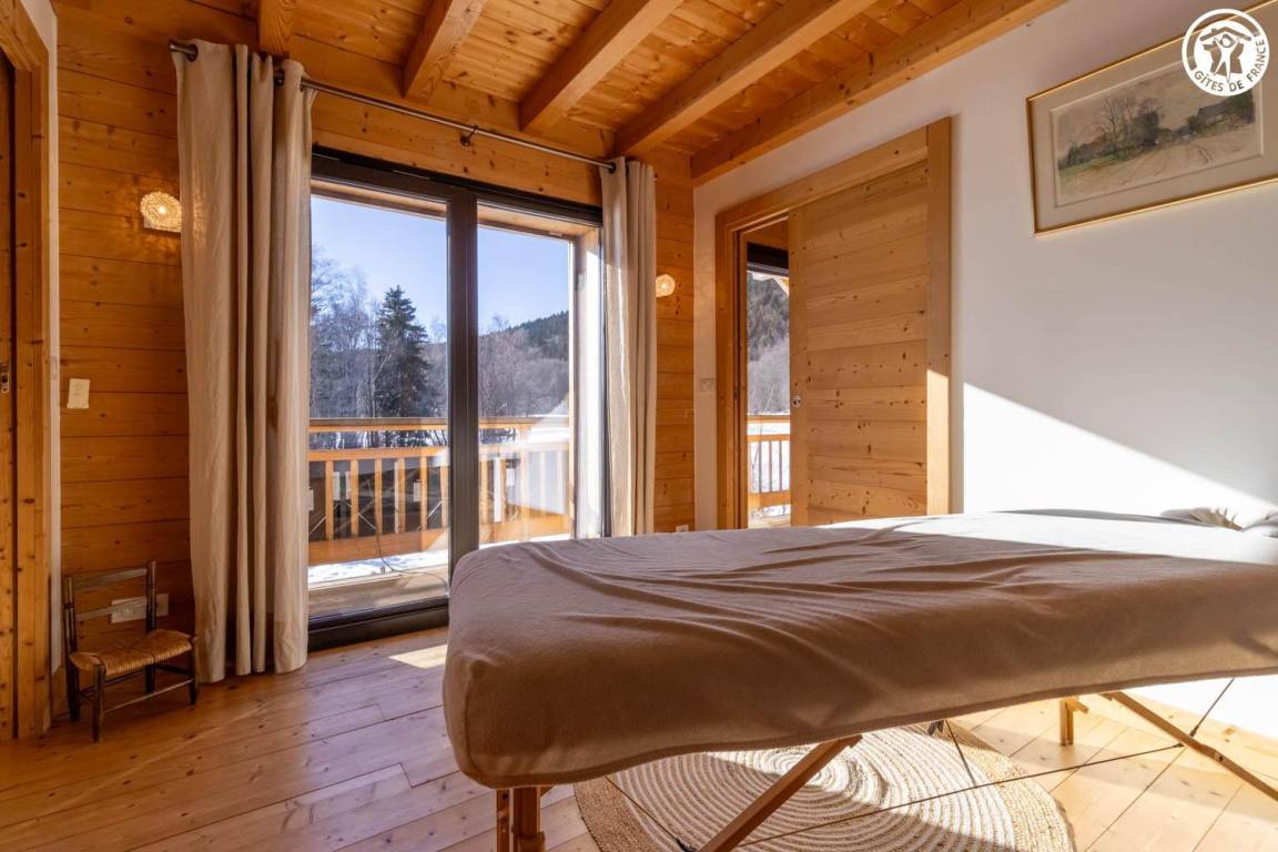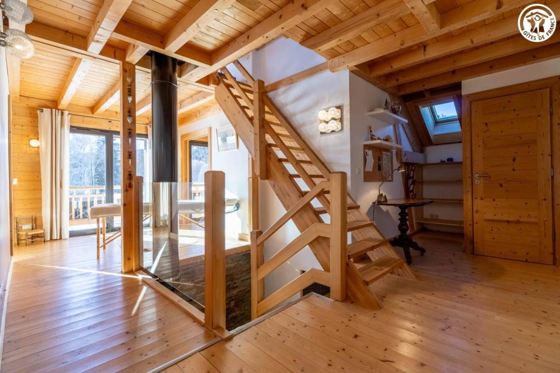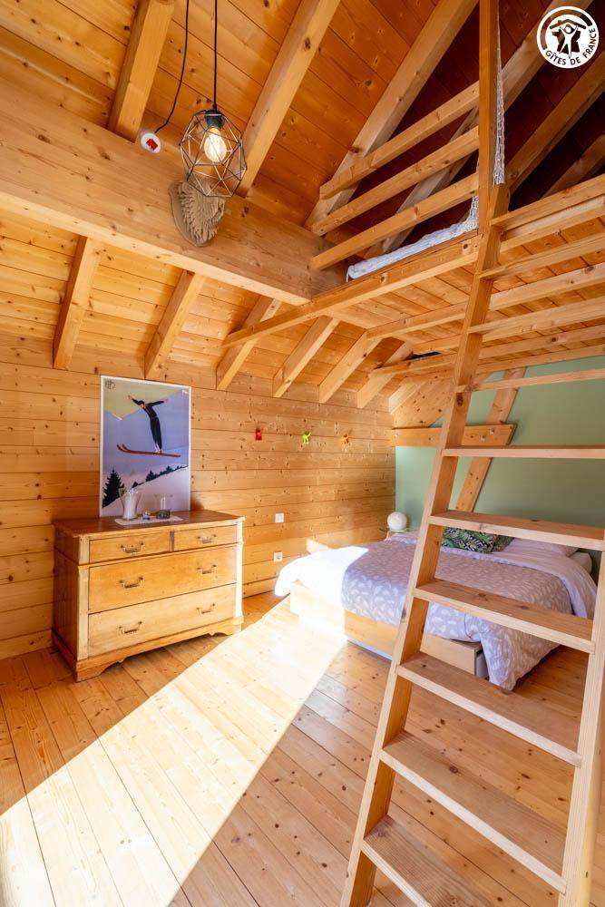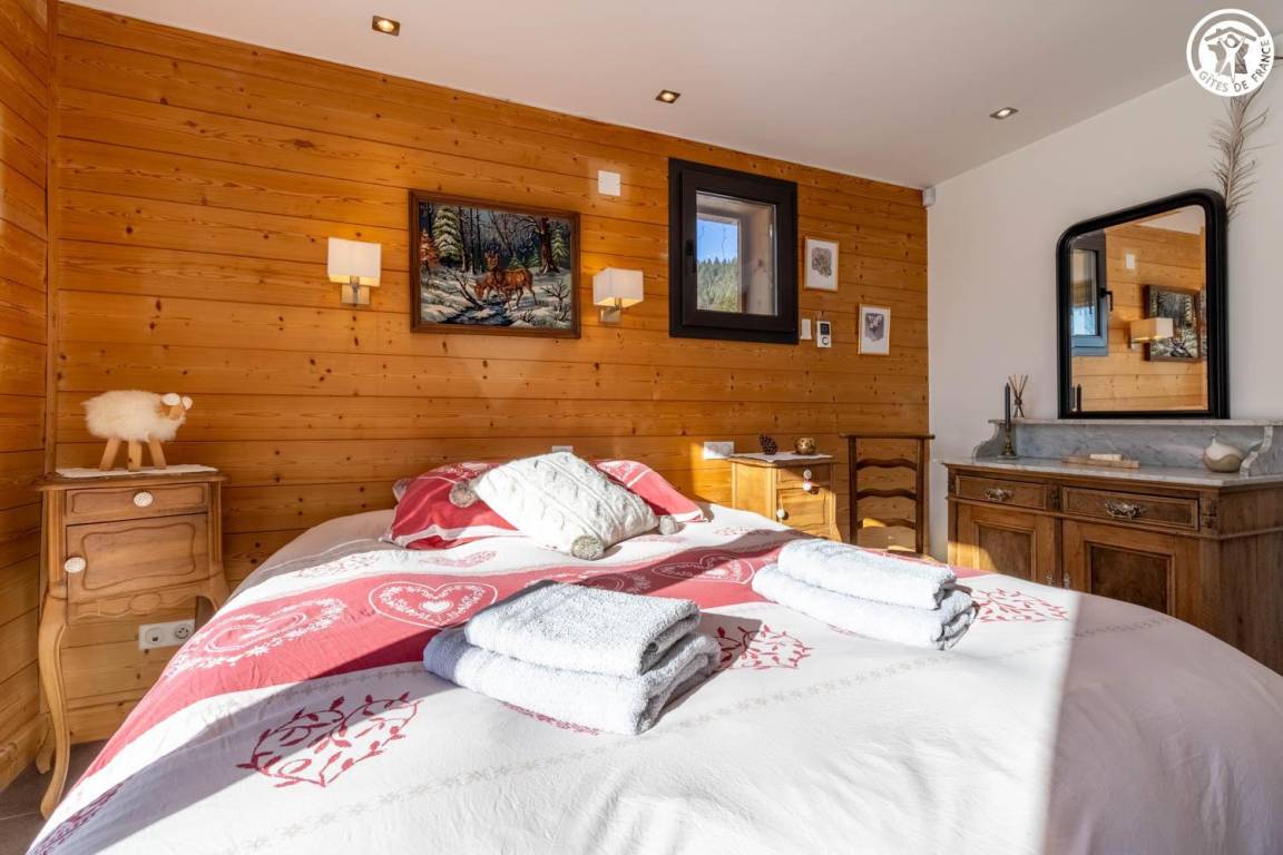 Gite in einem Chalet, zu dem auch ein weiteres Gîte gehört. Im Erdgeschoss des Chalets, unabhängiger Eingang, auf 4 Ebenen. Im Erdgeschoss: Wohnküche, 1 Schlafzimmer (1 Doppelbett 140x200 cm mit Bad (Dusche)), separates WC, Ankleidezimmer, 1 Schlafzimmer (1 Doppelbett 160x200 cm) mit Badezimmer (Dusche + WC). Im 1. Stock: Badezimmer (Dusche + Badewanne), WC, 2 Schlafzimmer mit Balkon (1 Doppelbett 140x200 cm mit Schreibtischbereich / 1 Doppelbett 140x200 cm mit Zwischengeschoss, auf dem sich 1 Einzelbett 90x190 cm befindet), Freiraum mit Massagetisch (optionaler Service, der bei den kompetenten Fachleuten des Resorts reserviert werden muss). Im 2. Stock: Schlafzimmer im Zwischengeschoss (ohne Tür) (1 Doppelbett 140x200 cm und Spielbereich). Im Keller: Skischränke und Umkleideraum, Waschküche. 3 private Parkplätze rund um das Chalet. Terrasse mit Spa und Essbereich. 2. Entspannungsterrasse. Skier aus dem nordischen Bereich und dem alpinen Bereich.
