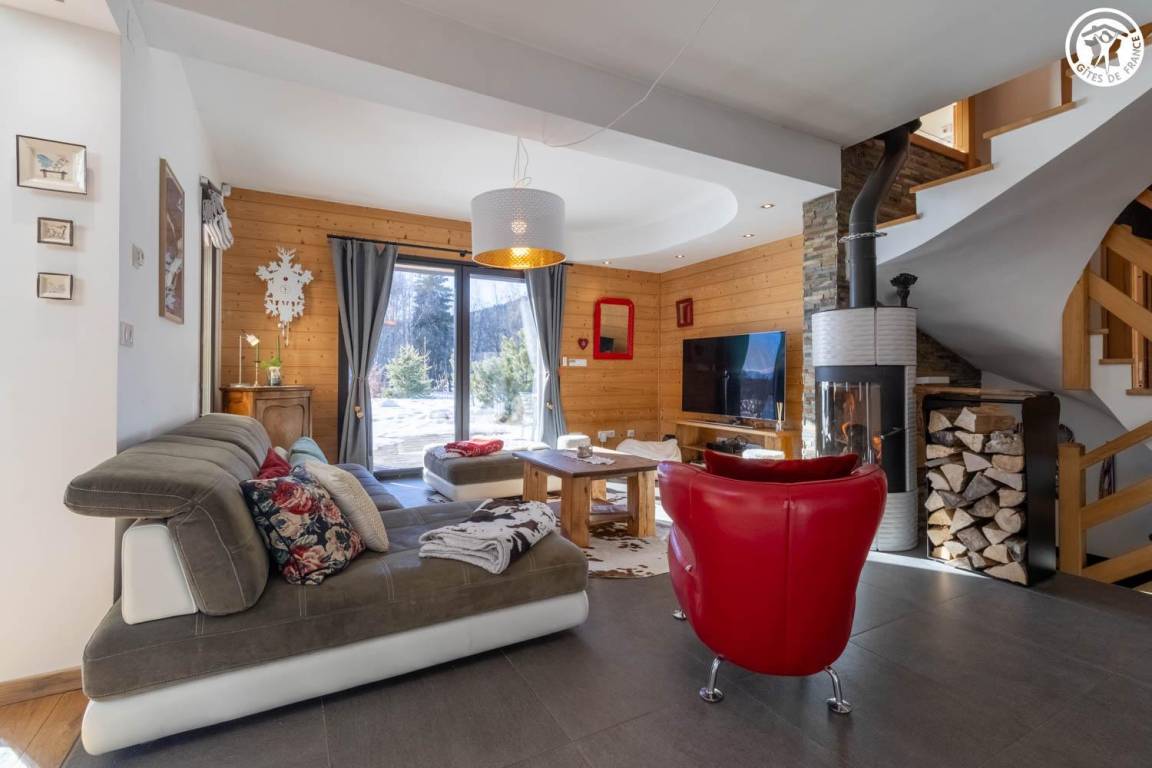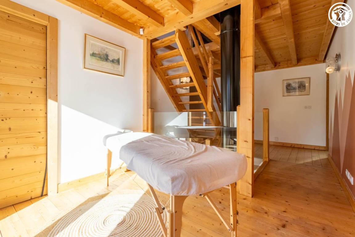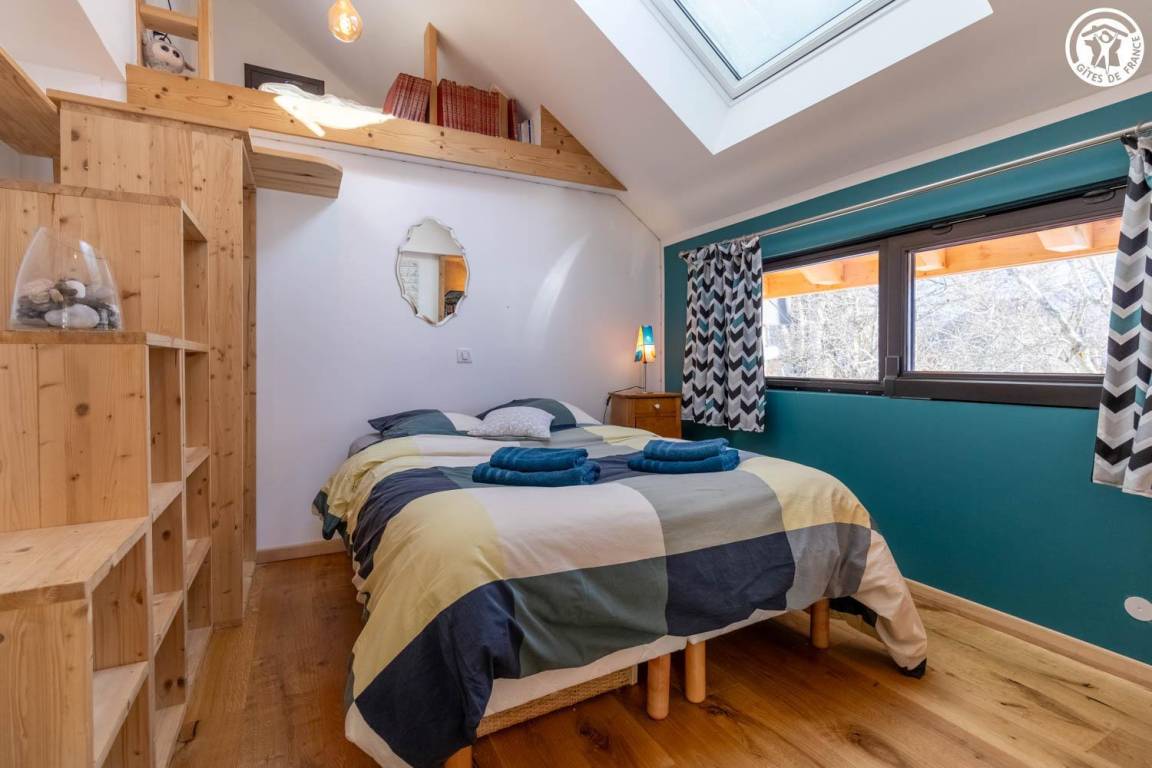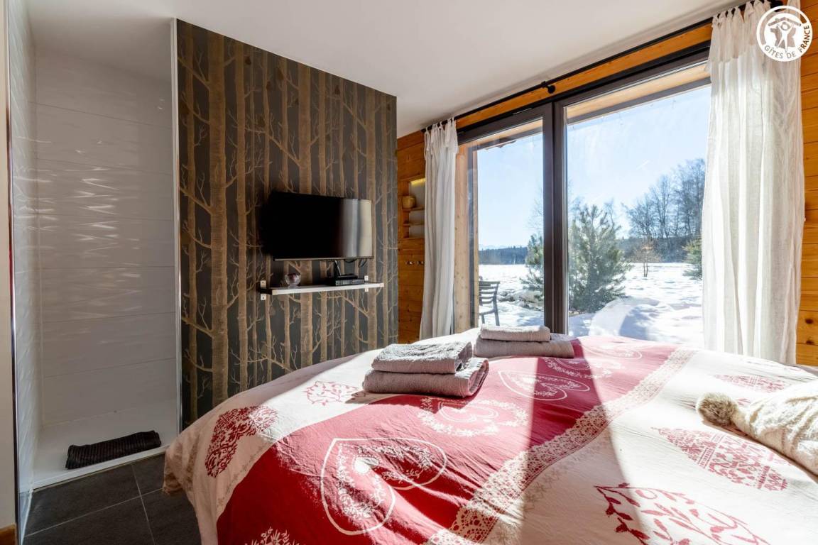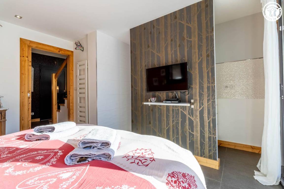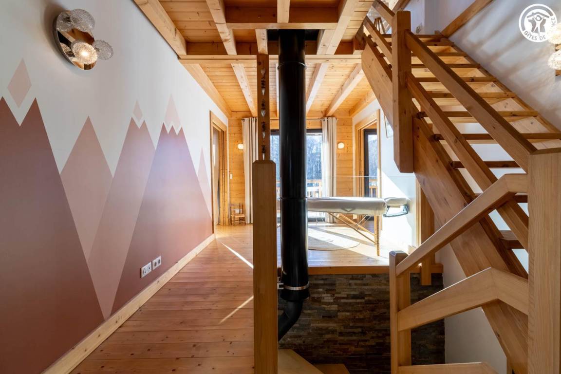 Gite in einem Chalet, zu dem auch ein weiteres Gîte gehört. Im Erdgeschoss des Chalets, unabhängiger Eingang, auf 4 Ebenen. Im Erdgeschoss: Wohnküche, 1 Schlafzimmer (1 Doppelbett 140x200 cm mit Bad (Dusche)), separates WC, Ankleidezimmer, 1 Schlafzimmer (1 Doppelbett 160x200 cm) mit Badezimmer (Dusche + WC). Im 1. Stock: Badezimmer (Dusche + Badewanne), WC, 2 Schlafzimmer mit Balkon (1 Doppelbett 140x200 cm mit Schreibtischbereich / 1 Doppelbett 140x200 cm mit Zwischengeschoss, auf dem sich 1 Einzelbett 90x190 cm befindet), Freiraum mit Massagetisch (optionaler Service, der bei den kompetenten Fachleuten des Resorts reserviert werden muss). Im 2. Stock: Schlafzimmer im Zwischengeschoss (ohne Tür) (1 Doppelbett 140x200 cm und Spielbereich). Im Keller: Skischränke und Umkleideraum, Waschküche. 3 private Parkplätze rund um das Chalet. Terrasse mit Spa und Essbereich. 2. Entspannungsterrasse. Skier aus dem nordischen Bereich und dem alpinen Bereich.