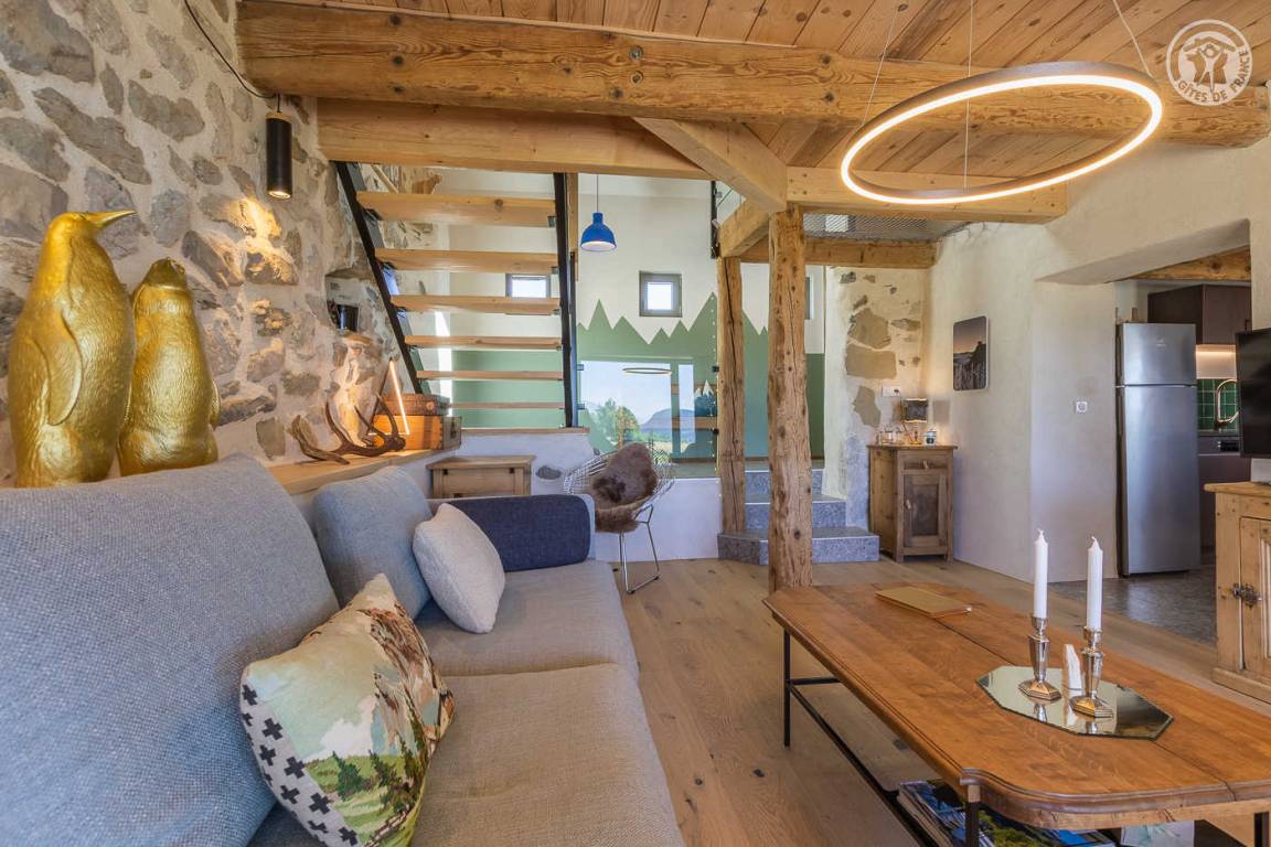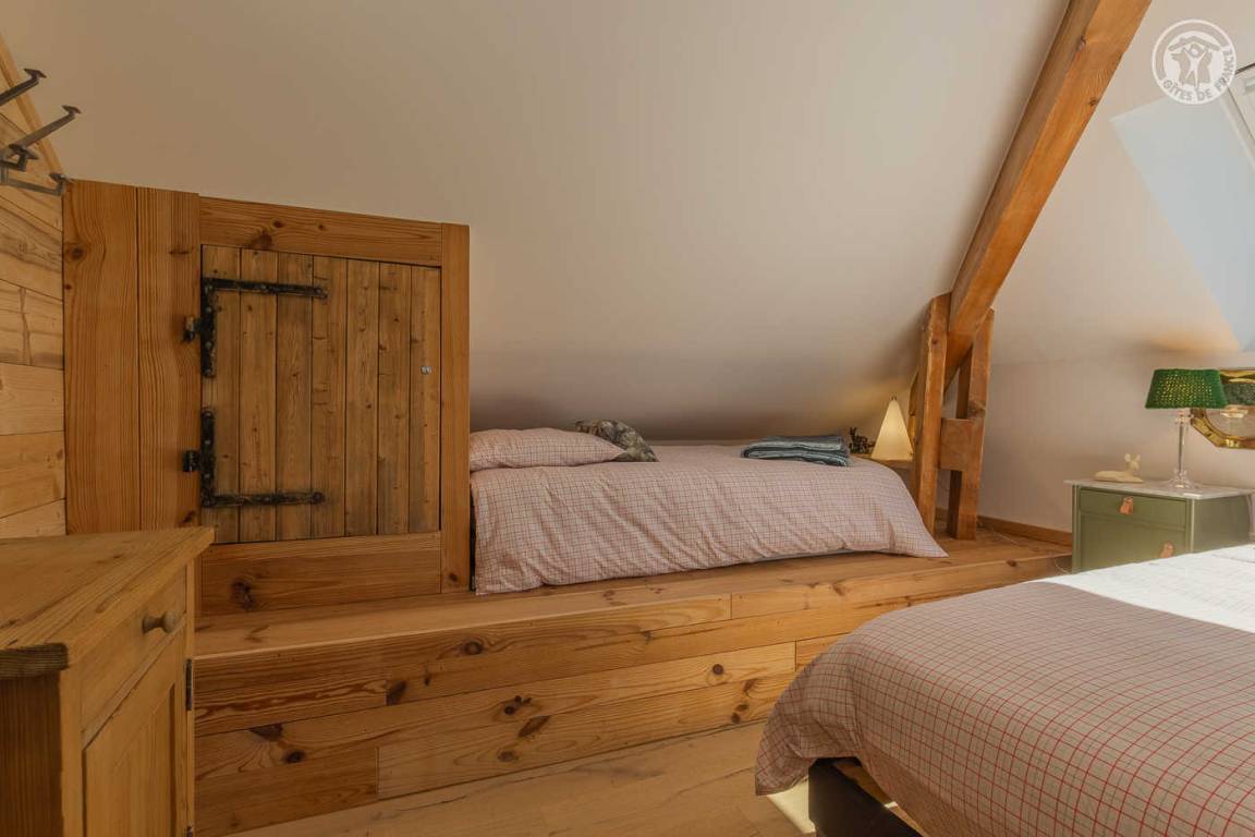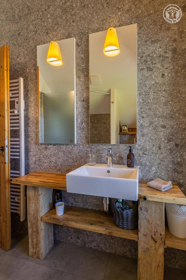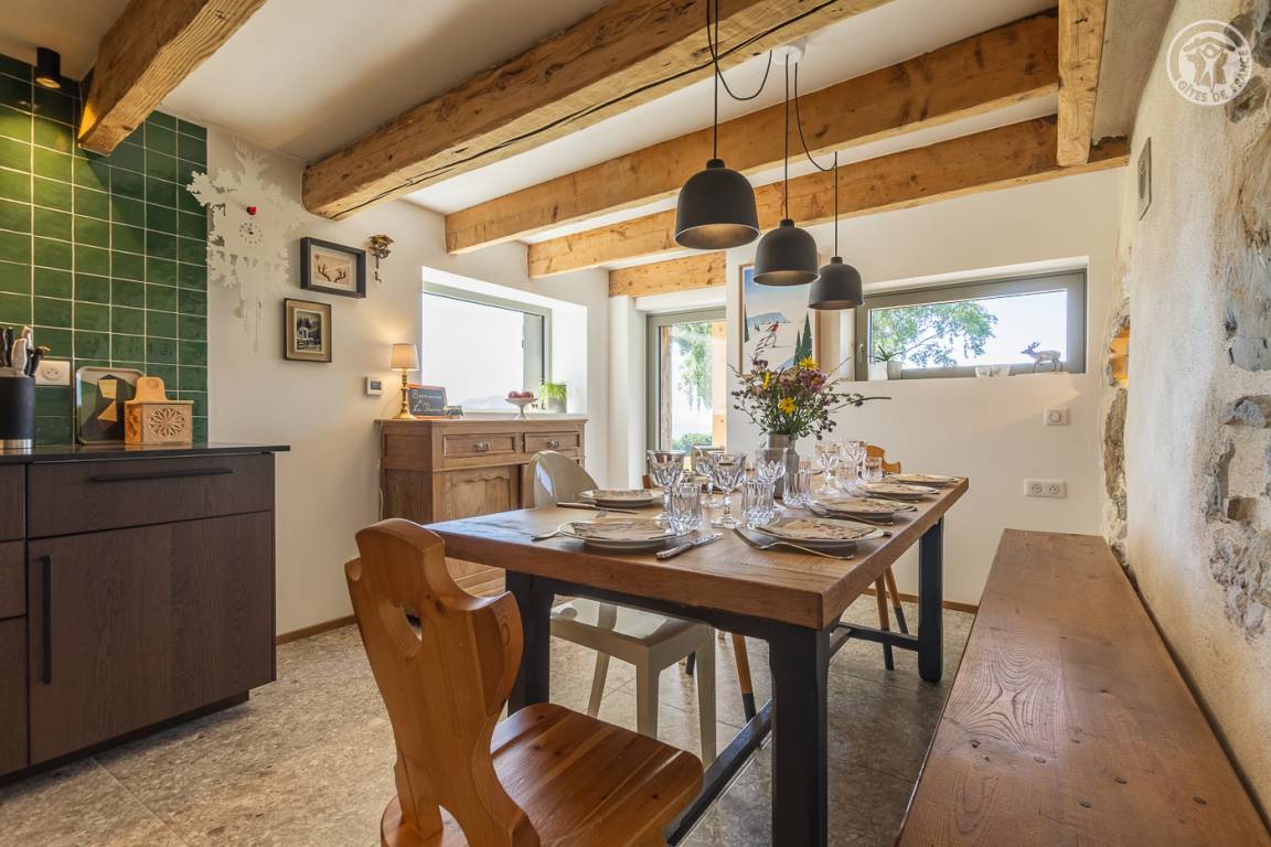 „L'accueil par Amandine a été super, avec plein de conseils de visites dans les environs du gîte. La vue est effectivement merveilleuse depuis le jardin. Le gîte est très bien équipé et très joliment décoré dans le thème de la montagne. Les lits sont très confortables et les 2 salles d'eau très appréciables quand on est nombreux. Selon notre expérience, la chambre avec les 2 lits simples n'est pas très confortables pour deux grands ado/jeunes adultes car le plafond est très bas et en pente sur la moitié de la chambre. Cette chambre serait plus adaptée pour des enfants encore assez petits en taille. Tout le reste était très bien.“