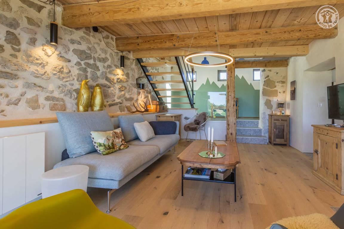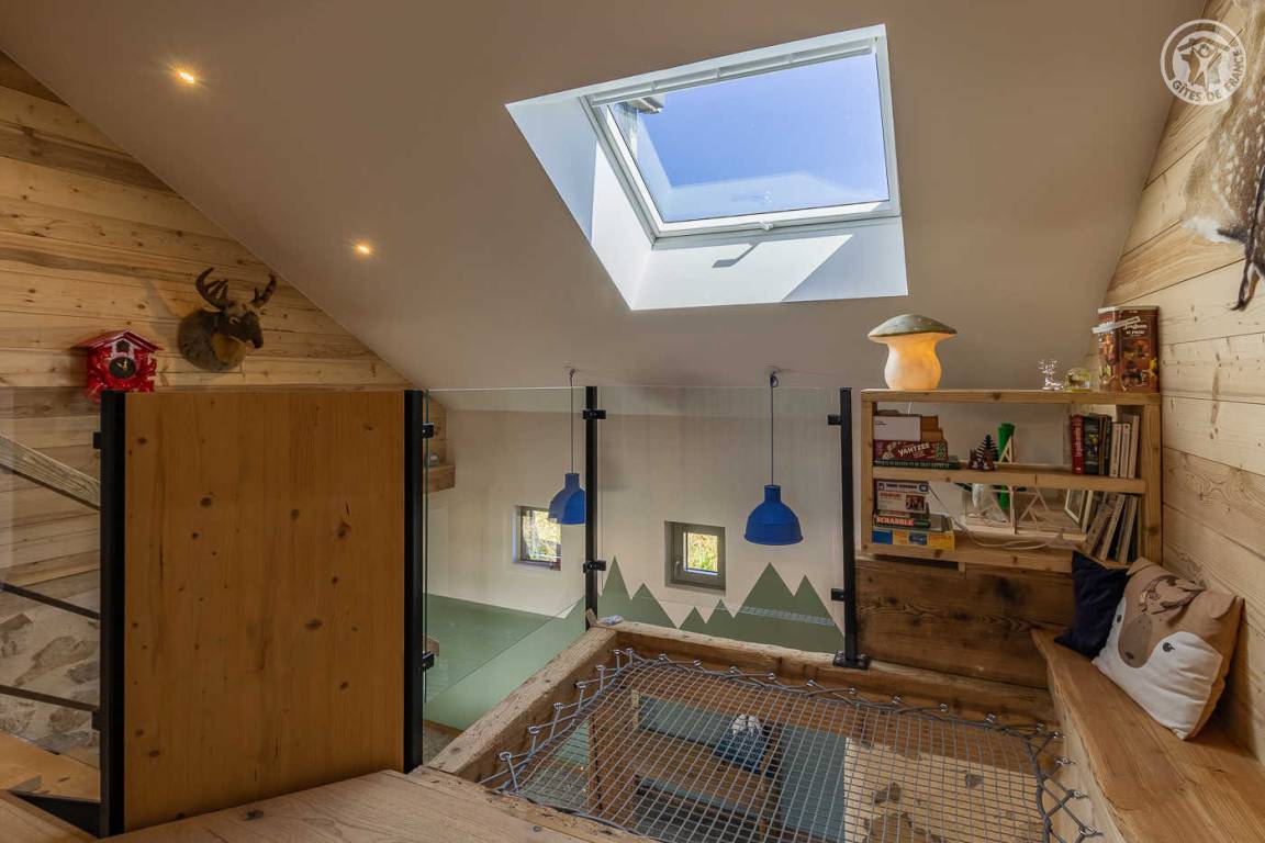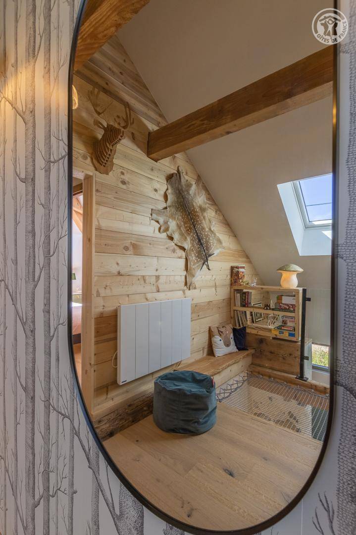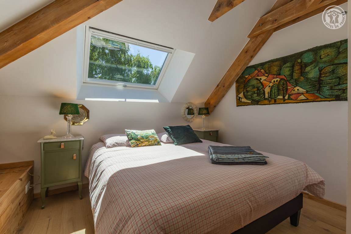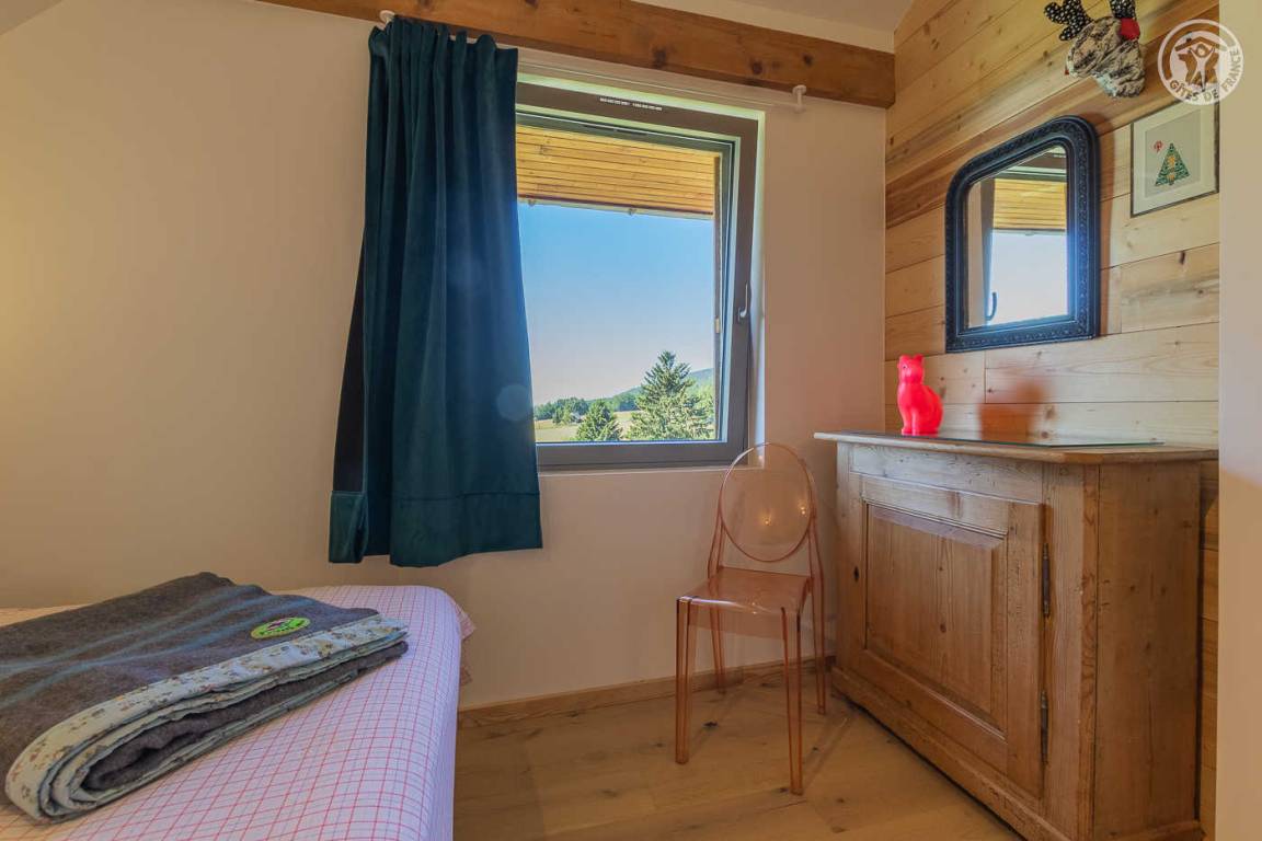 „L'accueil par Amandine a été super, avec plein de conseils de visites dans les environs du gîte. La vue est effectivement merveilleuse depuis le jardin. Le gîte est très bien équipé et très joliment décoré dans le thème de la montagne. Les lits sont très confortables et les 2 salles d'eau très appréciables quand on est nombreux. Selon notre expérience, la chambre avec les 2 lits simples n'est pas très confortables pour deux grands ado/jeunes adultes car le plafond est très bas et en pente sur la moitié de la chambre. Cette chambre serait plus adaptée pour des enfants encore assez petits en taille. Tout le reste était très bien.“