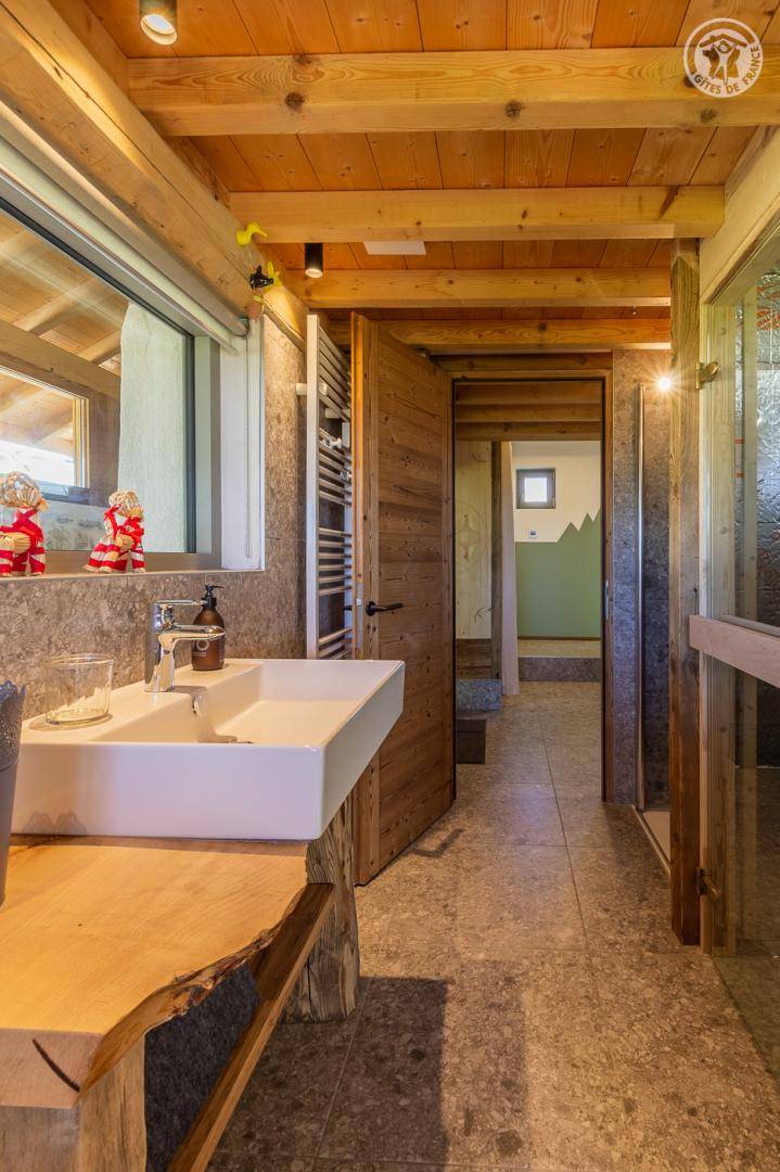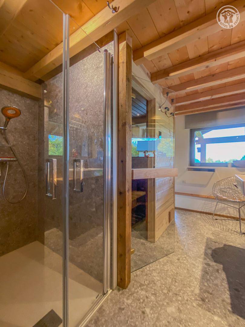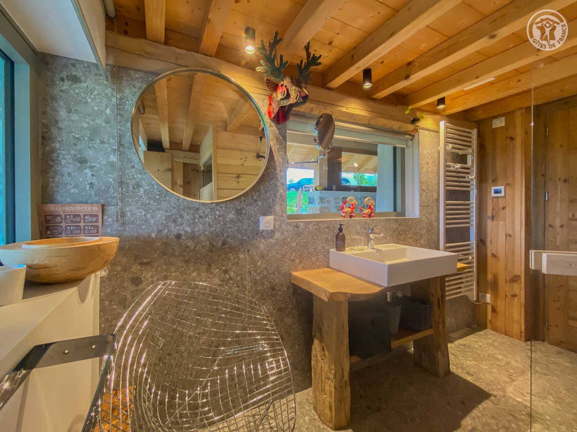„Très beau chalet, chaleureux, décoré avec très bon goût dans un environnement magnifique. Cerise sur le gâteau, le sauna avec vue. Tout était parfait, merci aux propriétaires !“