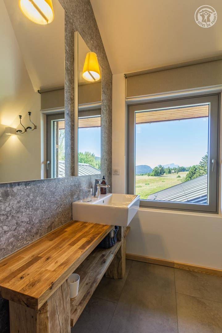 „Le gîte est isolé avec une très belle vue, mais pas trop éloigné des commerces de la vallée (il y a une supérette à la Féclaz qui dépanne bien avec des tarifs raisonnables). Nombreux chemins alentours pour tous les niveaux de VTT. Bien aménagé mais pas très grand ce qui nous allait bien (2 adultes et 2 grands enfants). Cuisine bien équipée mais four et micro-ondes positionnés très bas et plafond dans la cuisine à environ 190cm donc potentiellement compliqué pour les "claustrophobes" ou pour les personnes de grande taille. Gîtes à environ 1260m d’altitude donc même en plein mois de juillet il peut faire froid en journée donc penser à s’équiper (on a eu une journée à 12 degrés mais sinon c’était plutôt entre 20 et 22 degrés en journée soit 8 à 10 degrés de moins qu’à Aix Les Bains ou à Annecy ce qui nous arrangeait)“