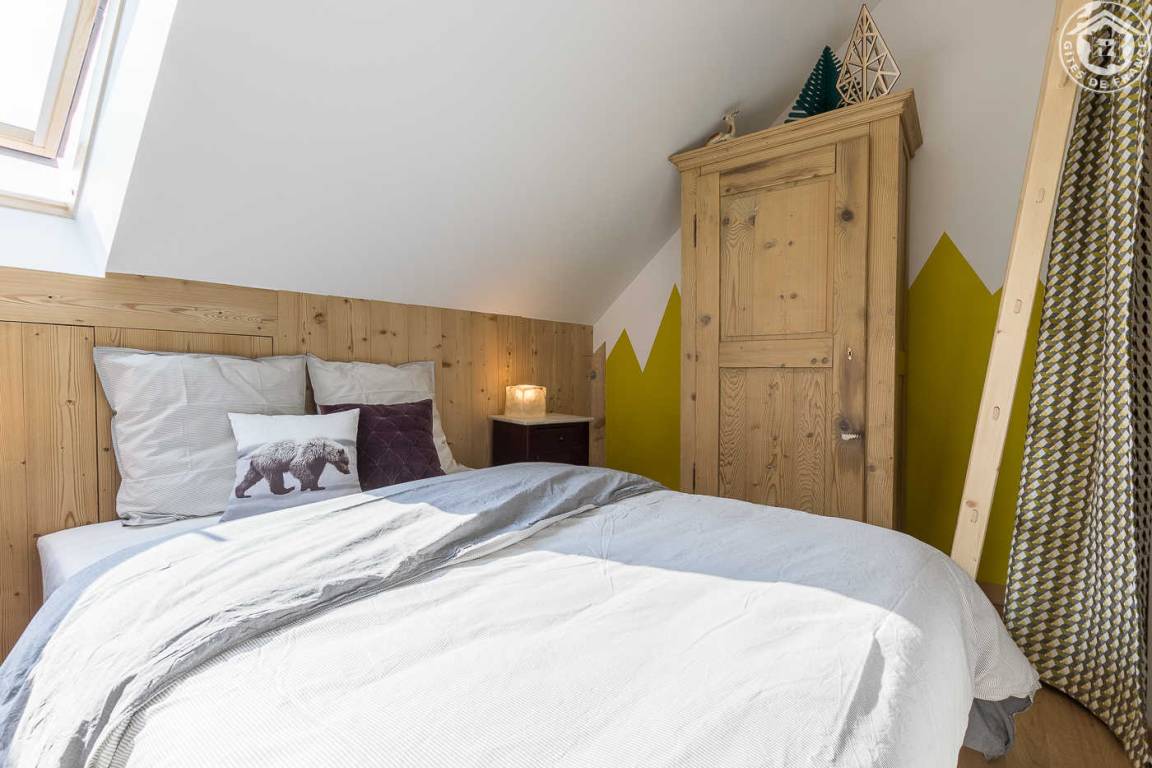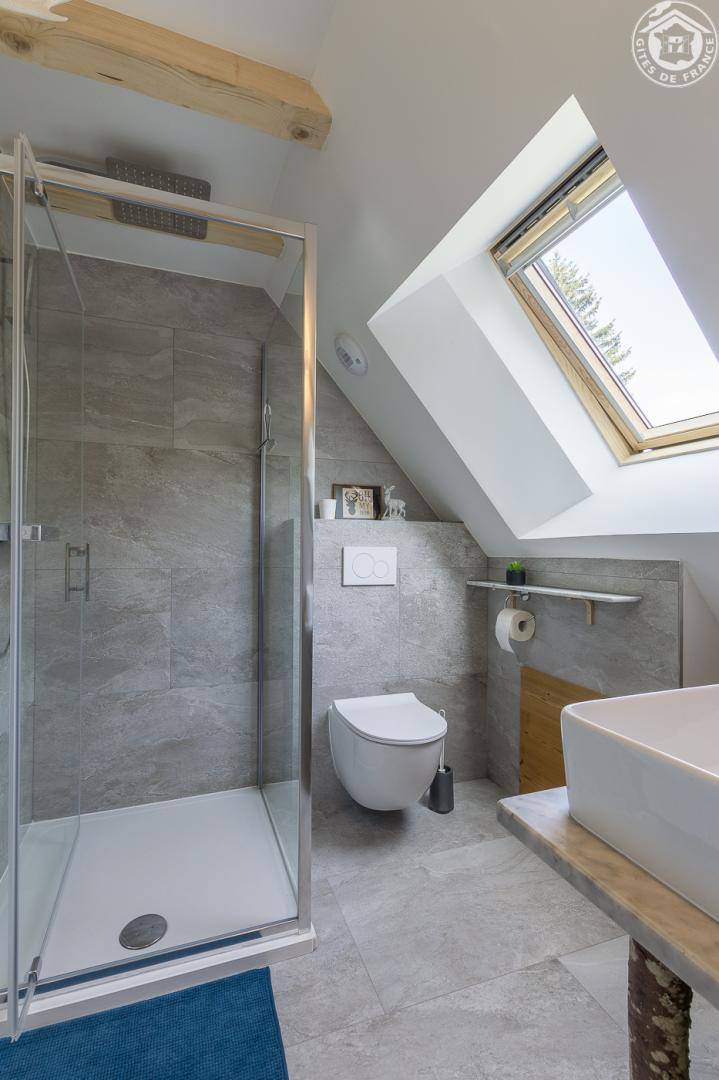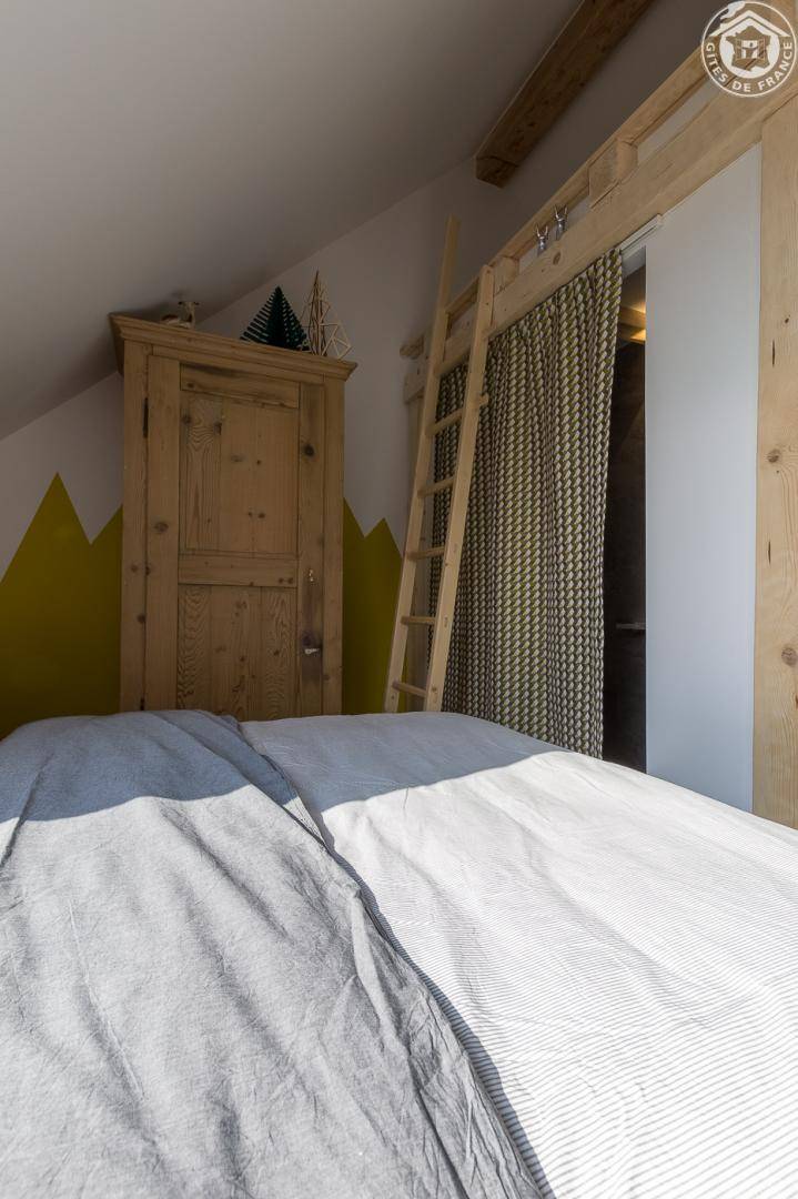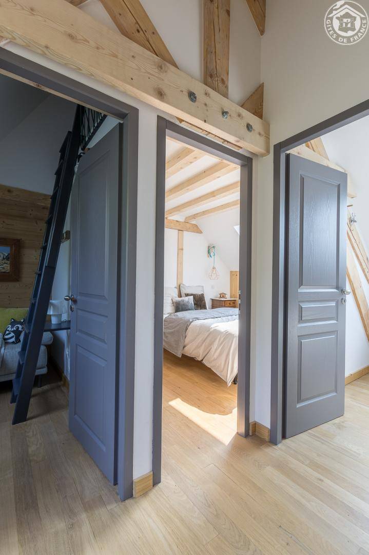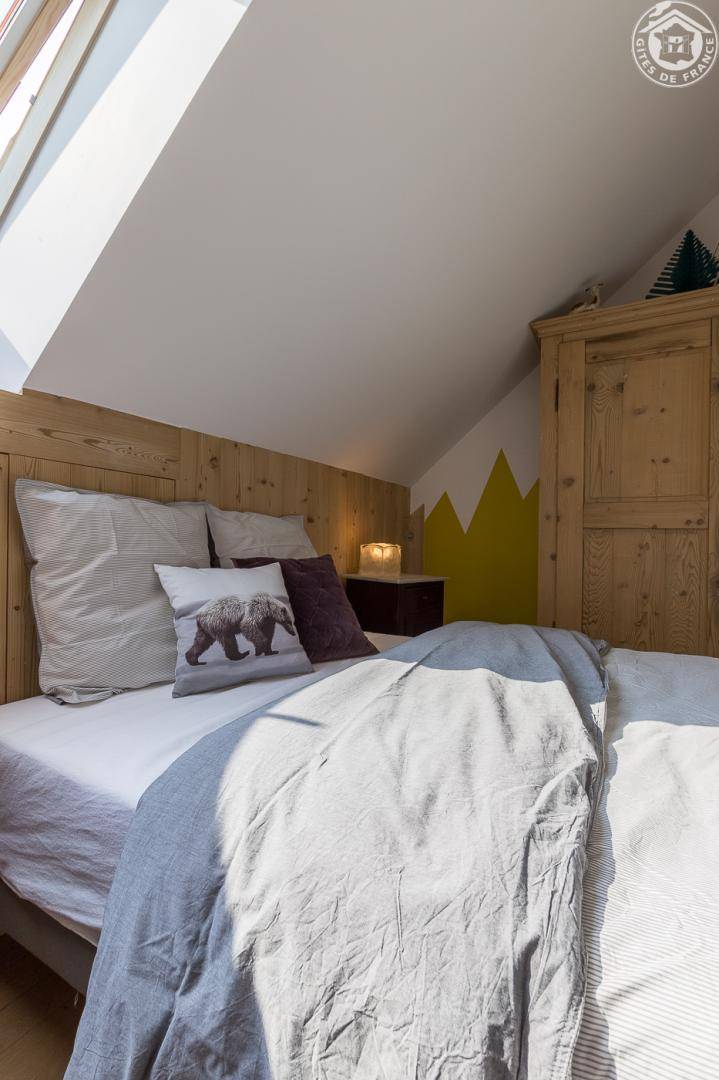 Gite in einem renovierten Landhaus, das an eine zweite Mietwohnung angrenzt. Erdgeschoss: Küche, Wohnzimmer und Lounge. Keller. 1.OG: 2 Schlafzimmer (2 Doppelbetten 140x190cm) davon ein Schlafzimmer mit eigenem Duschbad (Dusche + WC) und ein kleines Schlafzimmer mit Schlafbereich im Obergeschoss (1 Doppelbett 140x190cm) erreichbar über eine Müllerleiter. Duschraum (Dusche + WC). Vermietung von Laken und Haushaltswäsche. WIFI-Internetverbindung. Terrasse mit Grill + offenes Gelände. Abstellraum für Ski und Fahrräder. Private Parkplätze vor Ort.