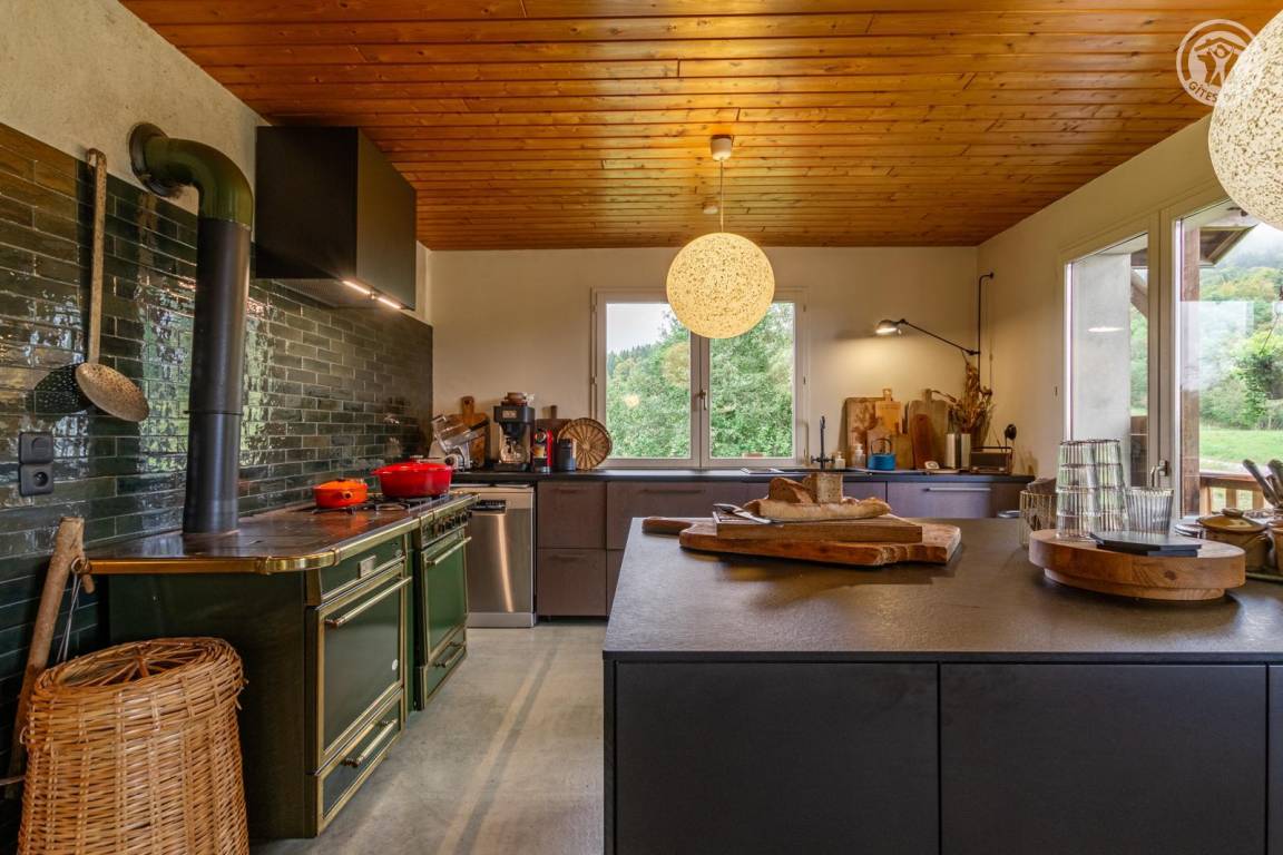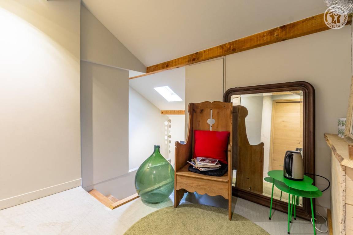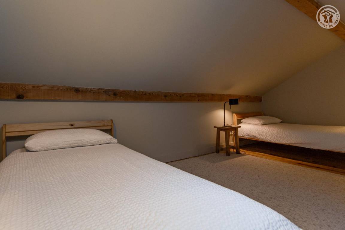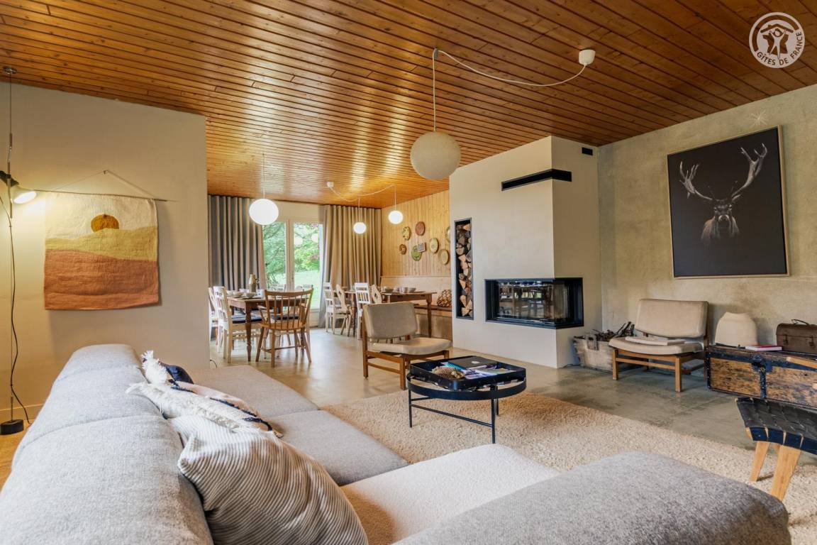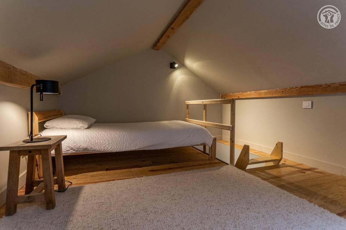 Großes, unabhängiges Chalet auf 3 Ebenen. Im Erdgeschoss: separate Toilette, Waschküche (Waschmaschine, Trockner). Im 1. Stock (Zugang über eine Außen- und Innentreppe): Wohnküche mit Zugang zur Terrasse und zum Garten, 1 Suite (1 Doppelbett 160x200 cm + 1 Schlafsofa 140x200 cm, 1 Badezimmer mit Badewanne und Dusche, WC getrennt) . Im 2. Stock: 1 Schlafzimmer mit Zwischengeschoss (1 Doppelbett 160x200 cm + 2 Einzelbetten 90x190 cm mit einer Höhe von weniger als 1,80 m) mit Badezimmer (Dusche + WC) und 1 Schlafzimmer (1 Doppelbett 160x200 cm + 2 Etagenbetten). (90x190 cm) mit Badezimmer (Dusche) und separater Toilette. 1 Suite bestehend aus 2 Schlafzimmern (3 Einzelbetten 90x200 cm + 1 Doppelbett 160x200 cm), Badezimmer (Dusche), separater Toilette und Wohnzimmer. Norwegisches Bad im Garten und Kohlenbecken auf der Terrasse. Ski- und Fahrradkeller. Privatparkplatz (5 Autos).