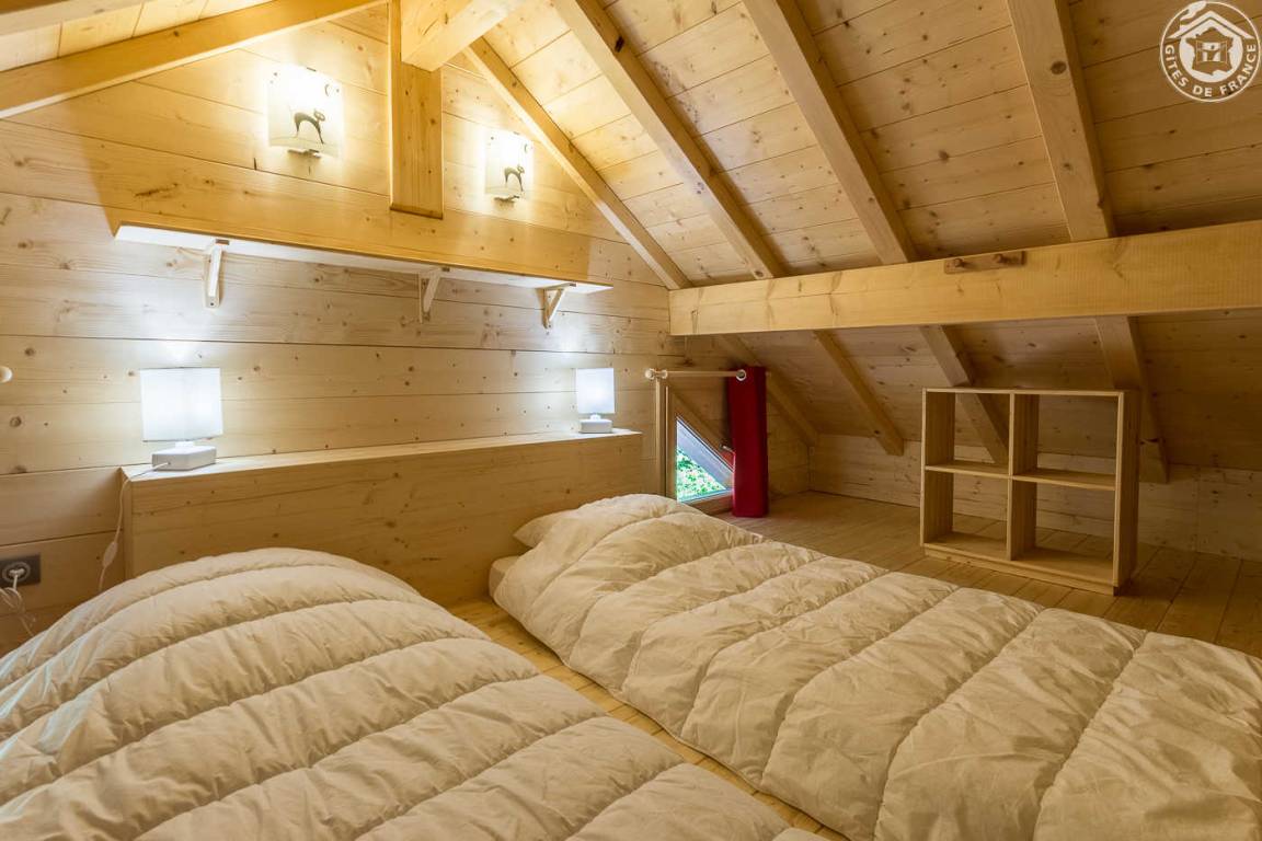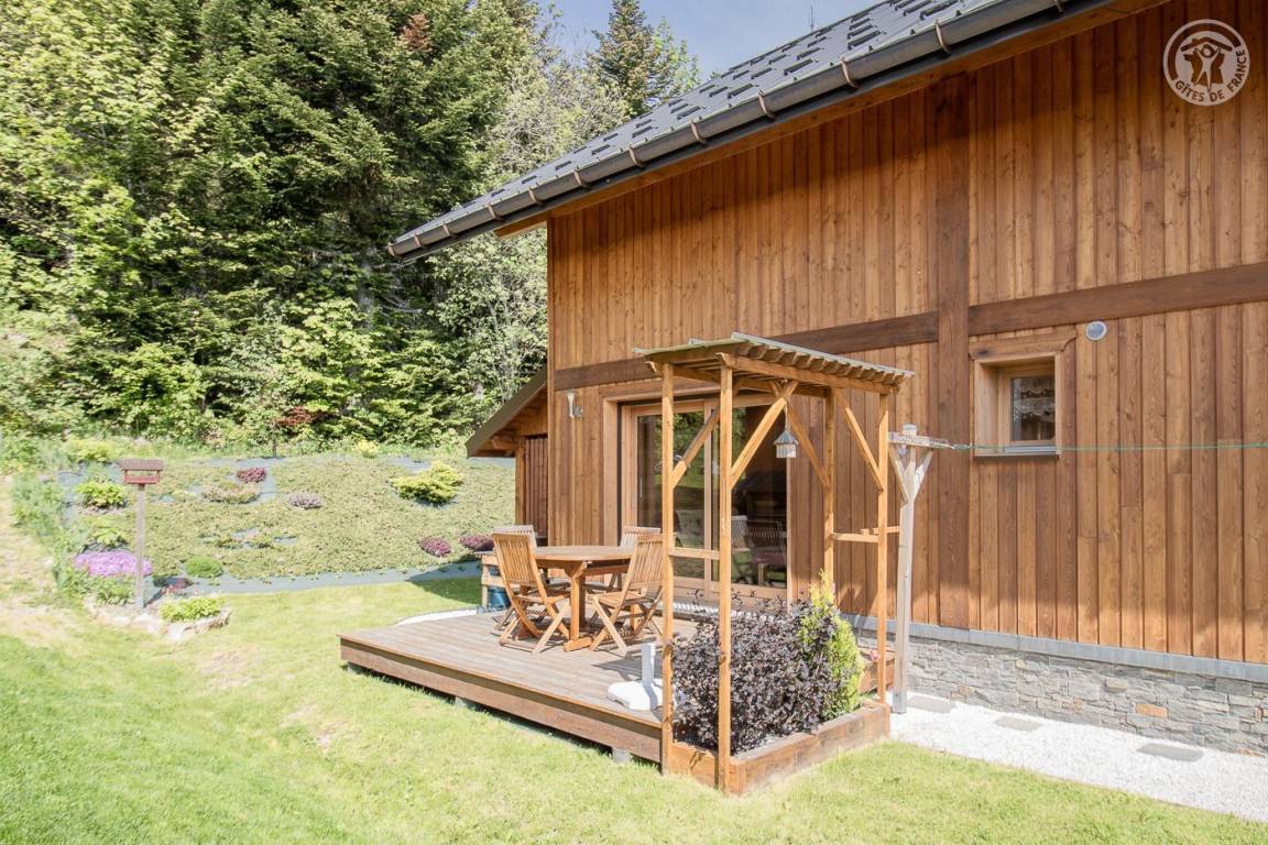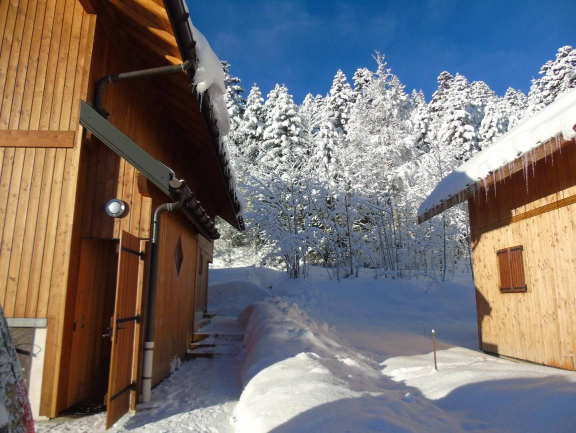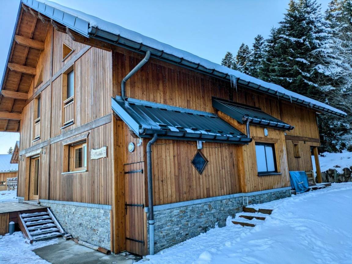 Ferienwohnung im Ferienchalet der Besitzer. Gite auf der Rückseite des Chalets, auf 3 Ebenen mit unabhängigem Zugang. Erdgeschoss: Wohnzimmer-Küche mit Sitzecke, Wifi-Anschluss, WC mit Waschbecken. 1. Stock: 2 Schlafzimmer (1 Doppelbett 160 x 200 cm / 2 Einzelbetten 90 x 200 cm), Duschbad (Walk-in-Dusche), separates WC. Dachschräge ausgebaut mit 2 Dachfenstern (2 Einzelbetten 90 x 200 cm). Gesamtwohnfläche: 74 m² Dachgeschoss inklusive. Terrasse und Grundstück. Skipisten in 200 m Entfernung (Rückkehr auf den Skiern zum Chalet nach Schneefall). Langlaufen vor Ort. Fahrradraum.