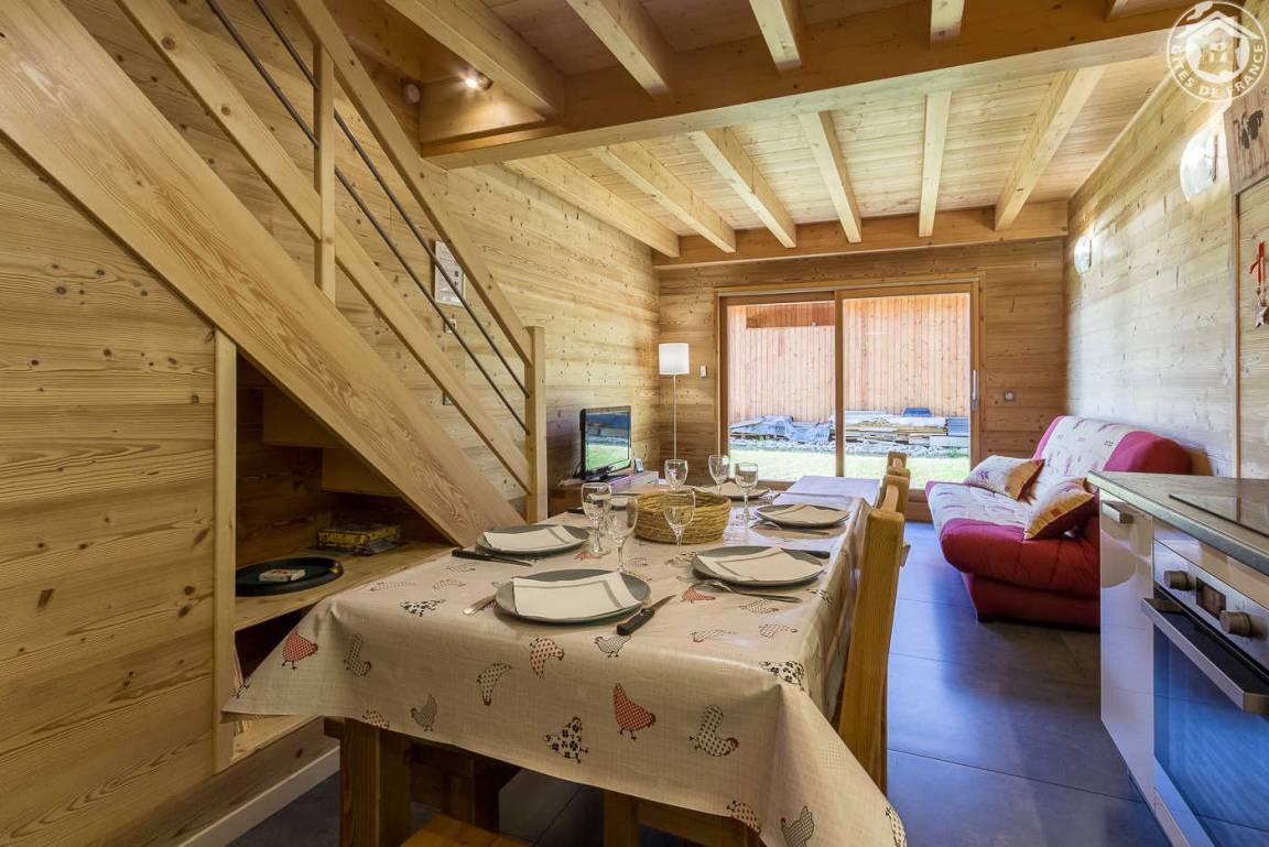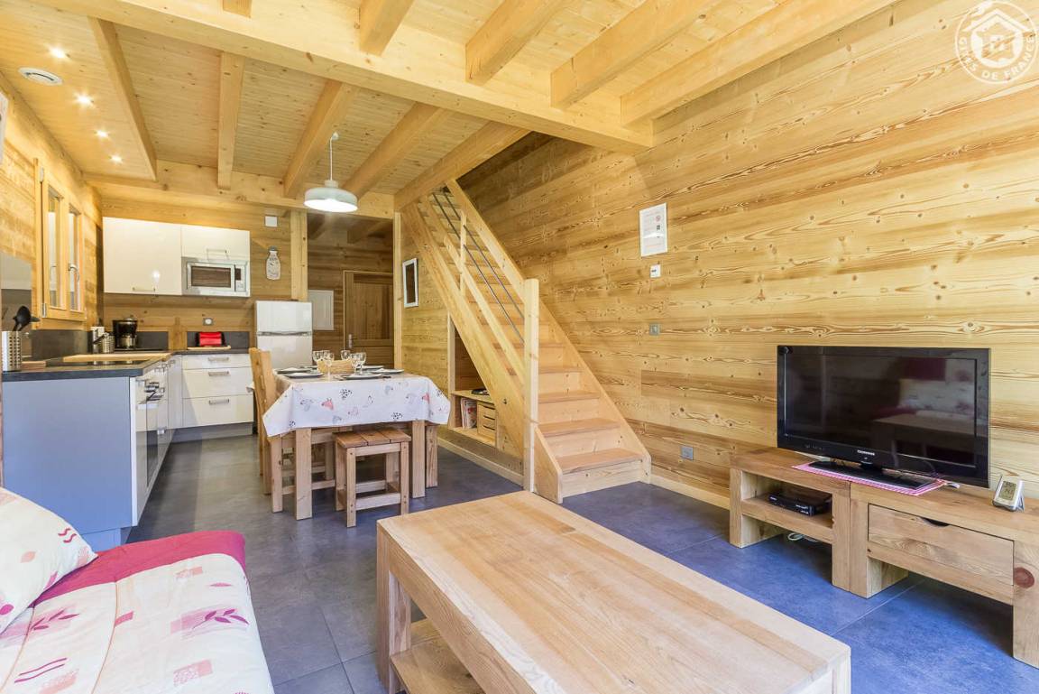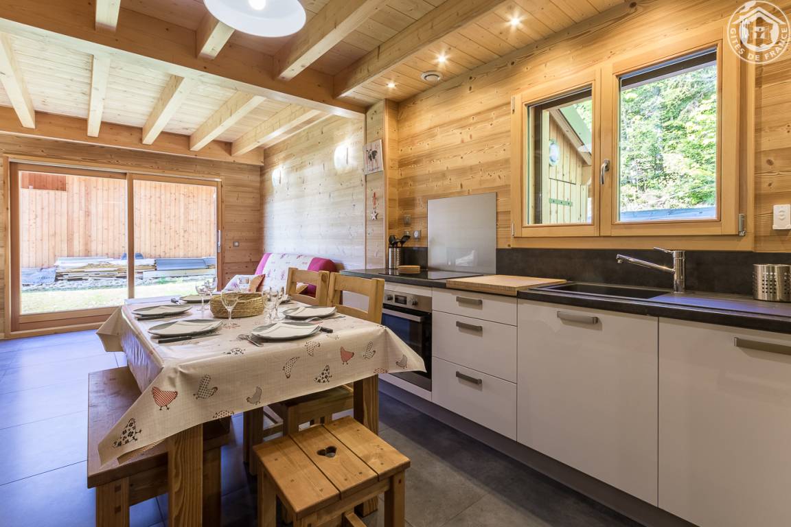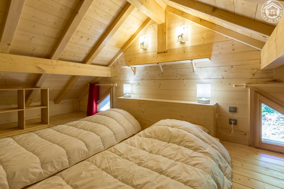Ferienwohnung im Ferienchalet der Besitzer. Gite auf der Rückseite des Chalets, auf 3 Ebenen mit unabhängigem Zugang. Erdgeschoss: Wohnzimmer-Küche mit Sitzecke, Wifi-Anschluss, WC mit Waschbecken. 1. Stock: 2 Schlafzimmer (1 Doppelbett 160 x 200 cm / 2 Einzelbetten 90 x 200 cm), Duschbad (Walk-in-Dusche), separates WC. Dachschräge ausgebaut mit 2 Dachfenstern (2 Einzelbetten 90 x 200 cm). Gesamtwohnfläche: 74 m² Dachgeschoss inklusive. Terrasse und Grundstück. Skipisten in 200 m Entfernung (Rückkehr auf den Skiern zum Chalet nach Schneefall). Langlaufen vor Ort. Fahrradraum.