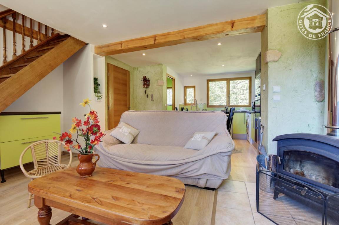 Ferienhaus im Haus des Eigentümers (Zugang über eine Außentreppe mit mehreren Steinstufen). Erdgeschoss: Wohnzimmer-Küche mit Sitzecke, Badezimmer (Dusche), Waschmaschine, CPL-Internetanschluss. 1. Stock: 1 Schlafzimmer (2 Einzelbetten), Mezzanine (1 Doppelbett) und WC. Gemeinsamer Gefrierschrank im Wachsraum. Rasenterrasse und Kiesterrasse. Eingezäuntes Gelände gemeinsam mit Plancha. Ski- und Wachsraum. Skifahren vor Ort (Skilift + Snowpark auf 50m). Schneeschuhe vor Ort. Langlaufloipen 2km. Ausgestatteter See 15 km entfernt.