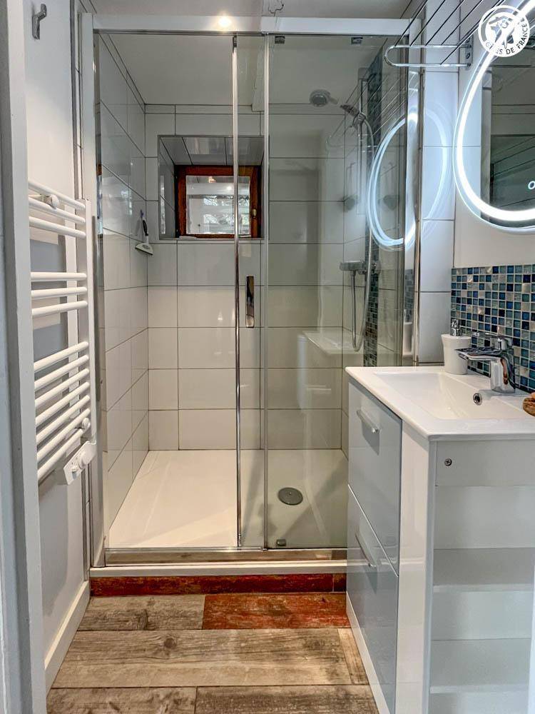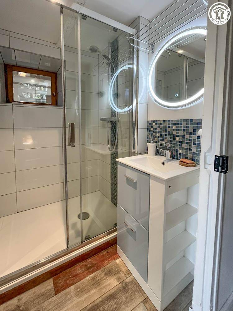„Très bon accueil. Logement propre, bien équipé (électroménagers, ustensiles de cuisine et vaisselle ) et bien décoré. Environnement calme. Le matelas du lit et le canapé sont un peu fatigués. La douche est de bonne taille mais la salle de bain est rikiki. Faire une flambée dans le poêle à bois est un vrai plus (un détecteur de monoxyde de carbone serait le bienvenu).“