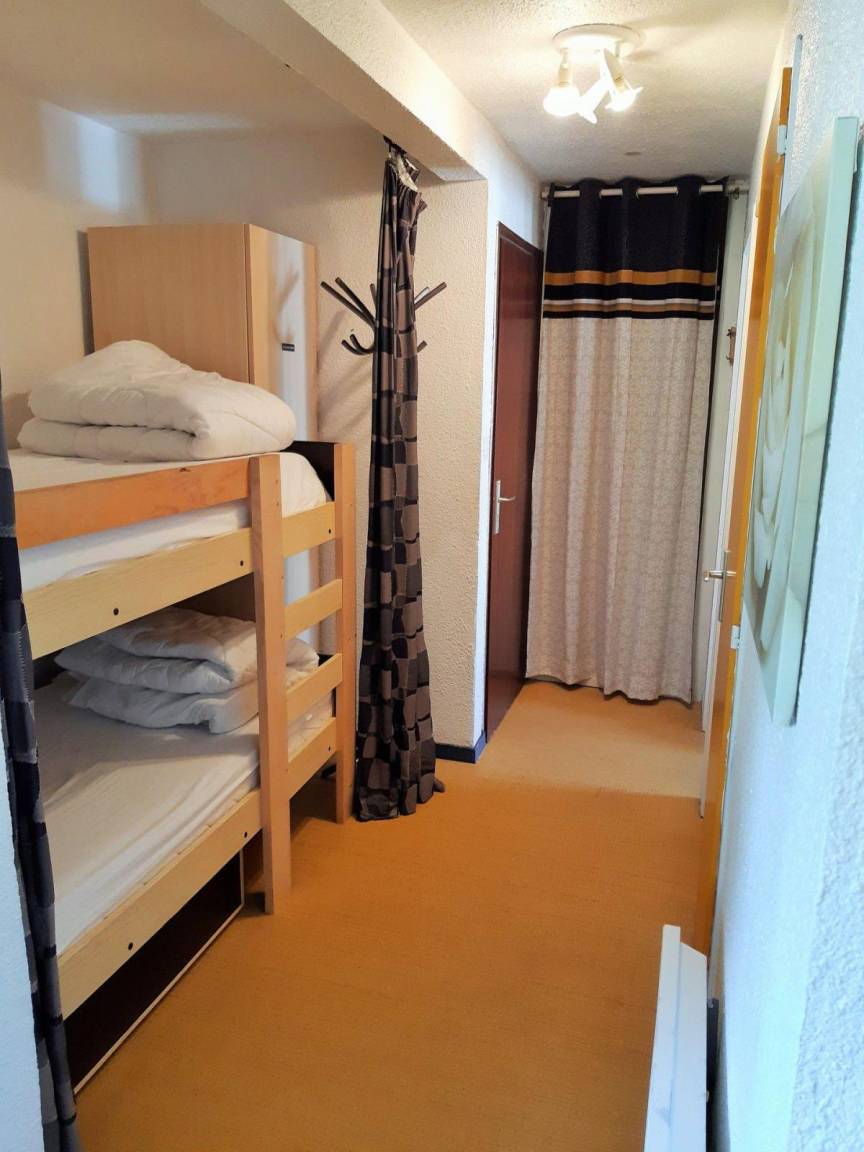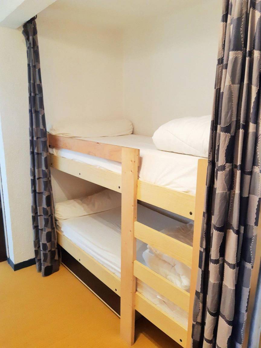 Fläche von ungefähr 40 m². 4te Etage. Orientierung : Süd. Blick berg und Skipisten. Wohnzimmer mit Klappschlafcouch (140*190). Schlafzimmer mit Doppelbett (140*190). offener Schlafbereich mit 2 Stockbetten (90*190). Kochnische mit Fonduegerät, Wasserkocher, Kaffeemaschine, kleiner Backofen mit Mikrowellenfunktion, Toaster, Geschirrspülmaschine, Glaskeramikkochfelder, Kühlschrank. separates WC. Waschräume. Balkon. Die oberen Betten sind nicht für Kinder unter 6 Jahren geeignet.