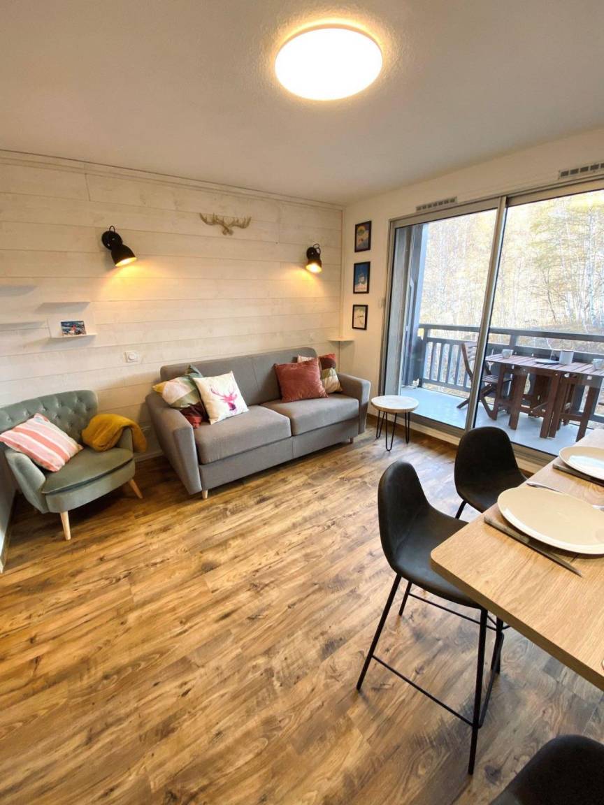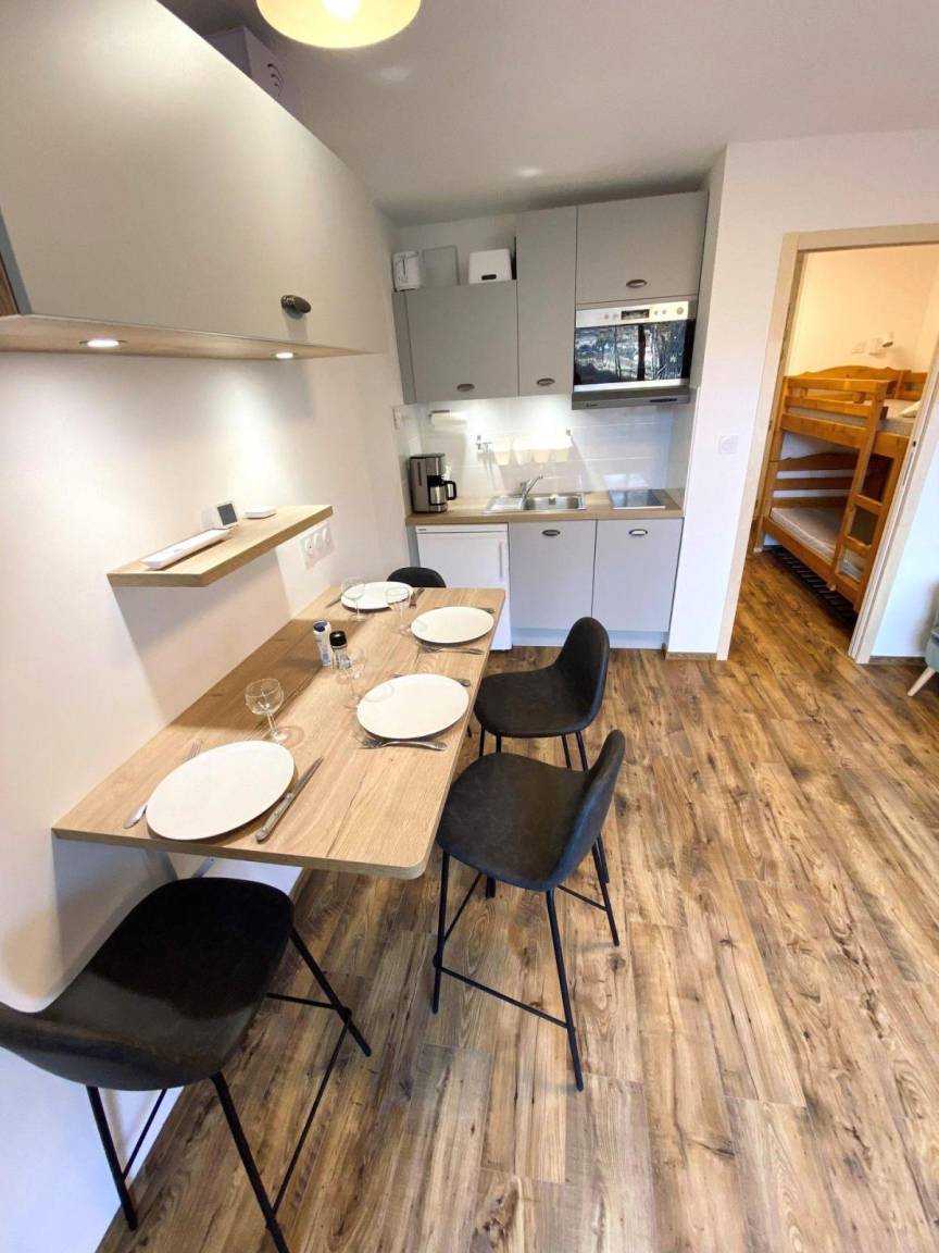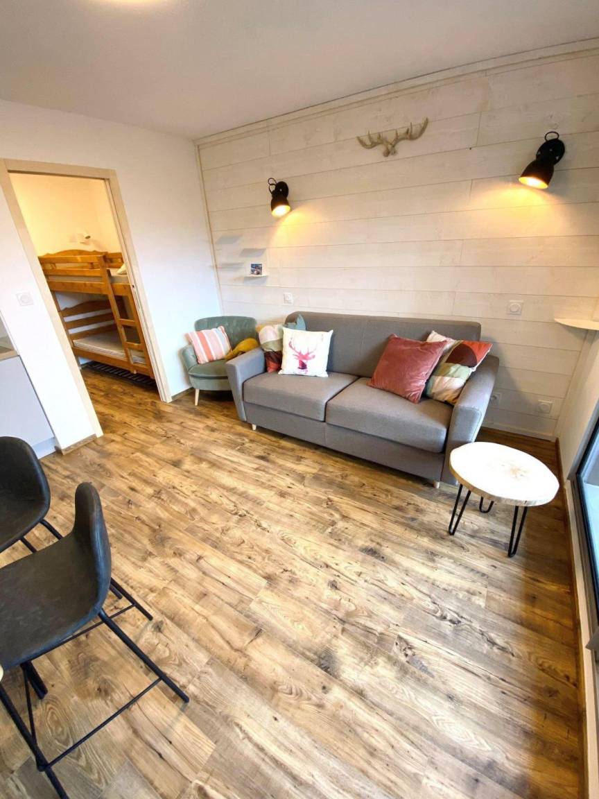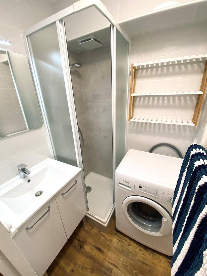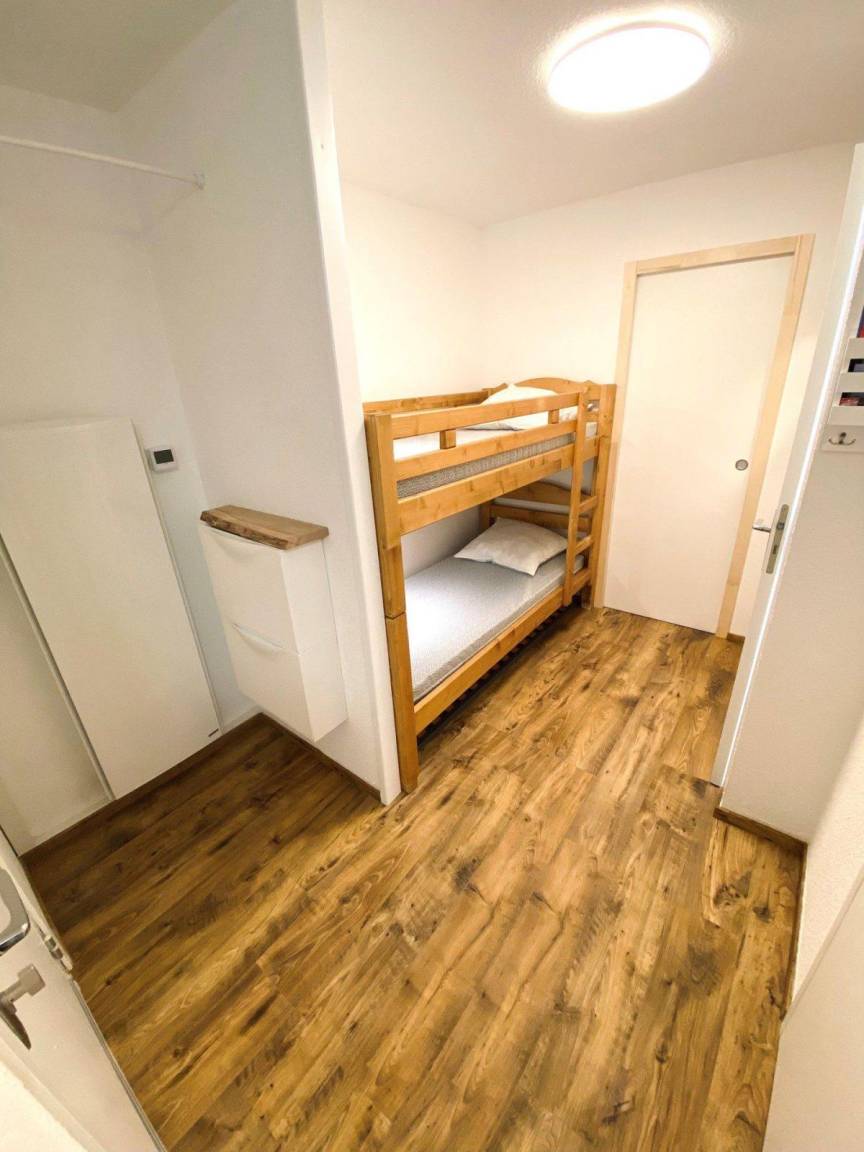 Fläche von ungefähr 26 m² enthält 1 m² unter 1,80 m. 2te Etage. Orientierung : Süd. Wohnzimmer mit Klappschlafcouch. offener Schlafbereich mit 2 Stockbetten. Kochnische mit Wasserkocher, Kaffeemaschine, kleiner Backofen mit Mikrowellenfunktion, Toaster, Geschirrspülmaschine, Mikrowellenherd, 2 Glaskeramikkochfelder, Kühlschrank. separates WC. Waschräume mit Dusche, Waschmaschine. Balkon. Die oberen Betten sind nicht für Kinder unter 6 Jahren geeignet.