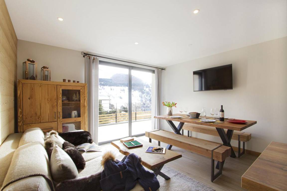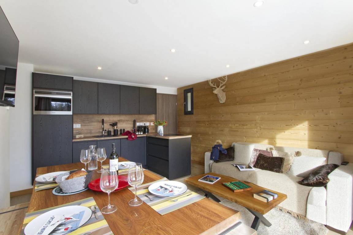 Fläche von ungefähr 42 m². 2te Etage. Orientierung : Ost, Süd. Blick berg (Glacier de la Muzelle). Wohnzimmer. Schlafzimmer mit Doppelbett (140). offener Schlafbereich mit 2 Stockbetten (90). Kochnische mit Geschirrspülmaschine, Mikrowellenherd, Herdplatten, Kühlschrank. Waschräume mit Dusche, Bügelbrett und Bügeleisen, WC. Balkon. Terrasse ab 12.00 m². Die oberen Betten sind nicht für Kinder unter 6 Jahren geeignet.