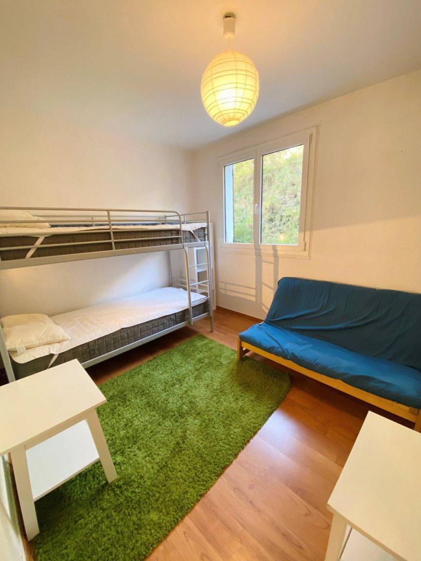 Fläche von ungefähr 60 m². 2te Etage. Orientierung : Ost, Süd. Blick berg. Wohnzimmer mit Klappschlafcouch. Schlafzimmer mit Doppelbett (160x200). Schlafzimmer mit 2 Stockbetten. Kochnische mit Wasserkocher, Kaffeemaschine, Backofen, Toaster, Geschirrspülmaschine, Mikrowellenherd, 3 elektronische Herdplatten, Kühlschrank. Waschräume mit Dusche. separates WC. Balkon. Die oberen Betten sind nicht für Kinder unter 6 Jahren geeignet.