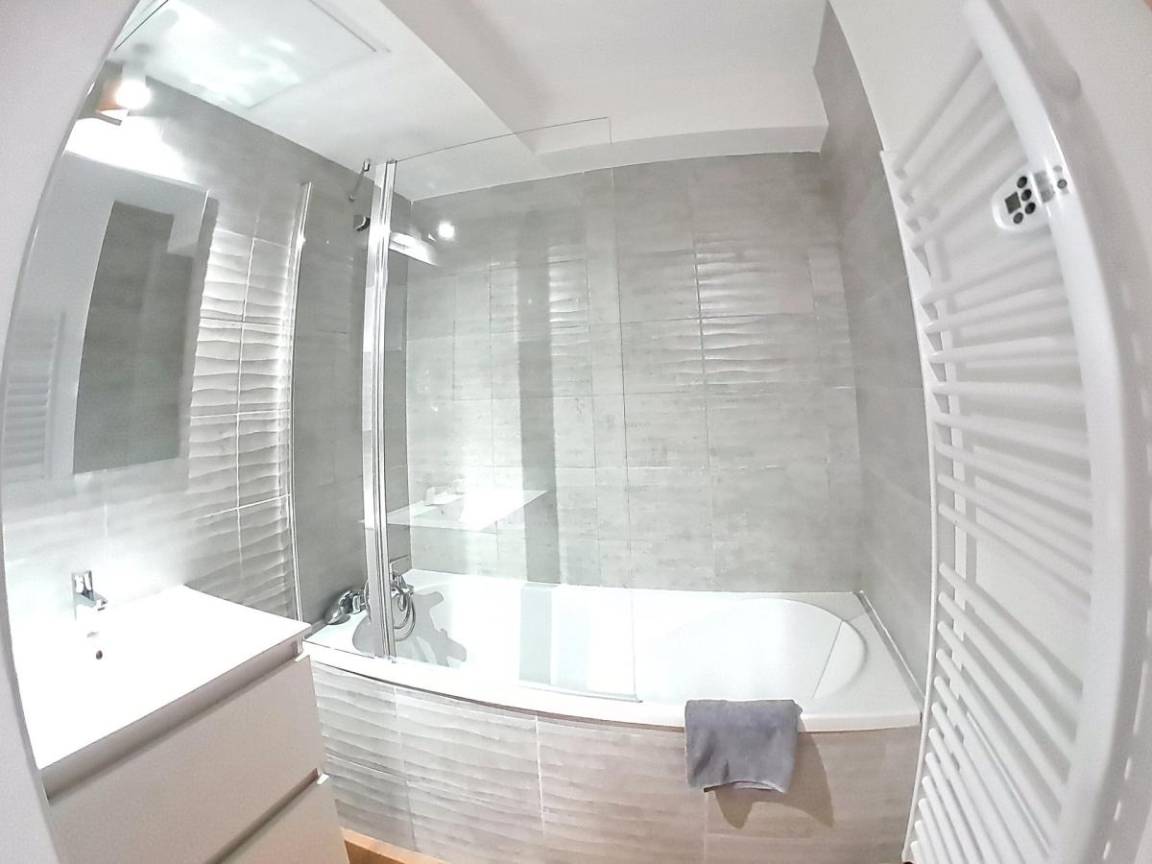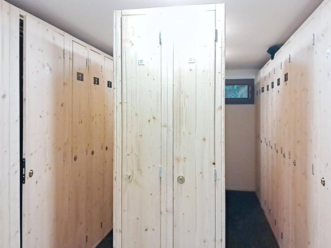 Fläche von ungefähr 106 m². 1te Etage. Orientierung : Süd. Niveau 0 : Wohnzimmer mit , Sofa, TV. Schlafzimmer mit Doppelbett (140*200). Schlafzimmer mit Doppelbett (160*200). Küche mit , Fonduegerät, Wasserkocher, Kaffeemaschine (senseo), Backofen, Toaster, Geschirrspülmaschine, Mikrowellenherd, Mixer, 2 Induktionsherdplatten, Kühl-Gefrier-Kombination. Badezimmer mit Waschmaschine, WC. WC. Balkon ab 32.00 m². Niveau -1 : Schlafzimmer mit 2 Einzelbetten (90*190). Schlafzimmer mit 4 Stockbetten (90*190). Badezimmer mit , WC. Waschräume mit WC. Die oberen Betten sind nicht für Kinder unter 6 Jahren geeignet.