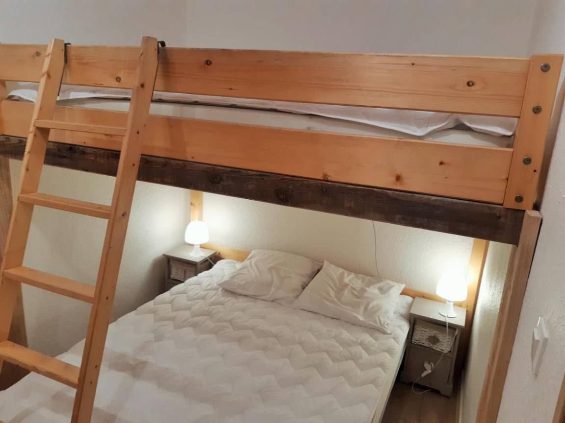 Fläche von ungefähr 38 m². 2te Etage. Orientierung : Ost. Wohnzimmer mit BZ-Sofas. offener Schlafbereich mit 2 Stockbetten. Kochnische mit Fonduegerät, Raclettegerät, Wasserkocher, Kaffeemaschine, Backofen, Toaster, Geschirrspülmaschine, Mikrowellenherd, 2 Glaskeramikkochfelder, Kühl-Gefrier-Kombination. Waschräume mit Dusche. separates WC. Balkon. Die oberen Betten sind nicht für Kinder unter 6 Jahren geeignet.