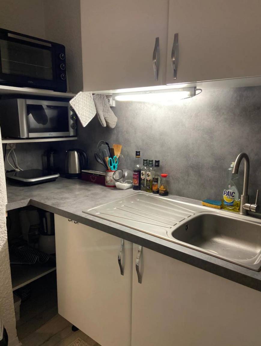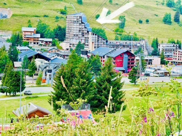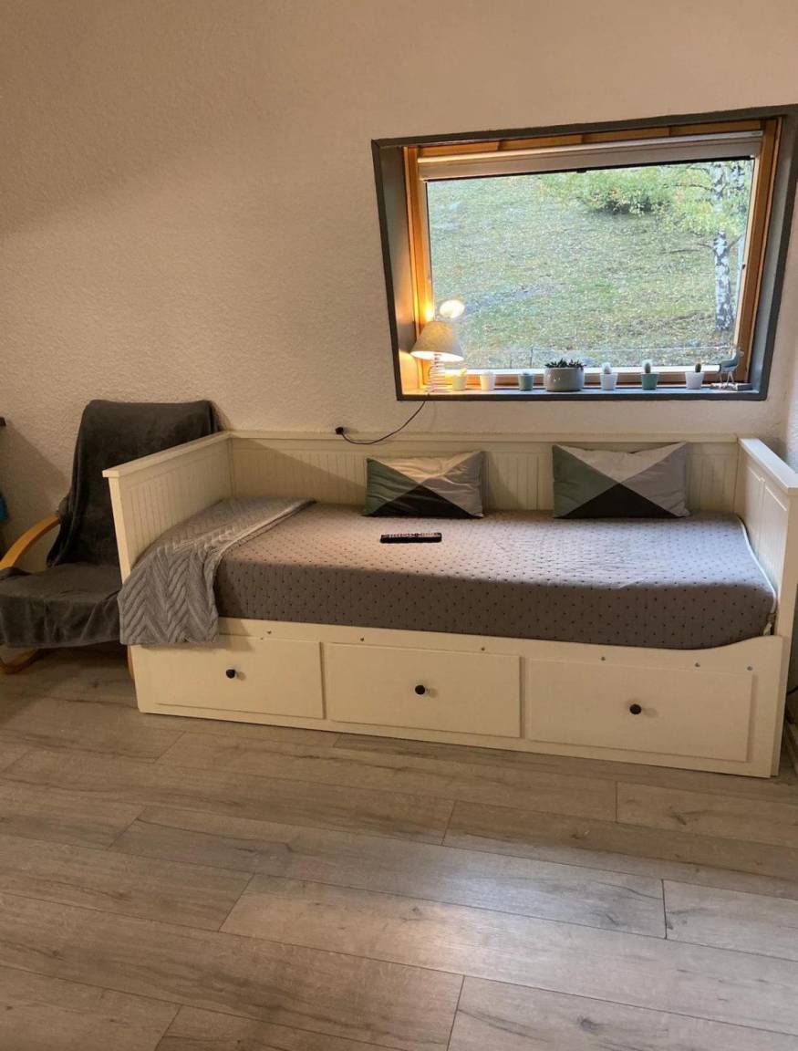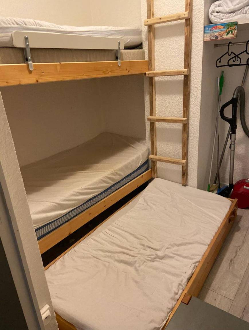 Fläche von ungefähr 22 m². 3te Etage. Orientierung : West. Wohnzimmer mit Ausziehschlafcouch für 2 Personen. offener Schlafbereich mit 2 Stockbetten. Kochnische mit Fonduegerät, Raclettegerät, Wasserkocher, Kaffeemaschine, Toaster, Mikrowellenherd, kleiner Backofen, 2 elektronische Herdplatten, Kühlschrank. Waschräume mit Dusche, WC. Die oberen Betten sind nicht für Kinder unter 6 Jahren geeignet.