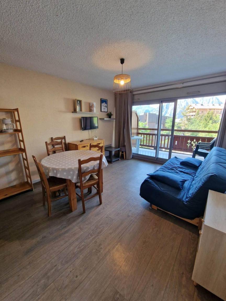 Fläche von ungefähr 30 m². 4te Etage. Orientierung : Süd. Blick berg. Wohnzimmer mit Klappschlafcouch (130*190). offener Schlafbereich mit 2 Stockbetten (80*190). Kochnische mit Raclettegerät, Wasserkocher, Kaffeemaschine, Backofen, Toaster, Geschirrspülmaschine, Mikrowellenherd, 4 elektronische Herdplatten, Kühlschrank. separates WC. Badezimmer mit Badewanne. Balkon. Die oberen Betten sind nicht für Kinder unter 6 Jahren geeignet.