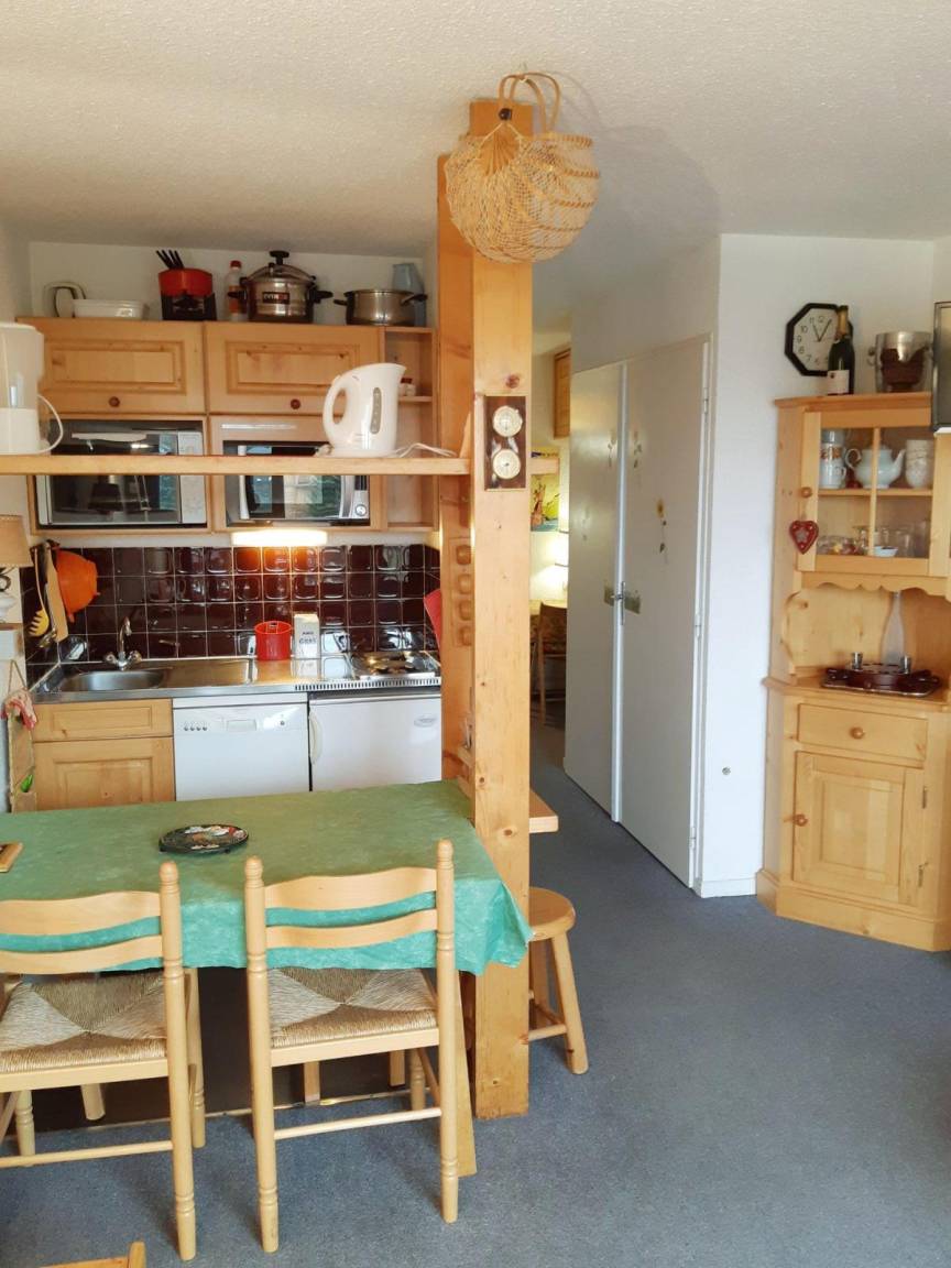 Fläche von ungefähr 29 m². 4te Etage. Orientierung : Süd. Blick berg und Skipisten. Wohnzimmer mit Klappschlafcouch (120*190). offener Schlafbereich mit 2 Stockbetten (80*190). Kochnische mit Fonduegerät, Wasserkocher, Kaffeemaschine, Backofen, Toaster, Geschirrspülmaschine, Mikrowellenherd, 2 elektronische Herdplatten, Kühlschrank. Badezimmer mit Badewanne. separates WC. Balkon. Die oberen Betten sind nicht für Kinder unter 6 Jahren geeignet.