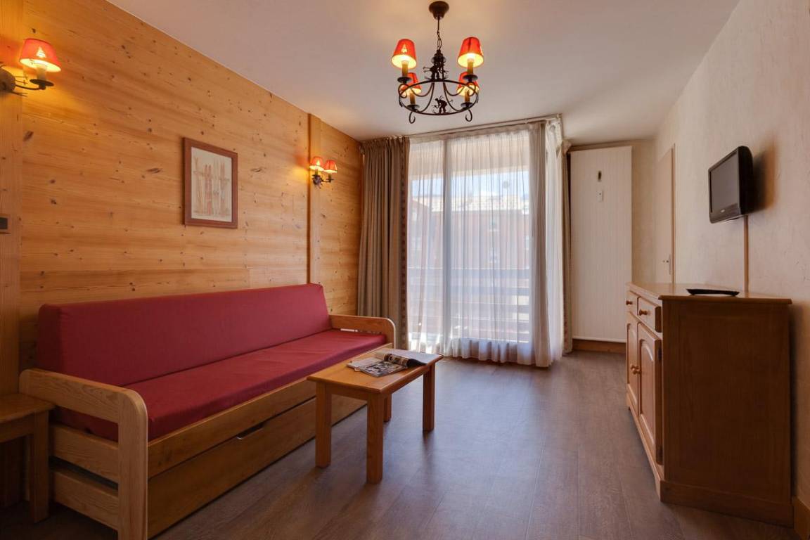 Fläche von ungefähr 52 m². Wohnzimmer mit Ausziehschlafcouch für 2 Personen. Schlafzimmer mit Doppelbett. offener Schlafbereich mit 2 Stockbetten. Schlafzimmer mit 2 Einzelbetten. Küche mit Kaffeemaschine, Mikrowellengrill oder Mikrowellenherd, Toaster, Dunstabzugshaube, Geschirrspülmaschine, Glaskeramikkochfelder, Kühlschrank. Badezimmer mit Badewanne. separates WC. Balkon. Die oberen Betten sind nicht für Kinder unter 6 Jahren geeignet.