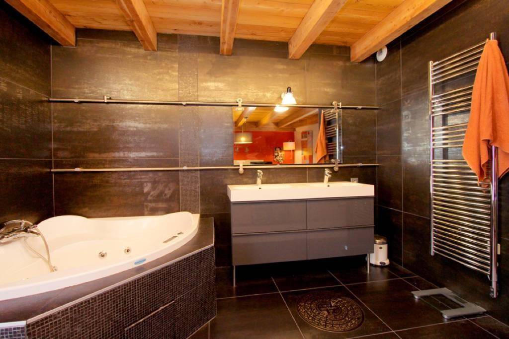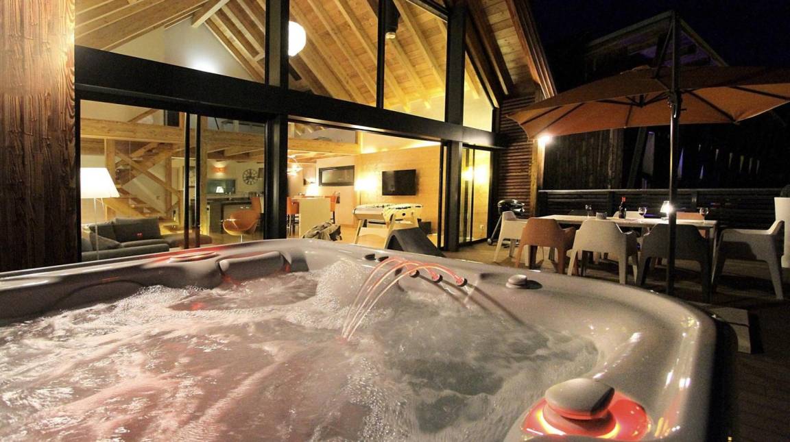 Fläche von ungefähr 250 m². Niveau 0 : Wohnzimmer mit Sofa. Schlafzimmer mit Doppelbett. Schlafzimmer mit Klappschlafcouch, Doppelbett, Badezimmer, WC. Schlafzimmer mit 2 Betten. Küche mit Raclettekochgeräte, Kaffeemaschine, Backofen, Toaster, Dunstabzugshaube, Mikrowellenherd, 2 Induktionsherdplatten, Kühl-Gefrier-Kombination. Waschküche mit Waschmaschine, Wäschetrockner. Niveau 1 : Schlafzimmer mit Doppelbett, Badezimmer. separates WC. Niveau 2 : Zwischengeschoss mit Billard. Schlafzimmer mit Doppelbett, Badezimmer, WC. Terrasse mit Whirlpool, Gartentisch und -stühle.