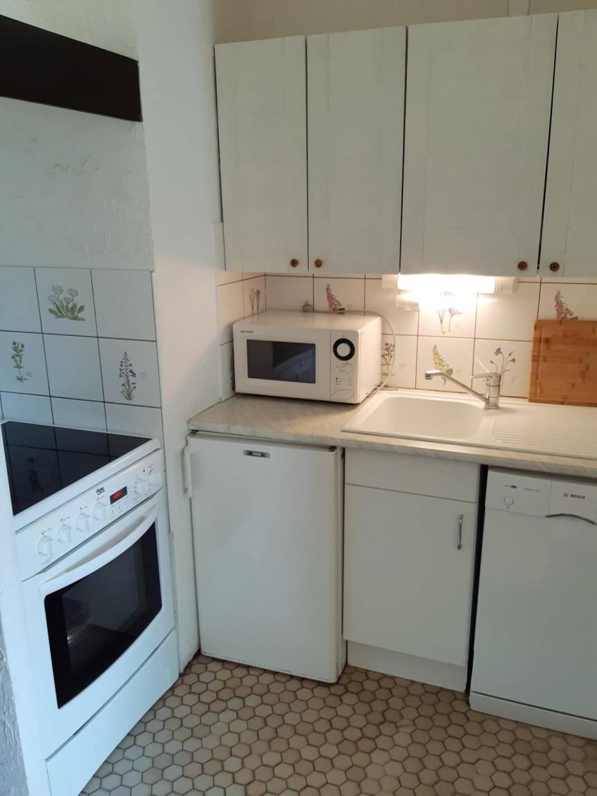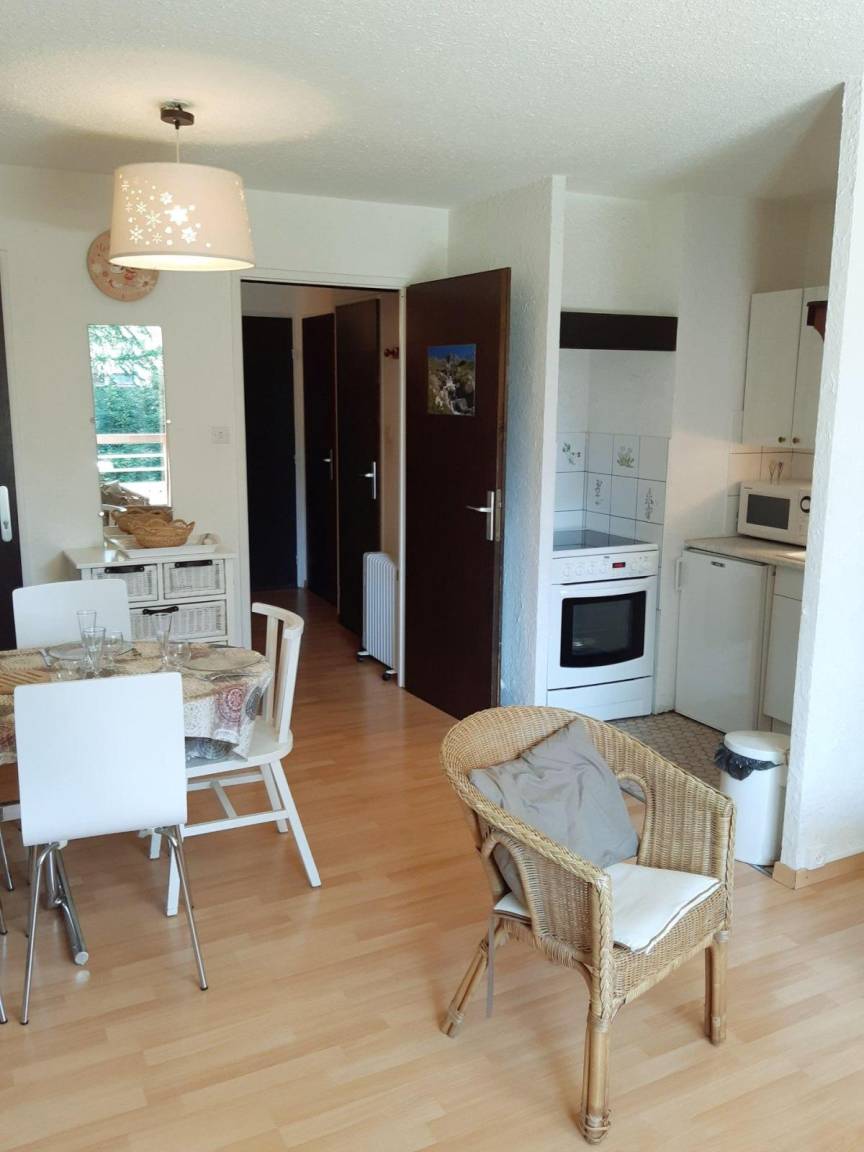 Fläche von ungefähr 30 m². 2te Etage. Orientierung : Süd. Blick skipisten. Wohnzimmer mit Klappschlafcouch. offener Schlafbereich mit 2 Stockbetten. Kochnische mit Wasserkocher, Kaffeemaschine, Backofen, Toaster, Geschirrspülmaschine, Mikrowellenherd, elektronische Herdplatten, Kühlschrank. separates WC. Badezimmer mit Badewanne, Waschmaschine. Balkon. Die oberen Betten sind nicht für Kinder unter 6 Jahren geeignet.