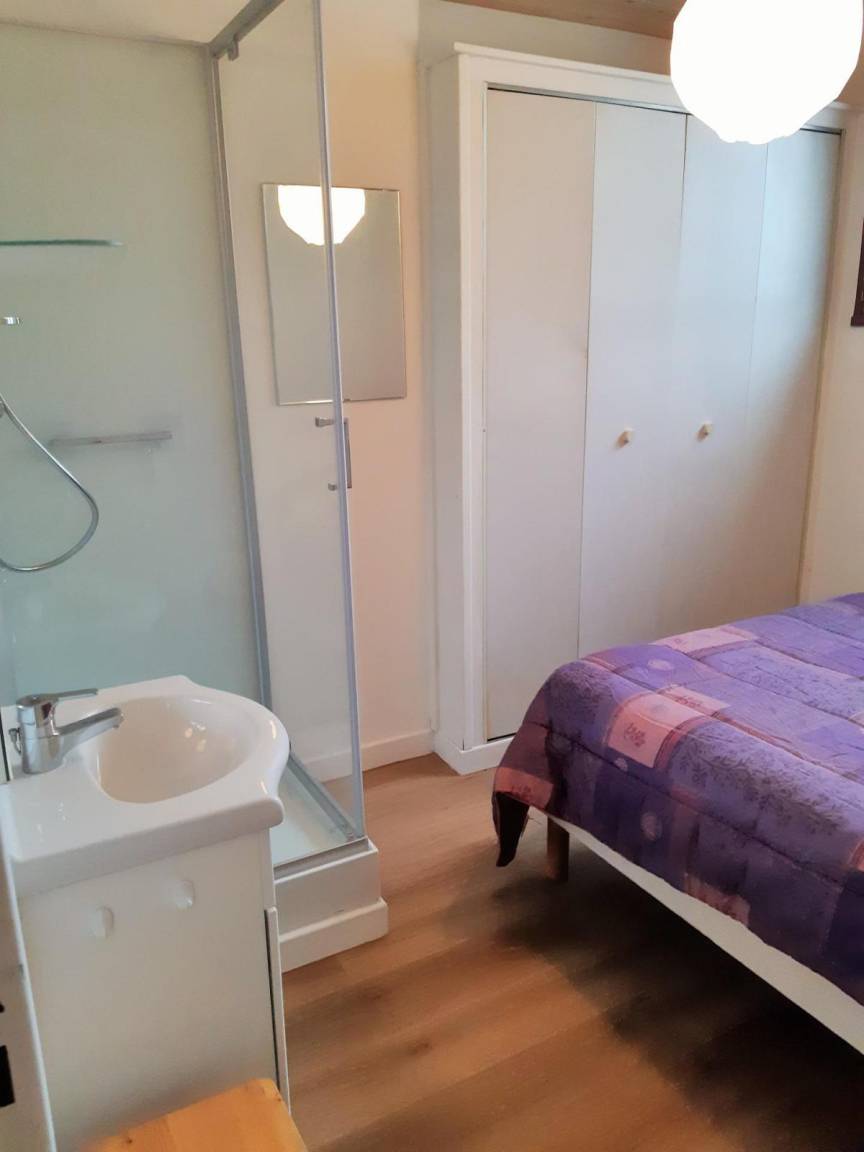 Fläche von ungefähr 58 m². Erdgeschoss. Orientierung : Süd. Wohnzimmer mit Klappschlafcouch. Schlafzimmer mit Doppelbett (140x200), Waschraum. Schlafzimmer mit Doppelbett (140x190). Schlafzimmer mit 2 Einzelbetten (90x190). Kochnische mit Wasserkocher, Kaffeemaschine, Backofen, Toaster, Geschirrspülmaschine, Mikrowellenherd, 2 elektronische Herdplatten, Kühlschrank. separates WC. Badezimmer mit Waschmaschine. Balkon.