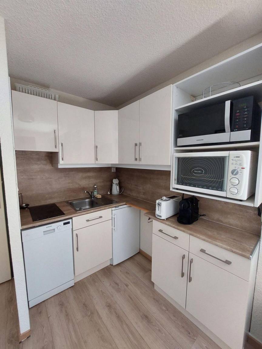Fläche von ungefähr 29 m² enthält 1 m² unter 1,80 m. 3te Etage. Orientierung : Süd, West. Wohnzimmer mit Klappschlafcouch (140x190). Schlafzimmer mit Doppelbett (140x190), einfaches Mezzanine Bett (80x180). Kochnische mit Fonduegerät, Raclettegerät, Wasserkocher, Kaffeemaschine (capsule), Geschirrspülmaschine, Mikrowellenherd, kleiner Backofen, 2 Glaskeramikkochfelder, Kühlschrank. Badezimmer mit Badewanne. separates WC. Balkon.