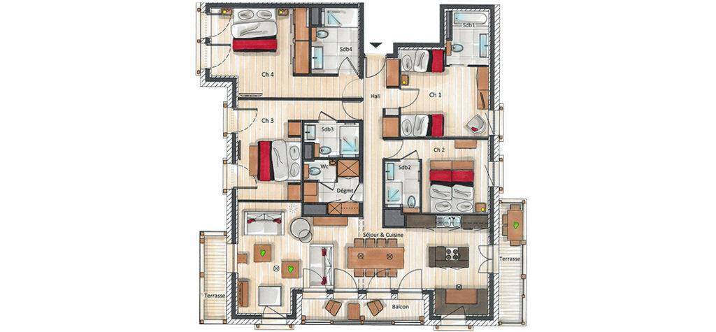 Fläche von ungefähr 147 m². 3te Etage. Orientierung : Ost, Süd. Blick skipisten. Wohnzimmer mit Schwedenofen. 2 Schlafzimmer mit Doppelbett, , Haartrockner, Handtuchtrockner, WC. Schlafzimmer mit 2 Einzelbetten, , Haartrockner, Handtuchtrockner, WC. Küche mit Wasserkocher, Kaffeemaschine (Nespresso), Backofen, Toaster, Dunstabzugshaube, Geschirrspülmaschine, 2 Herdplatten, , Kühlschrank. Waschküche mit Waschmaschine, WC (séparé). Kleine Terrasse. mit 4 Stockbetten, , Haartrockner, Handtuchtrockner, WC. Die oberen Betten sind nicht für Kinder unter 6 Jahren geeignet.
