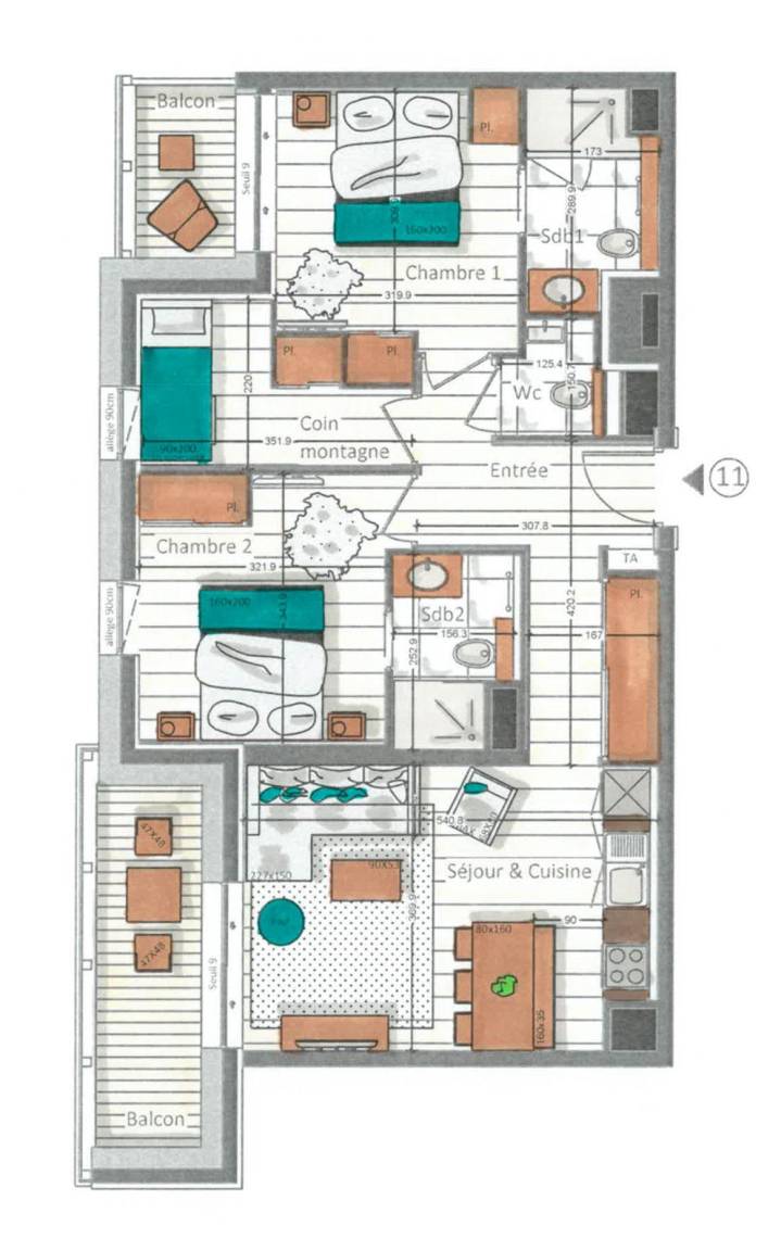 Fläche von ungefähr 70 m². 2te Etage. Orientierung : West. Wohnzimmer. 2 Schlafzimmer mit Doppelbett, , Haartrockner, Handtuchtrockner, WC. offener Schlafbereich mit 2 Stockbetten. Küche mit Wasserkocher, Kaffeemaschine (Nespresso), Backofen, Toaster, Dunstabzugshaube, Waschmaschine, Geschirrspülmaschine, 2 Herdplatten, , Kühlschrank. separates WC. Balkon. Die oberen Betten sind nicht für Kinder unter 6 Jahren geeignet.
