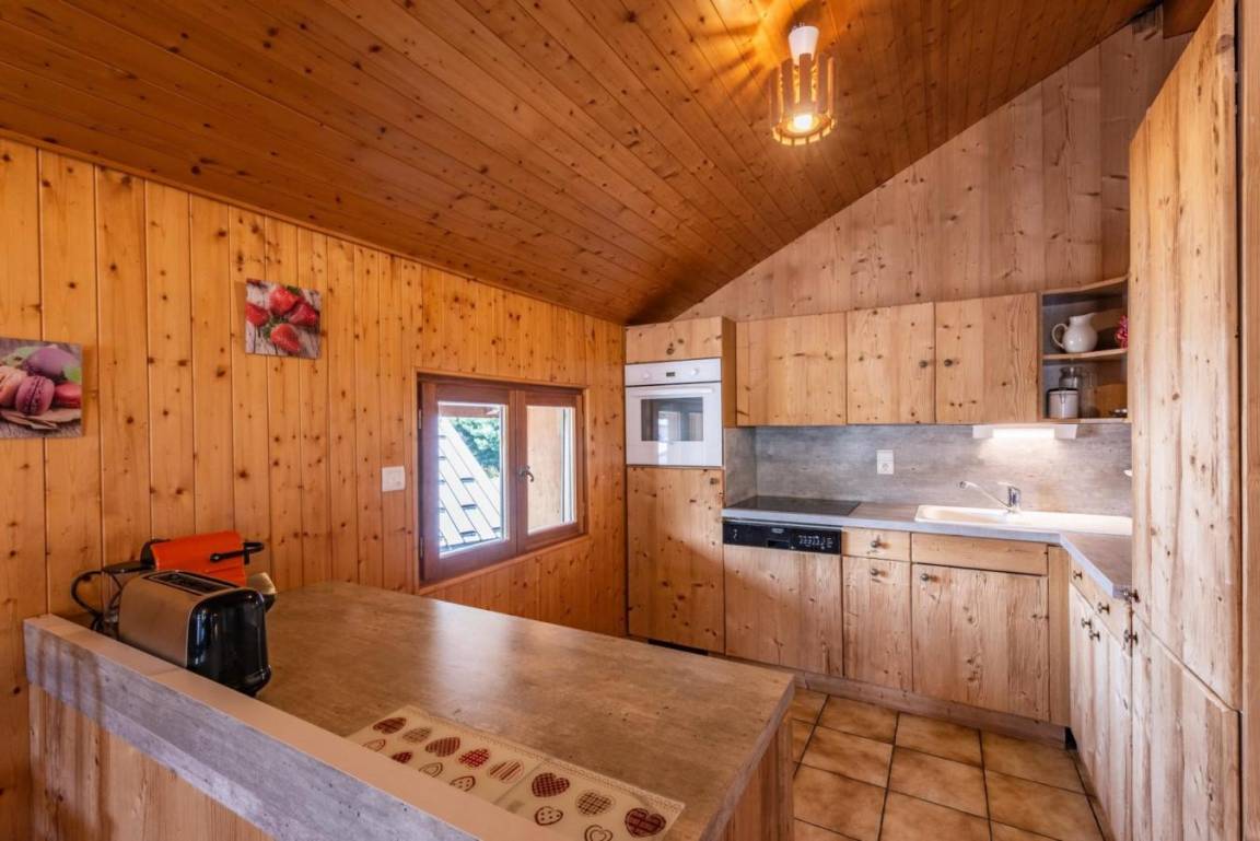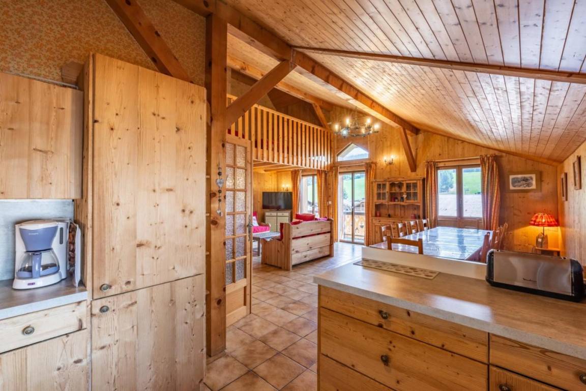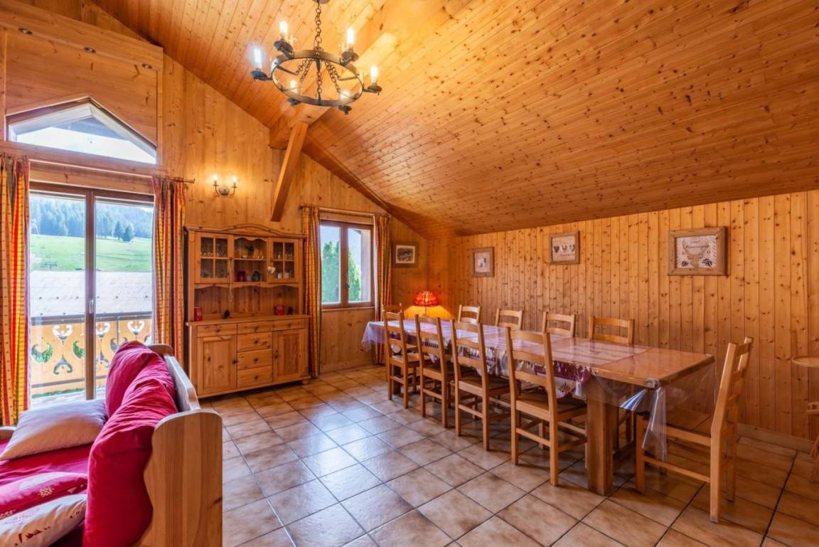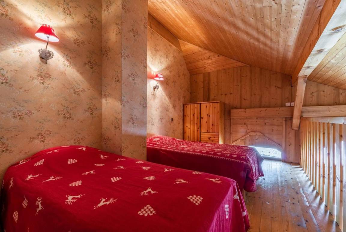 Im alten Bauernhof und in der alten Schmiede wurden acht Unterkünfte eingerichtet, um Ihnen während Ihres Schneeurlaubs großen Komfort zu bieten. Die im Chalet-Stil eingerichteten Apartments sind mit allen notwendigen Geräten für einen stressfreien Aufenthalt ausgestattet. Fläche von ungefähr 115 m². 1te Etage. Orientierung : Süd-Ost. Niveau 0 : Wohnzimmer. 2 Schlafzimmer mit Doppelbett (140). Schlafzimmer mit 2 Einzelbetten (90). Küche mit Backofen, Geschirrspülmaschine, Mikrowellenherd, Kühl-Gefrier-Kombination. Badezimmer mit Badewanne. Waschräume mit Dusche. separates WC. Balkon. Niveau 1 : Zwischengeschoss mit 2 Einzelbetten (90).