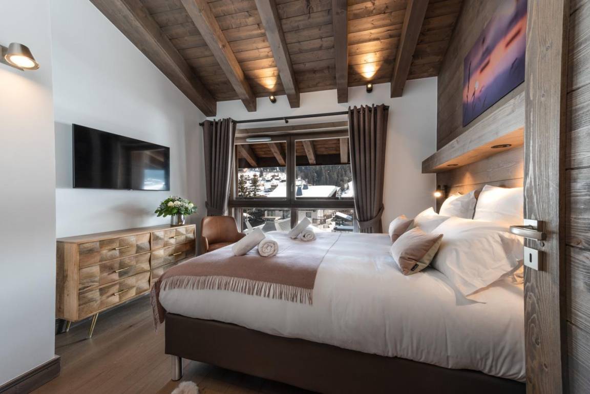 Fläche von ungefähr 230 m². 4te Etage. Orientierung : Süd. Niveau 0 : Wohnzimmer mit Kamin. 2 Schlafzimmer mit Doppelbett. Schlafzimmer mit Balkon, Doppelbett, , Haartrockner, Handtuchtrockner, WC. Küche mit Wasserkocher, Kaffeemaschine (Nespresso), Backofen, Toaster, Dunstabzugshaube, Geschirrspülmaschine, 2 Herdplatten, , Kühlschrank. Badezimmer mit Badewanne, Dusche, Haartrockner, Handtuchtrockner. Badezimmer mit Haartrockner, Handtuchtrockner, WC. separates WC. Balkon mit Whirlpool. Terrasse. mit 4 Stockbetten. Niveau 1 : Schlafzimmer mit Doppelbett, , Haartrockner, Handtuchtrockner, WC. offener Schlafbereich mit 2 Einzelbetten. Schlafzimmer mit Balkon, 2 Einzelbetten. Badezimmer mit Haartrockner, Handtuchtrockner, WC. Waschküche mit Waschmaschine, Wäschetrockner. Die oberen Betten sind nicht für Kinder unter 6 Jahren geeignet.