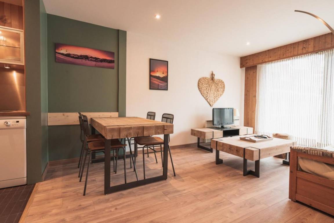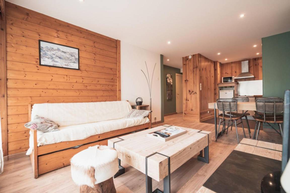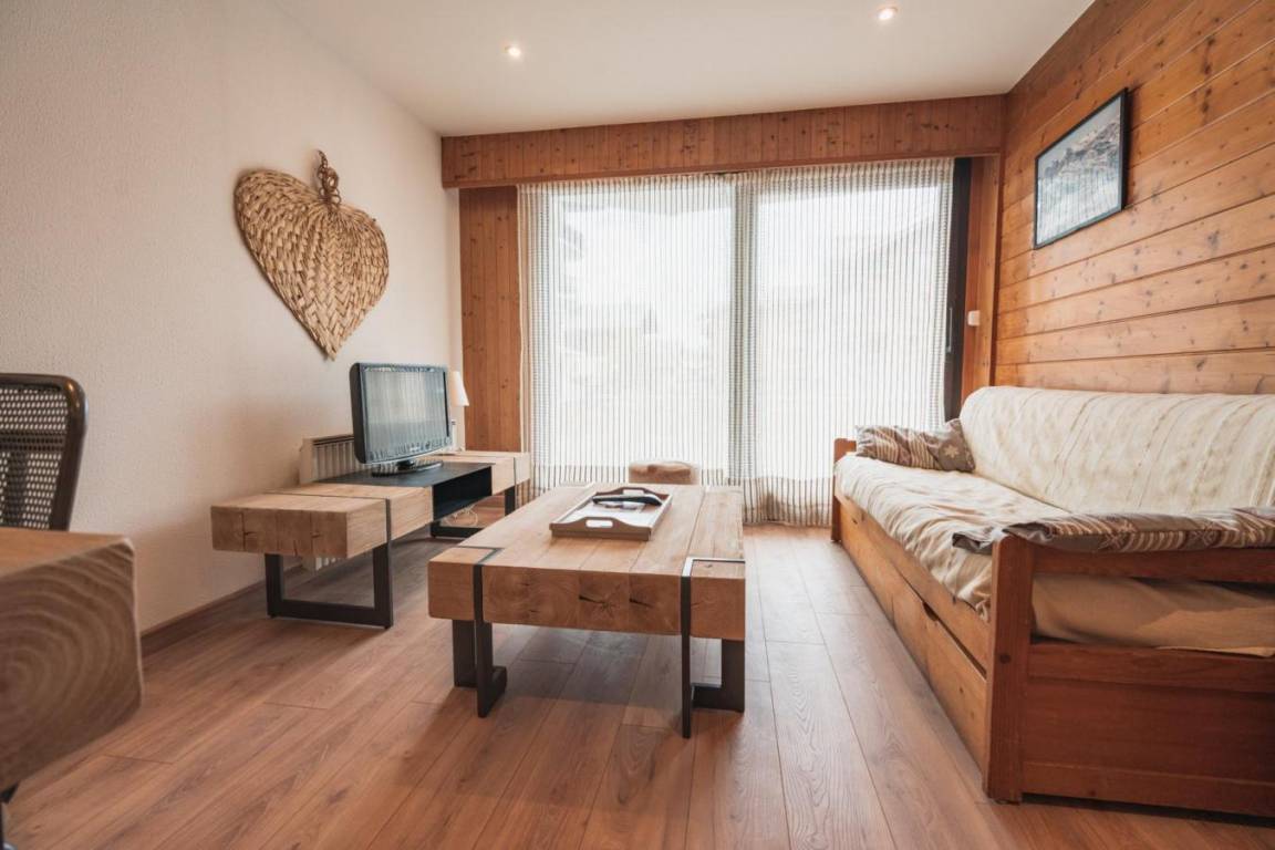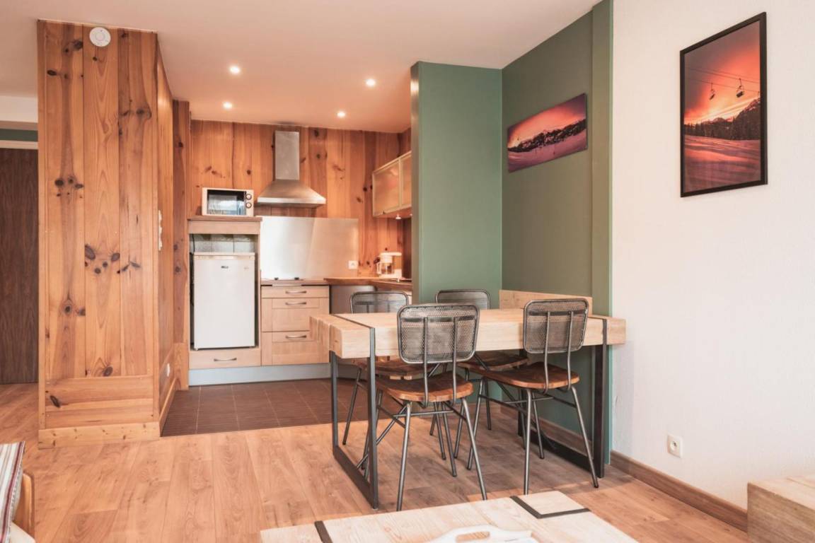 Die Residence Pied de l'Adroit befindet sich in idealer Lage im Ferienort Les Gets. Sie genießt eine zentrale Lage in der Nähe der Skipisten und Skilifte und ist somit die perfekte Wahl für Wintersportler. Die Geschäfte, Restaurants und anderen Annehmlichkeiten des Dorfes sind bequem zu Fuß erreichbar. Fläche von ungefähr 45 m². Erdgeschoss. Orientierung : Süd. Wohnzimmer mit BZ-Sofas (140). Schlafzimmer mit Doppelbett (140). Kochnische mit Geschirrspülmaschine, Mikrowellenherd. separates WC. Waschräume.