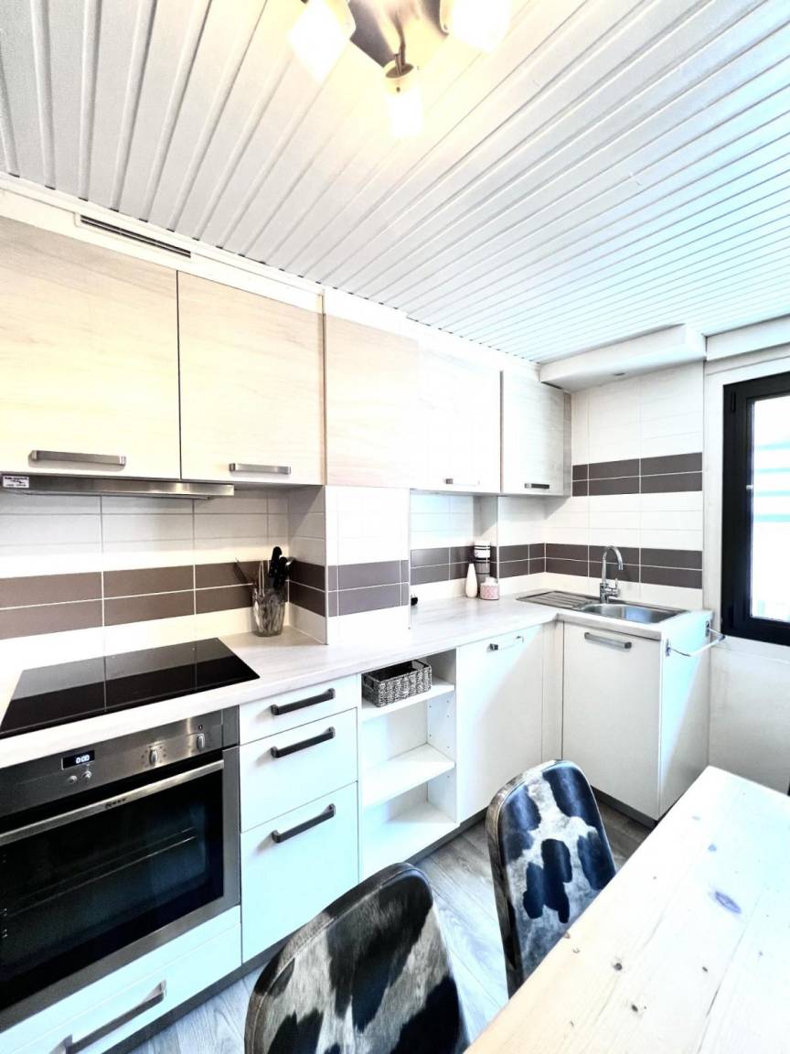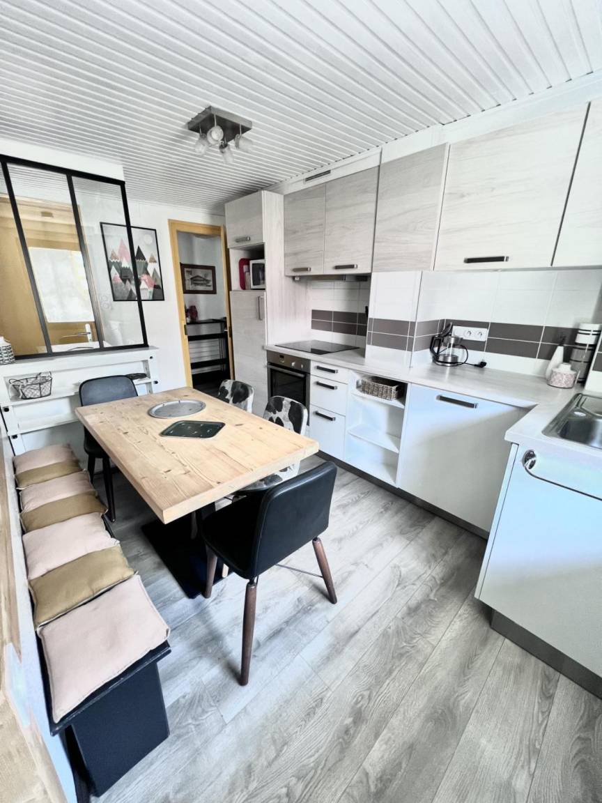 Es ist ein idealer Standort für Wintersportler, mit einfachem Zugang zu Skiliften, Geschäften und Restaurants. Fläche von ungefähr 44 m². 1te Etage. Wohnzimmer. Schlafzimmer mit Doppelbett (140). Schlafzimmer mit Doppelbett (140), Einzelbett (90). Kochnische mit Backofen, Geschirrspülmaschine, Mikrowellenherd. Waschräume mit Haartrockner, WC.
